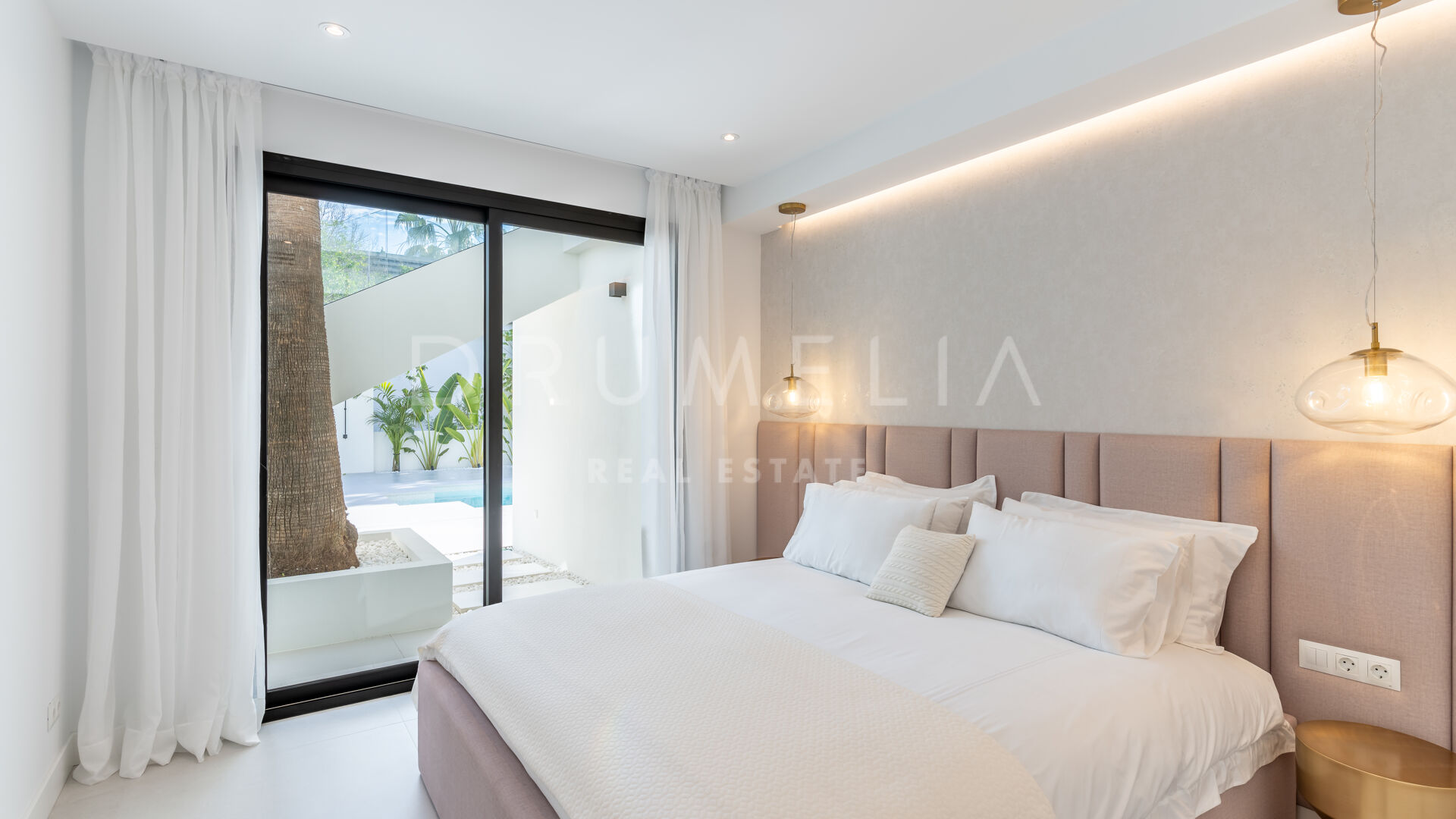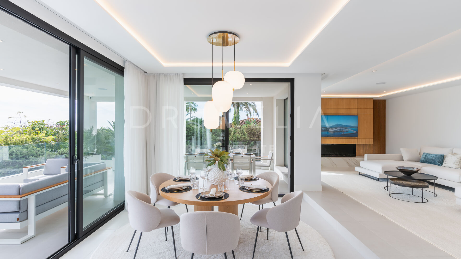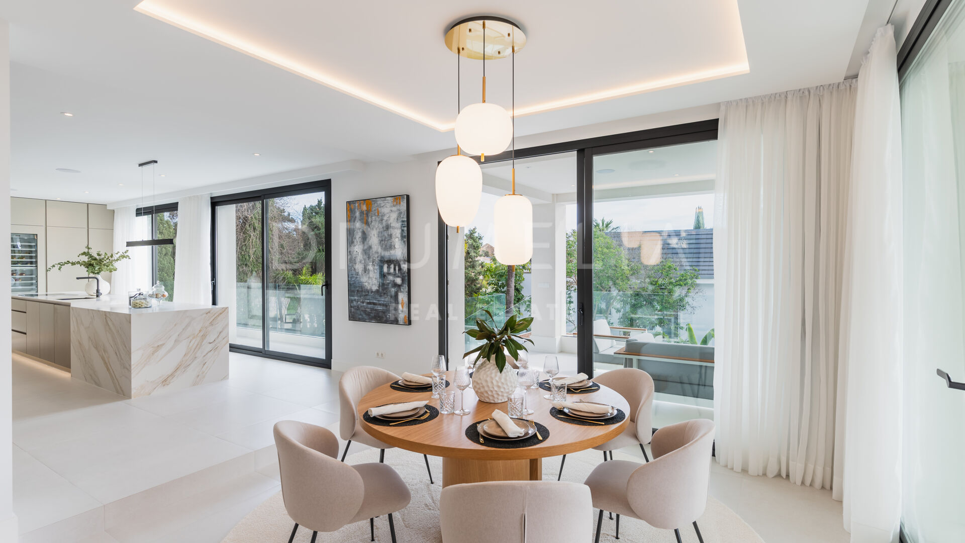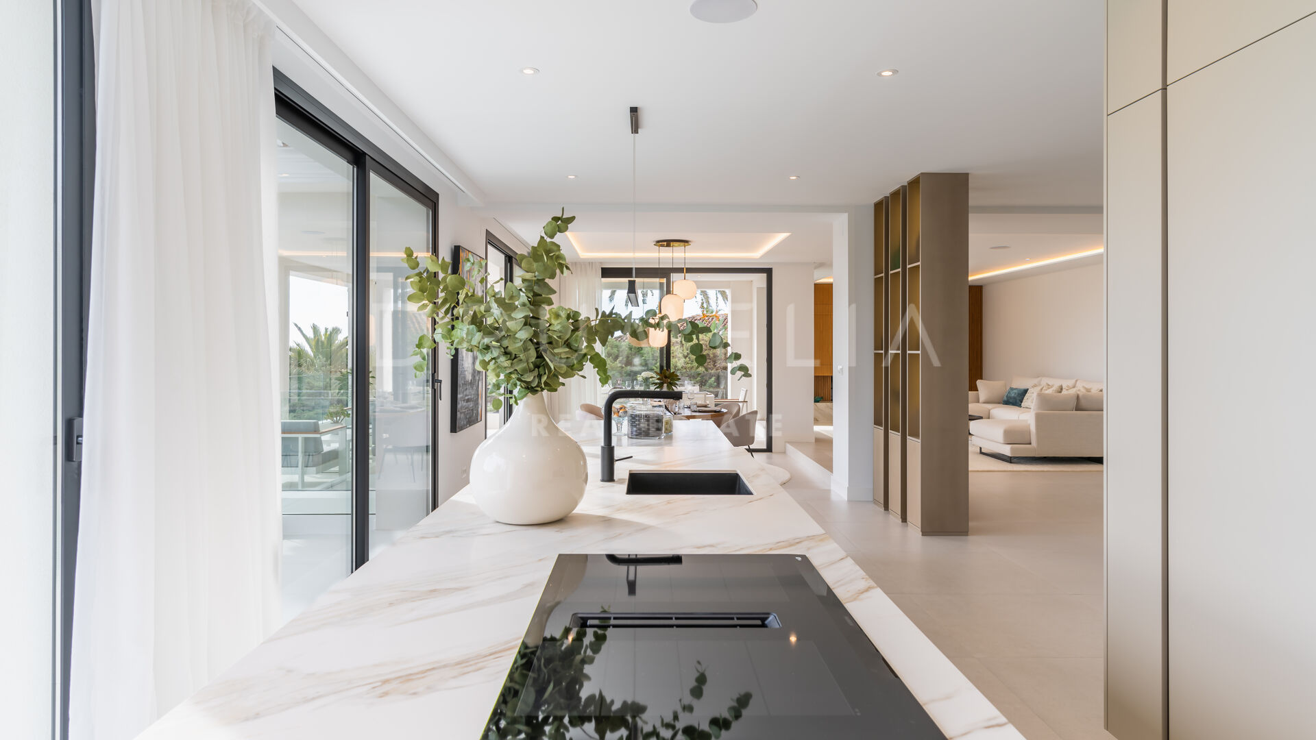 Oppdag et mesterverk av moderne raffinement og andalusisk sjarm i hjertet av Marbella. Denne utsøkte 4-soveroms villaen ligger i den prestisjetunge Marbesa-enklaven, et eksklusivt tilfluktssted ved sjøen som tilbyr ro og raffinement bare noen skritt fra Marbellas uberørte strender og bare 30 minutter fra flyplassen. Omgitt av frodige grøntområder er det en privat oase av eleganse og ro ved kysten.
