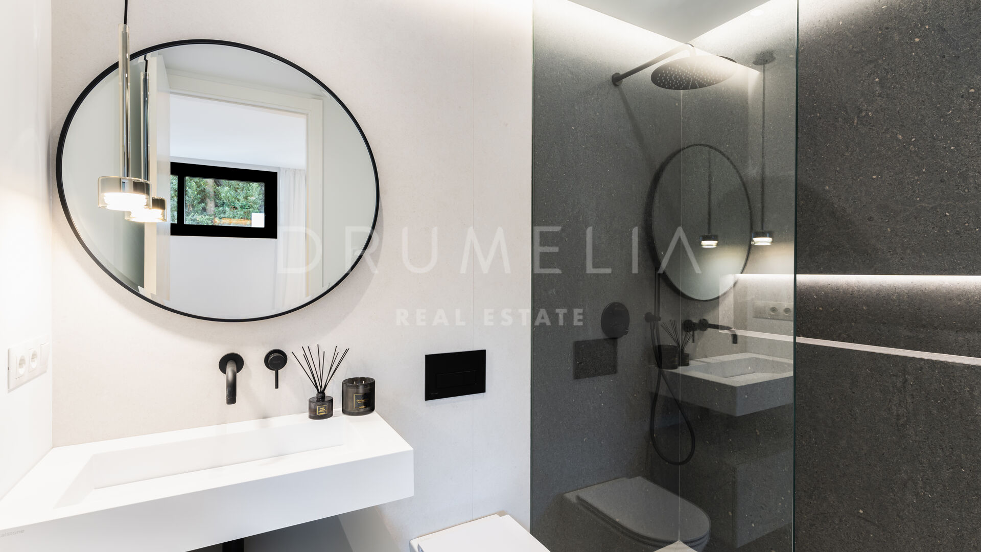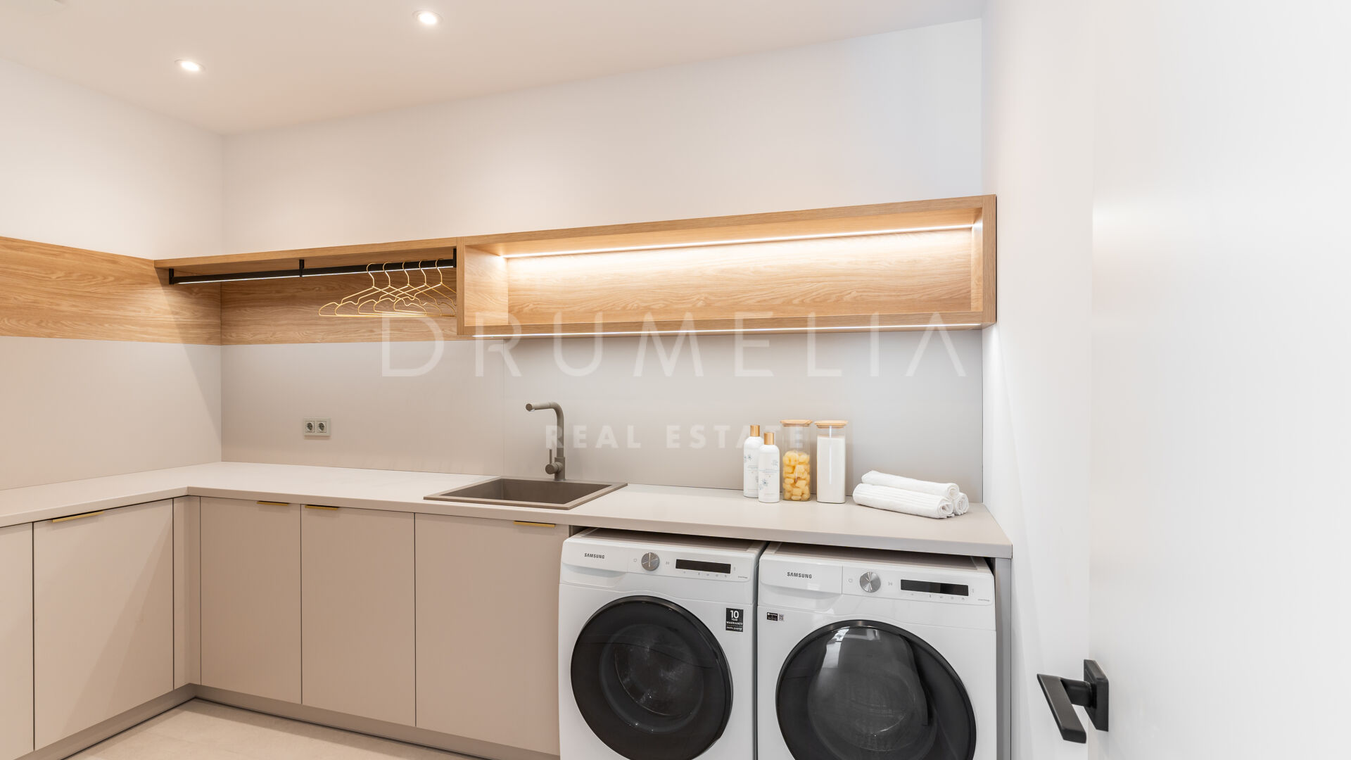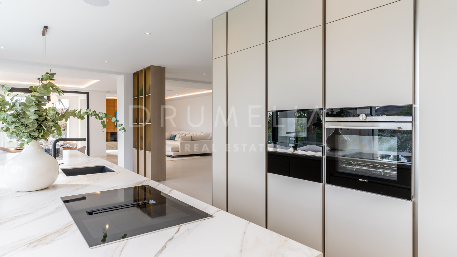 Hver eneste detalj er omhyggelig utformet med presisjon og luksus i tankene. Fra håndplukkede materialer til feilfrie overflater – denne eiendommen er et eksempel på raffinement uten sidestykke. Gulvvarme med flere soner gir personlig varme og raffinement i alle rom, mens en sømløs blanding av tidløs andalusisk arkitektur og moderne design skaper en harmonisk balanse mellom tradisjon og modernitet.