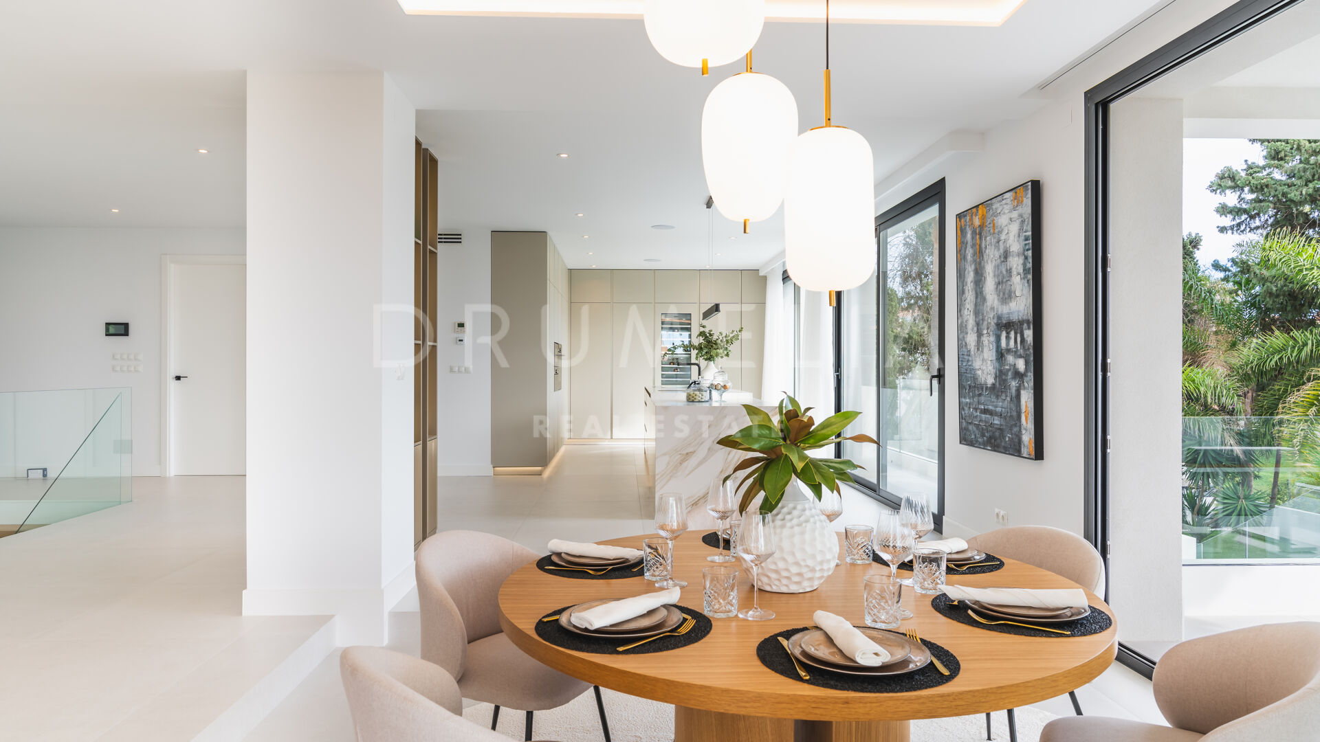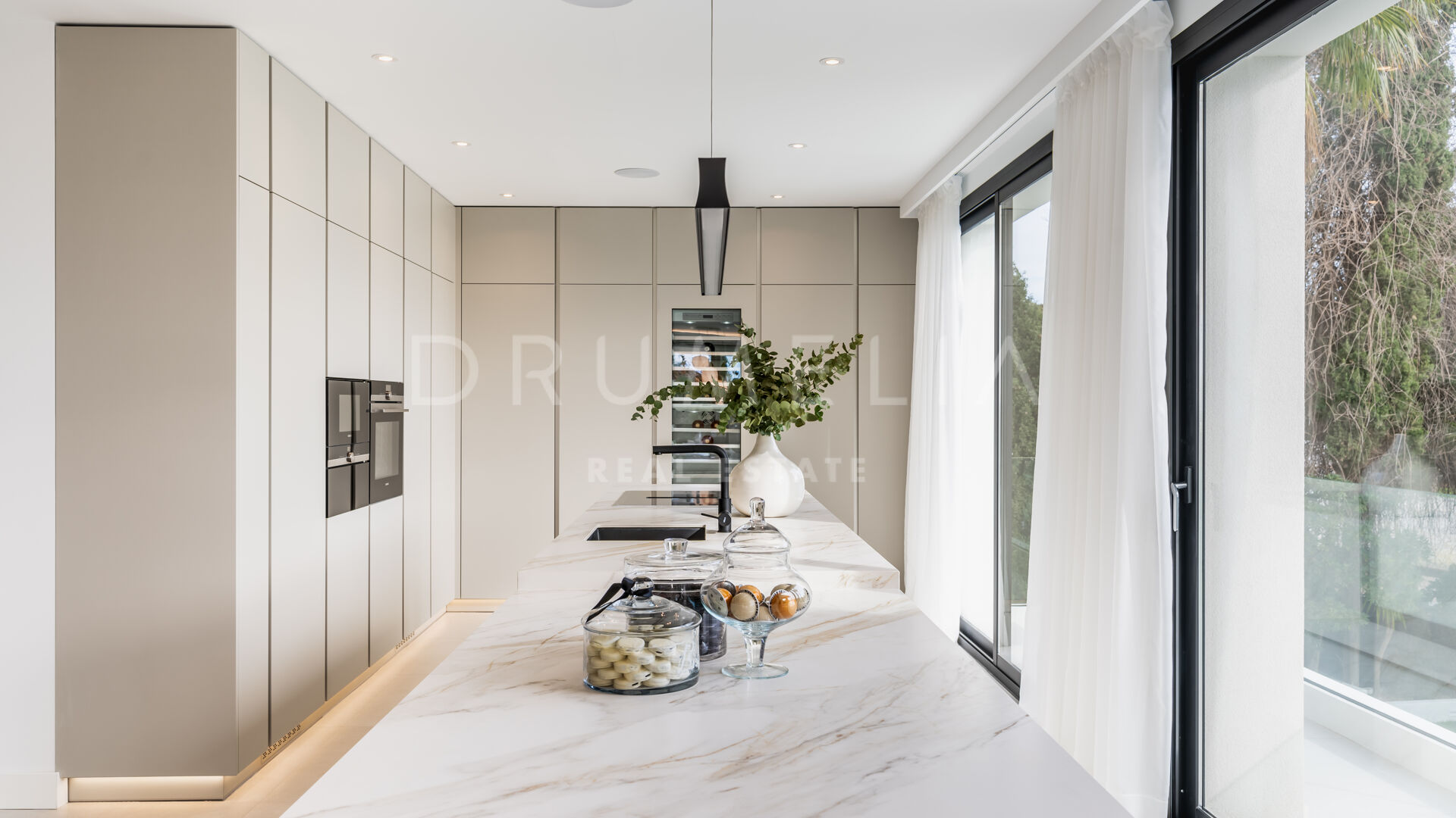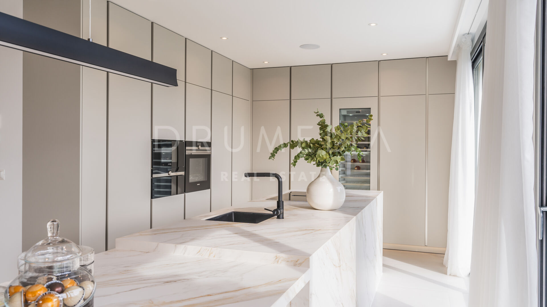 Hver eneste detalj er omhyggelig utformet med presisjon og luksus i tankene. Fra håndplukkede materialer til feilfrie overflater – denne eiendommen er et eksempel på raffinement uten sidestykke. Gulvvarme med flere soner gir personlig varme og raffinement i alle rom, mens en sømløs blanding av tidløs andalusisk arkitektur og moderne design skaper en harmonisk balanse mellom tradisjon og modernitet.