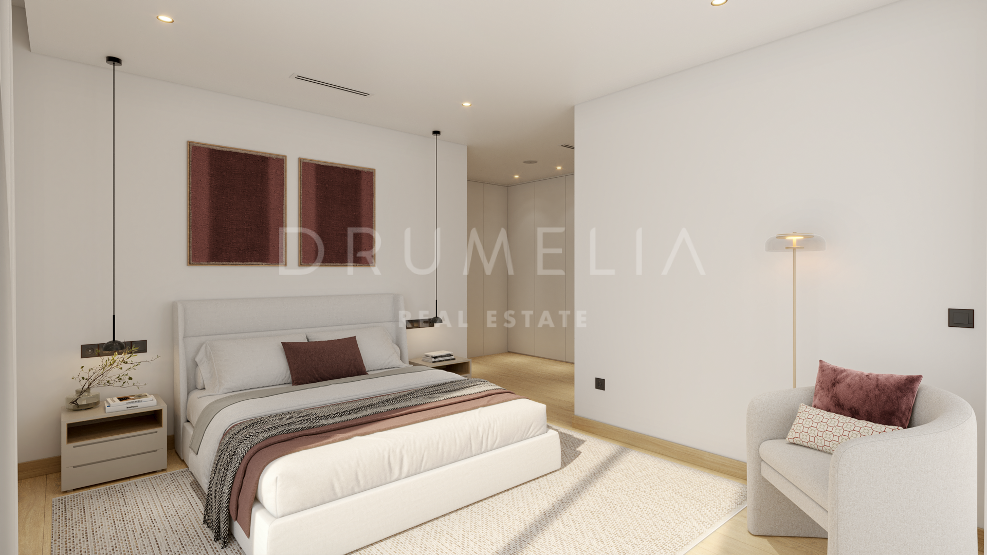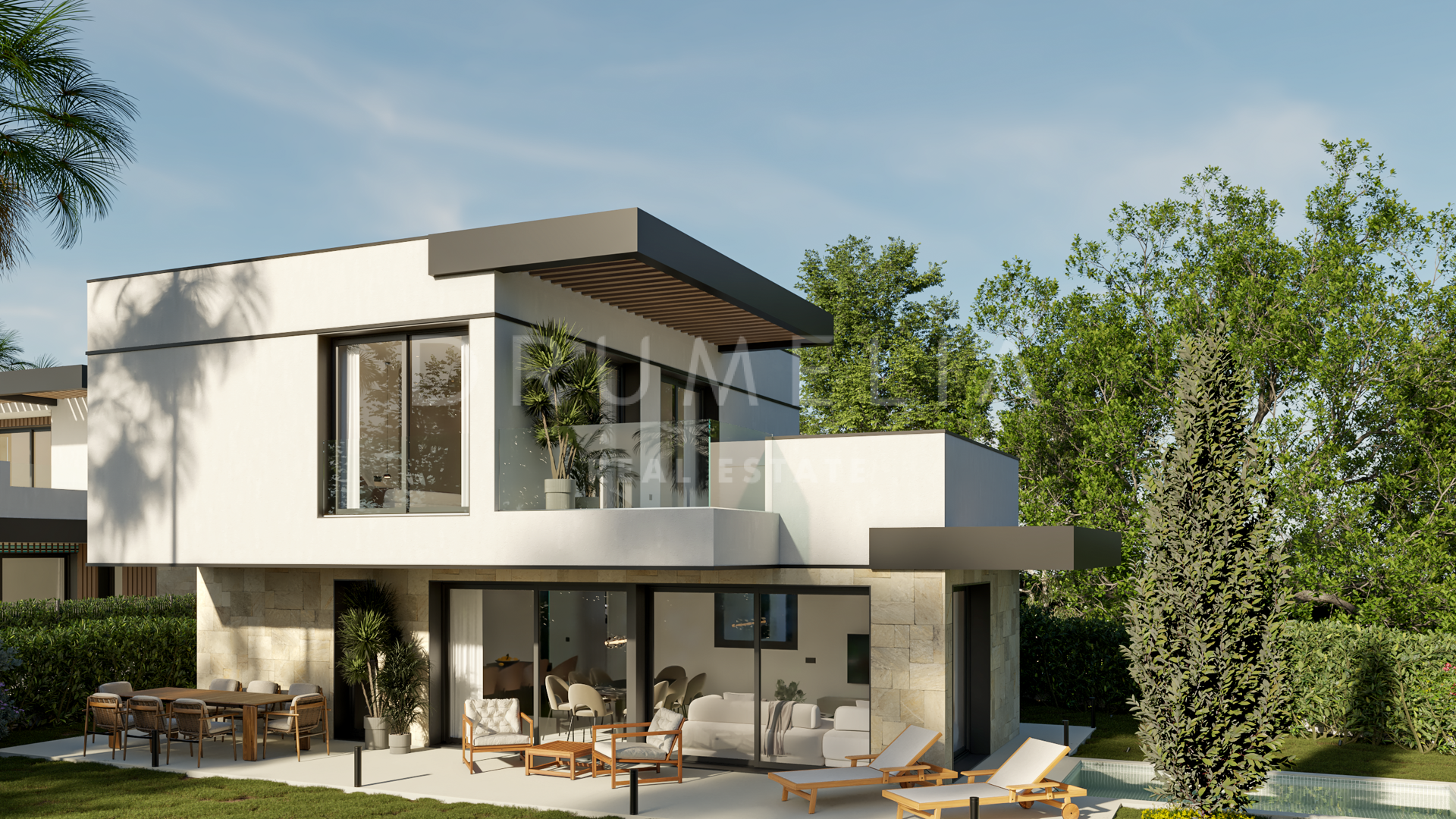 Omgitt av subtropisk grønt, alle fasiliteter og luksuseiendommer i det prestisjetunge området, vil du her få en toppmoderne villa på 254 m² med 103 m² terrasser. Huset vil ha et moderne design som kombinerer de beste materialene med en moderne arkitektur som passer perfekt inn i vakre omgivelser. Den har 4 soverom, 3 bad og gjestetoalett. I første etasje møtes du av en fin entré som leder til den imponerende stue og spisestuen med åpen planløsning, med fullt utstyrt kjøkken, med vaskerom, og tilgang til verandaen med et vakkert svømmebasseng. I tillegg har du et gjesterom eller kontor, samt gjestetoalett. Etasjen over består av hovedsoverom med en-suite med omkledningsrom, og tilgang til en stor terrasse, pluss 2 andre soverom og ekstra bad. Overbygde og utildekkede terrasser inviterer deg til å nyte herlig middelhavsliv og rolig hageutsikt. Eiendommen inkluderer også en 92 m² kjeller med naturlig lys, et flerbruksrom som kan være ditt fritidsområde.