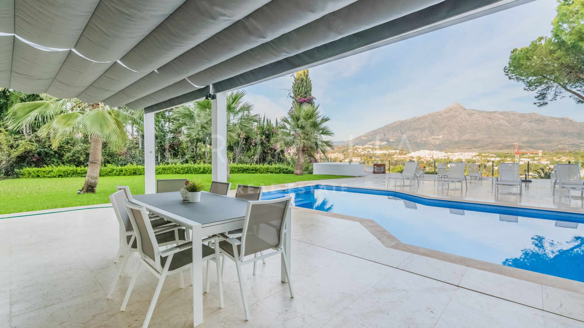Villa til salgs i Nueva Andalucia, Marbella (Alle) med 5 soverom, 4 baderom, 1 toalett og har basseng (privat), garasje (privat) og hage (privat). Dimensjoner: 600m² bygget og 1200m² tomt.
