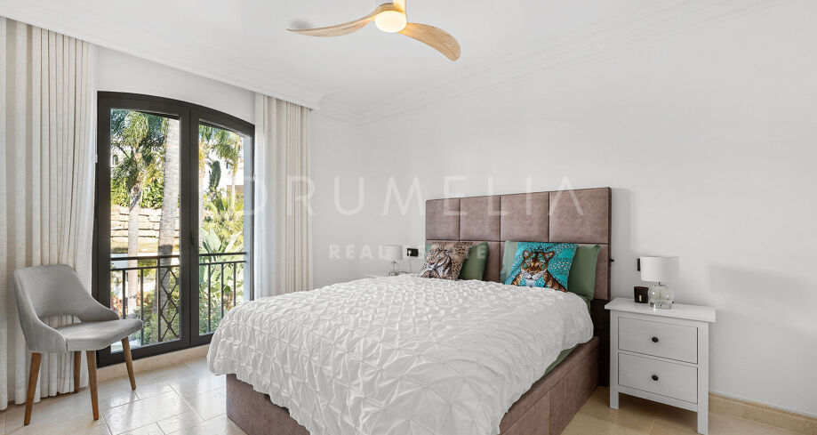Denne private villaen ligger rett ved Los Naranjos golfbane og byr på uhindret utsikt over det 12. hullet og en fredelig innsjø i bakgrunnen. Med sin sørvestvendte beliggenhet får eiendommen sol hele dagen og drar full nytte av både utsikten og det naturlige lyset.