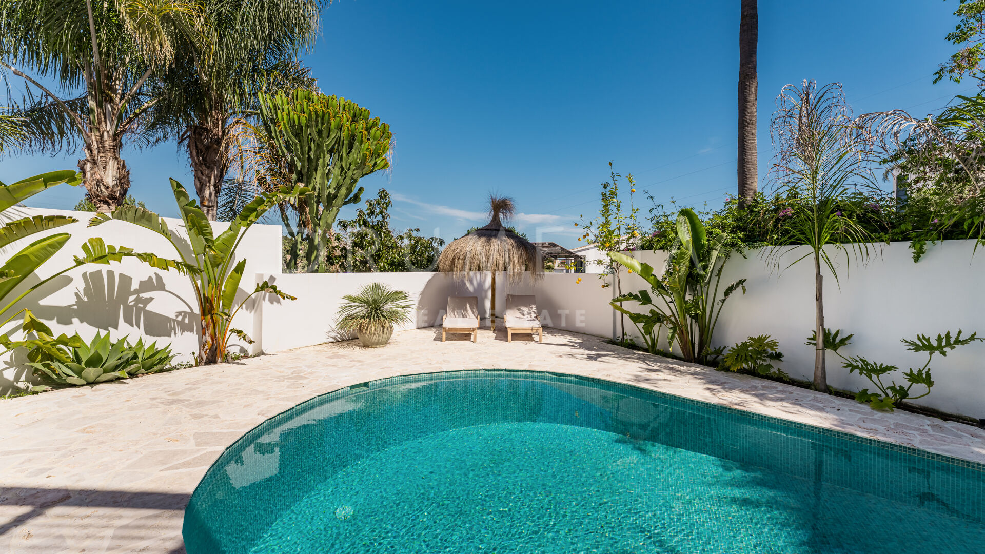 Elegant penthouse-villa med 5 soverom i Nueva Andalucía, nylig totalrenovert. Denne 233 m² store eiendommen byr på en perfekt blanding av komfort, lys og funksjonalitet, med fire bad med eget bad, ett gjestetoalett, en romslig, uavhengig gjesteleilighet og et åpent kjøkken som er sømløst forbundet med den lyse stue- og spisestuen med utgang til sjenerøse terrasser.