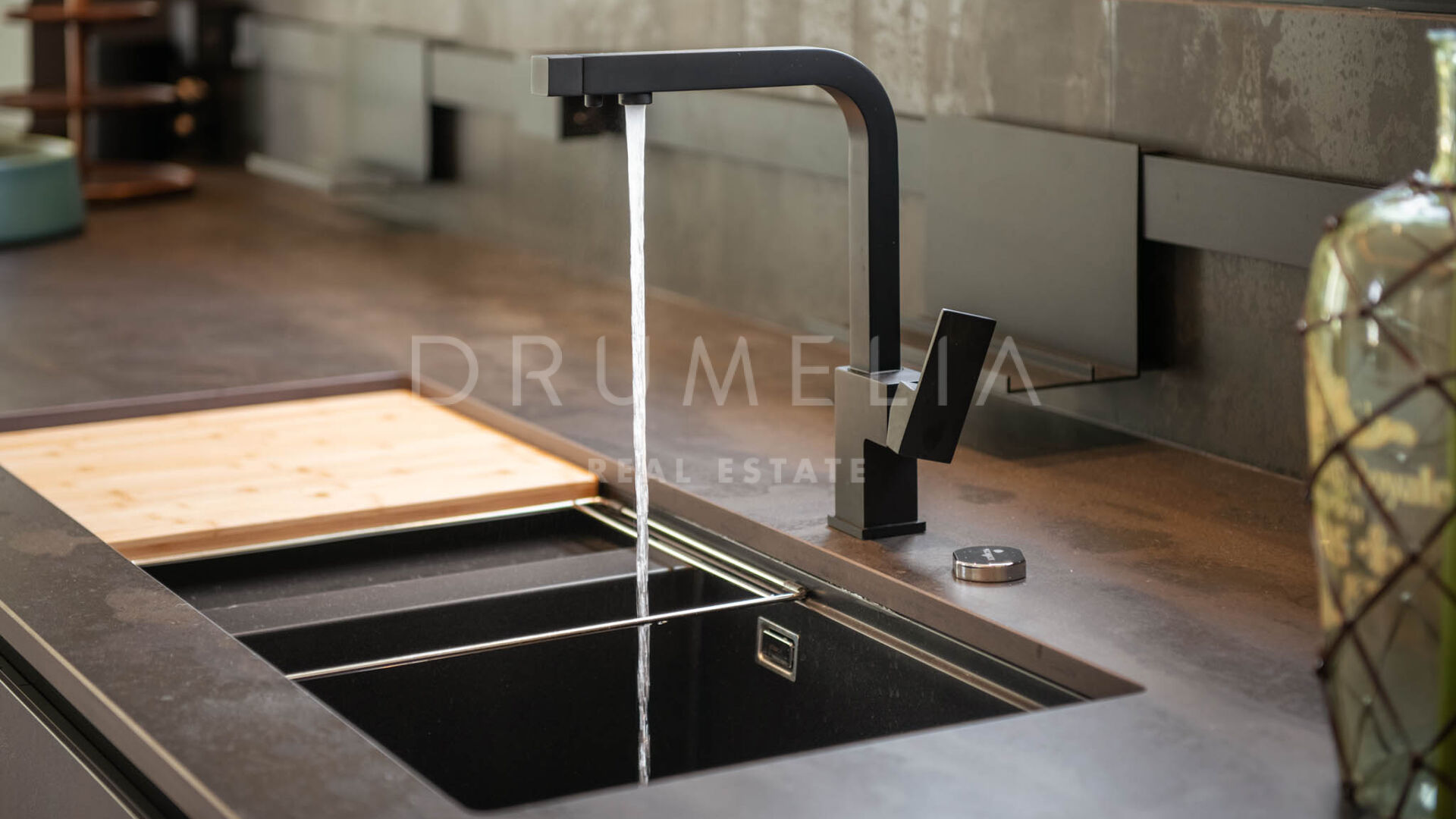 Første etasje byr på en lys stue med doble takhøyder, moderne kjøkken med skjult grovkjøkken og et romslig gjesterom med bad og utgang til hagen.