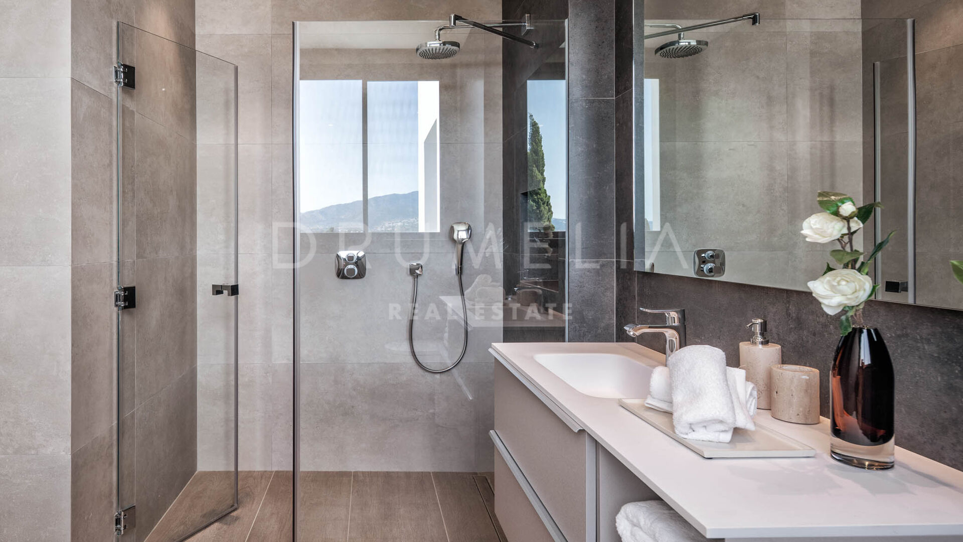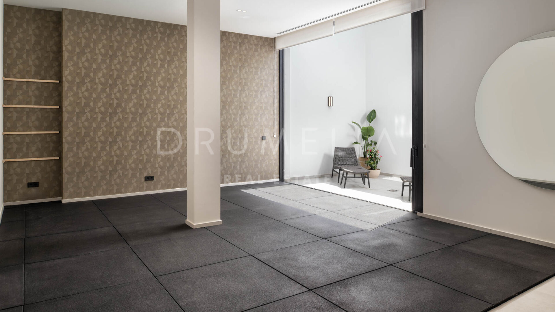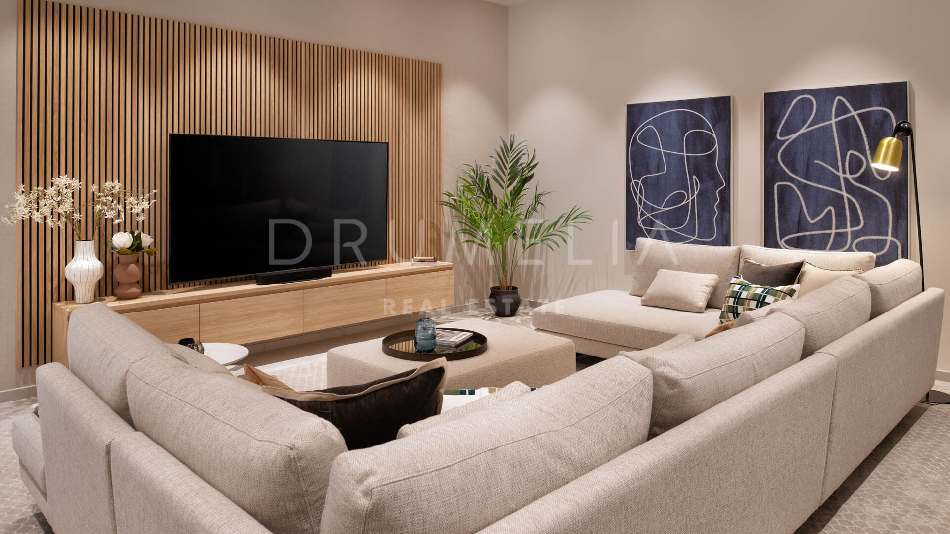 I andre etasje finner du en luksuriøs hovedsuite med privat terrasse og to gjesterom med egne bad og delt terrasse med havutsikt. Takterrassen gir panoramautsikt fra Puerto Banús til Marbella og er klargjort for utekjøkken og grill.