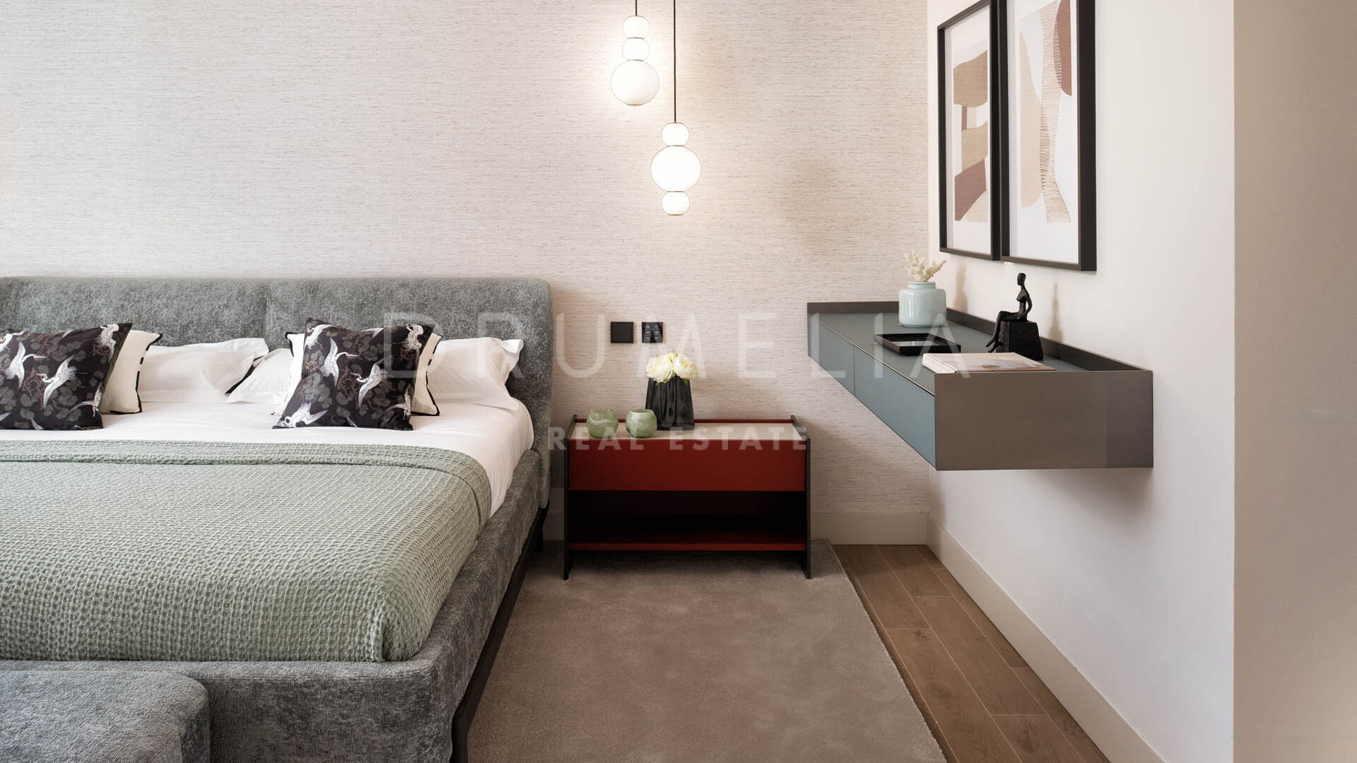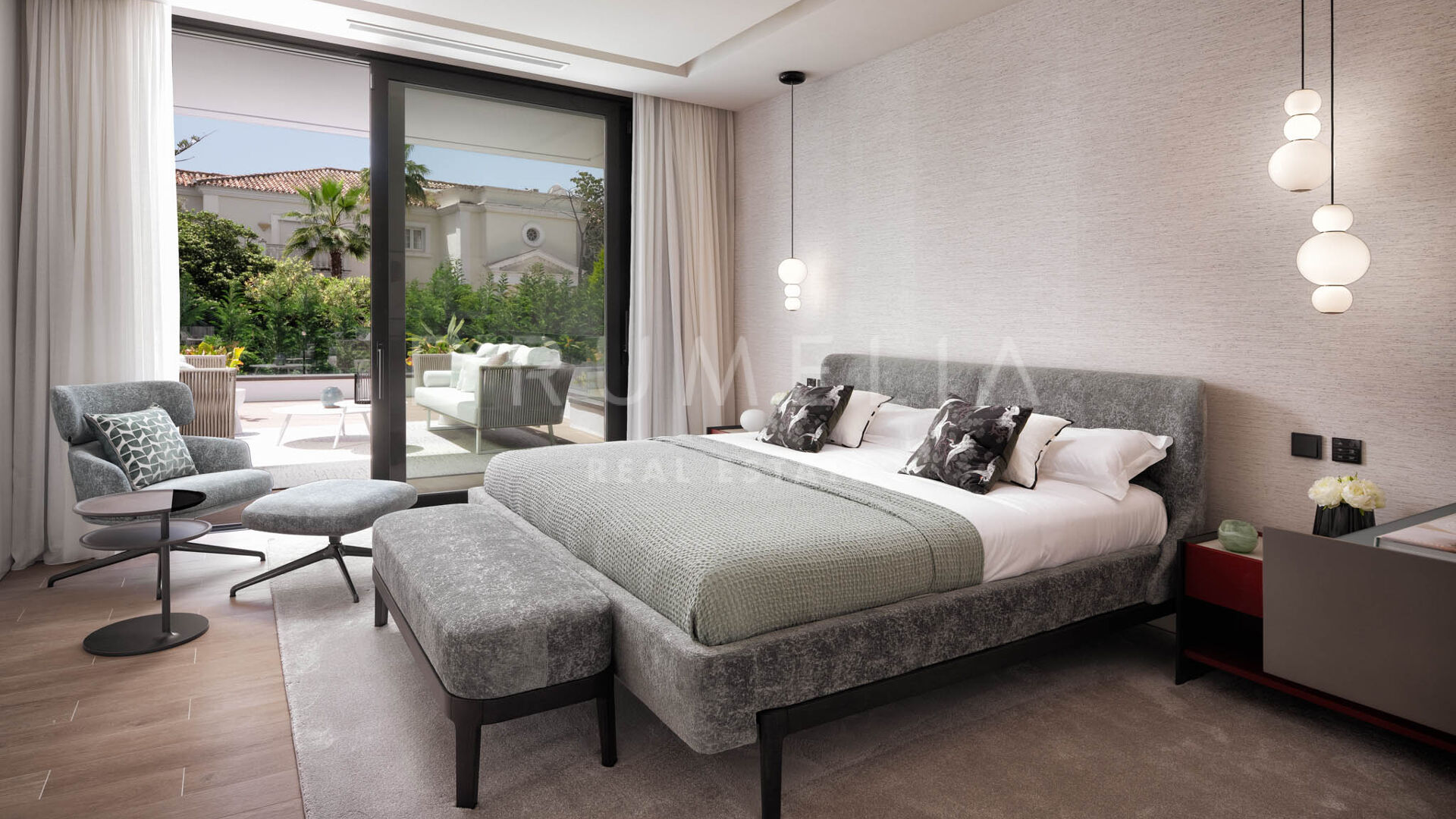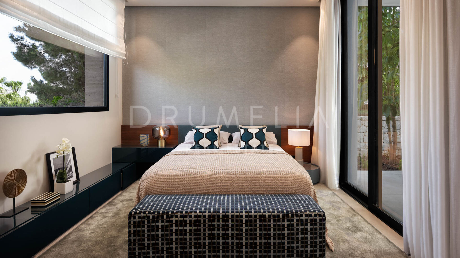 I andre etasje finner du en luksuriøs hovedsuite med privat terrasse og to gjesterom med egne bad og delt terrasse med havutsikt. Takterrassen gir panoramautsikt fra Puerto Banús til Marbella og er klargjort for utekjøkken og grill.