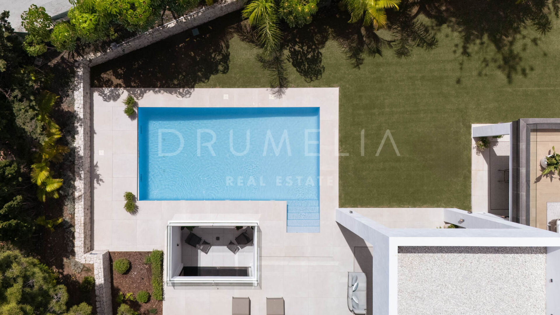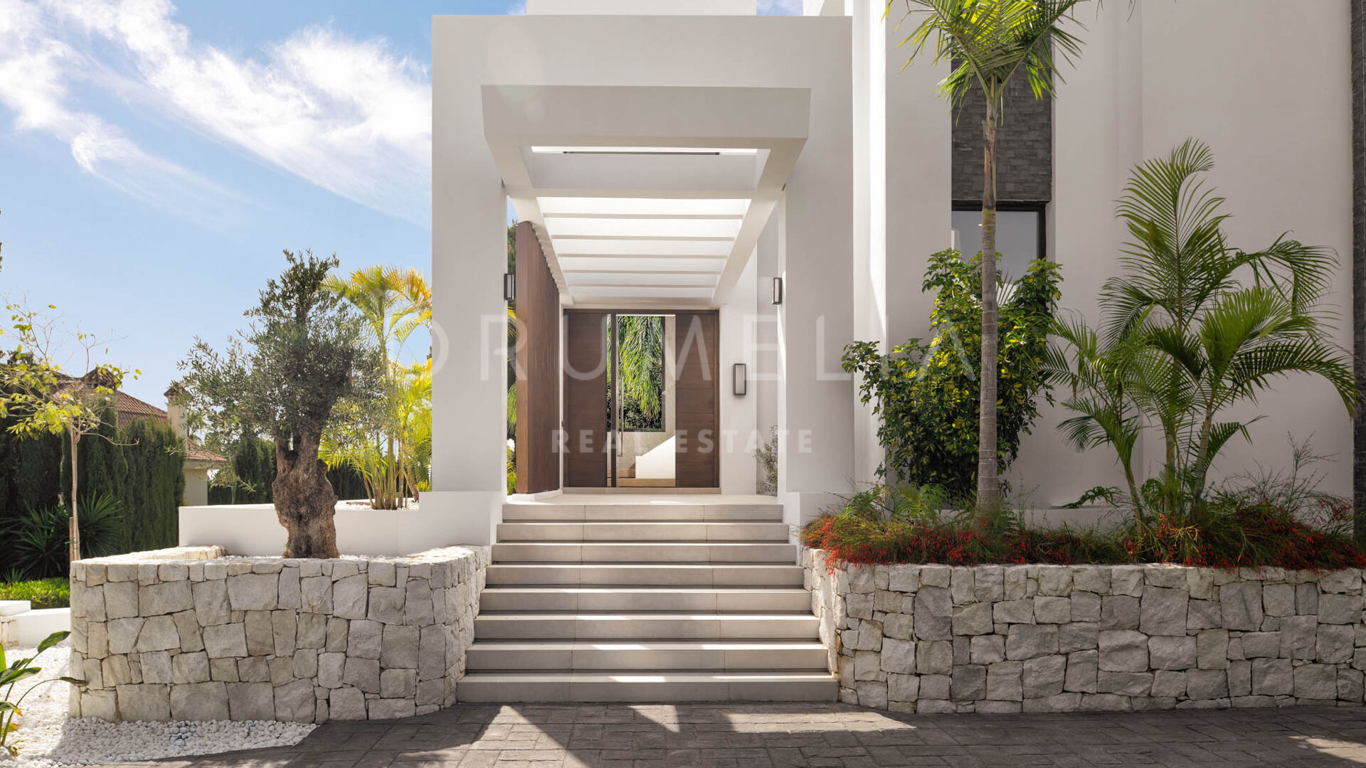 Eksklusiv villa i det prestisjefylte La Pera-området, bare ett minutts gange fra Centro Plaza og den ikoniske tyrefekterarenaen i Puerto Banús. En perfekt kombinasjon av moderne design, førsteklasses materialer og enestående beliggenhet.