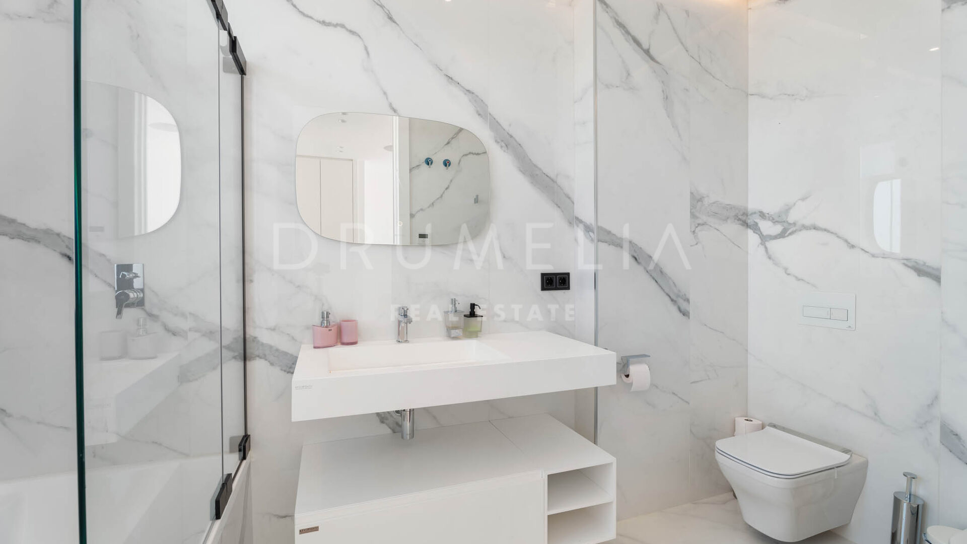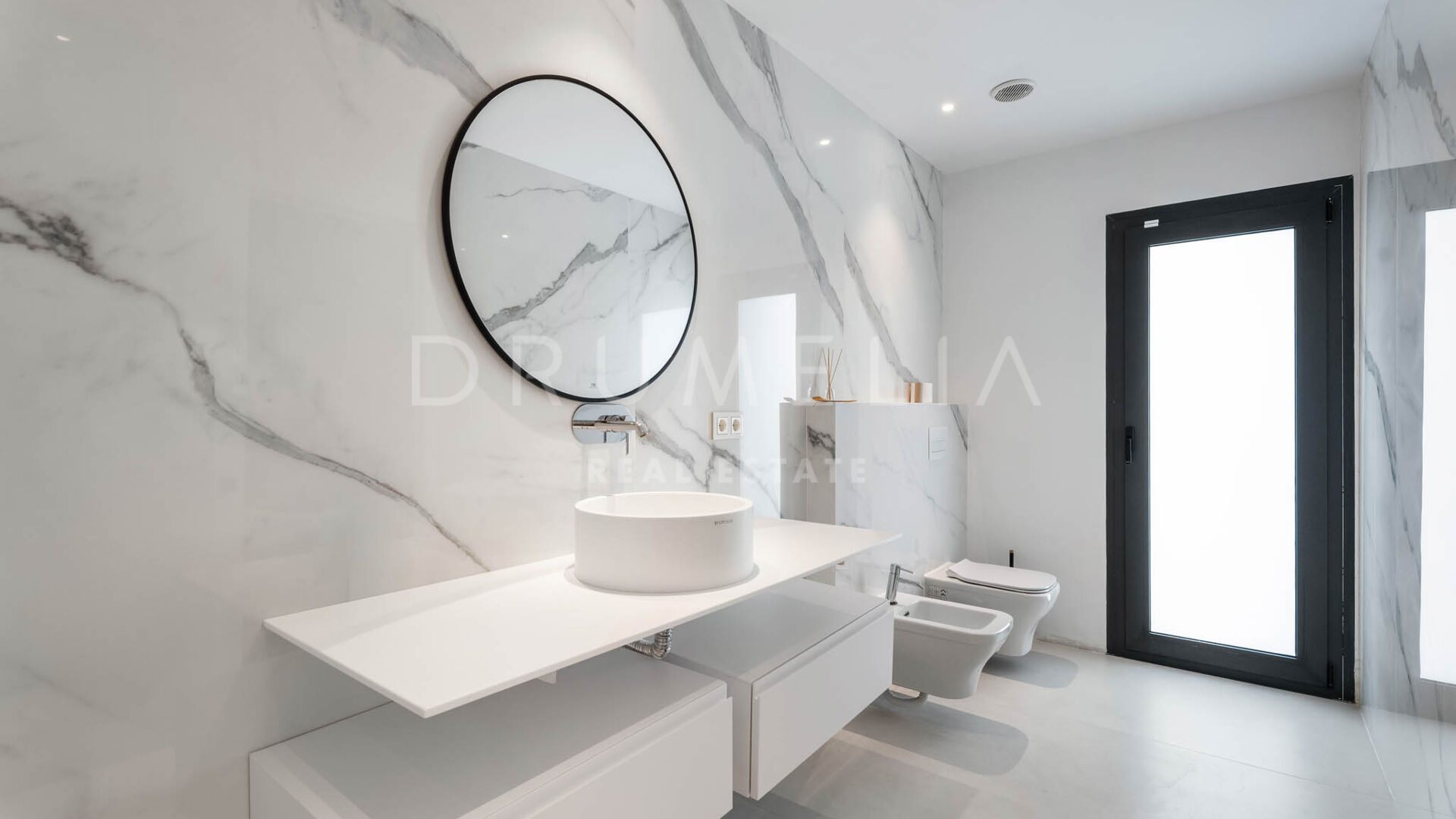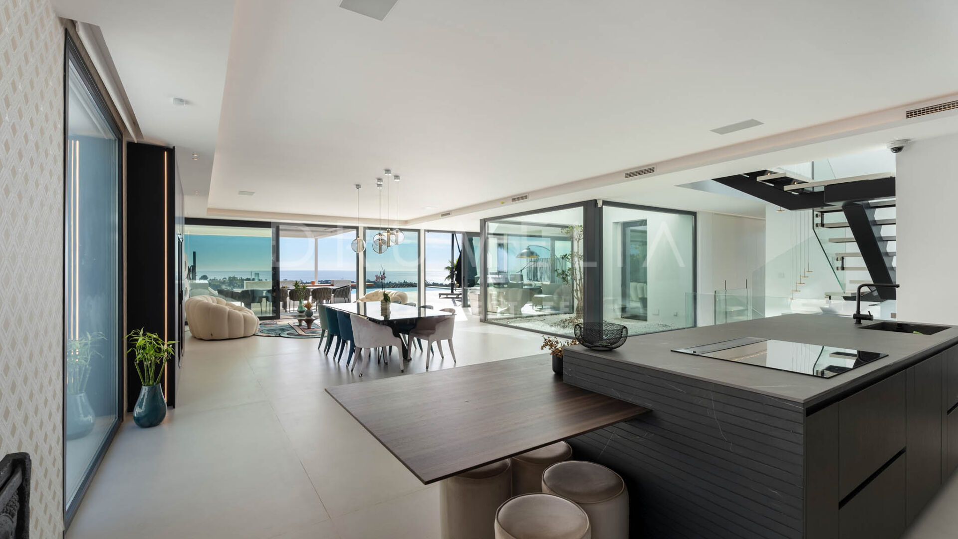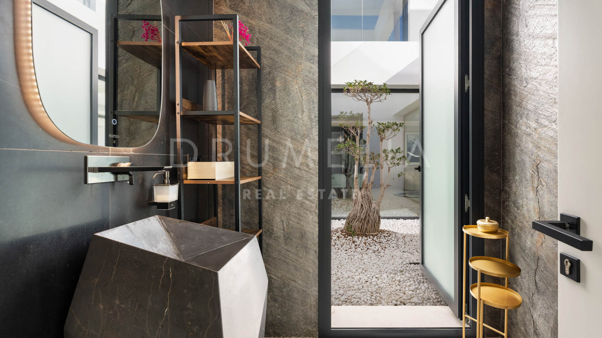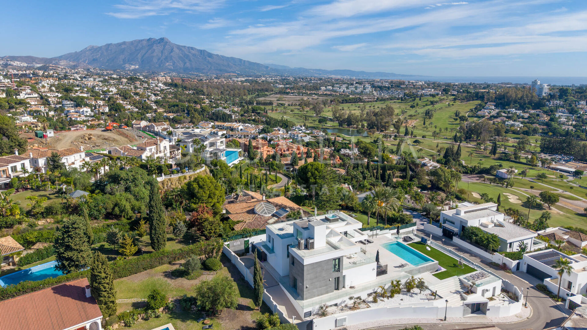 Denne designervillaen i Paraiso Alto presenteres som en moderne bolig skapt for dem som søker privatliv, romslighet og en direkte forbindelse med omgivelsene. Den forhøyede beliggenheten gir utsikt over El Paraíso Golf, Middelhavet, Gibraltar, den afrikanske kystlinjen og La Concha-fjellet fra flere rom og utendørsområder, noe som skaper en særegen visuell opplevelse.