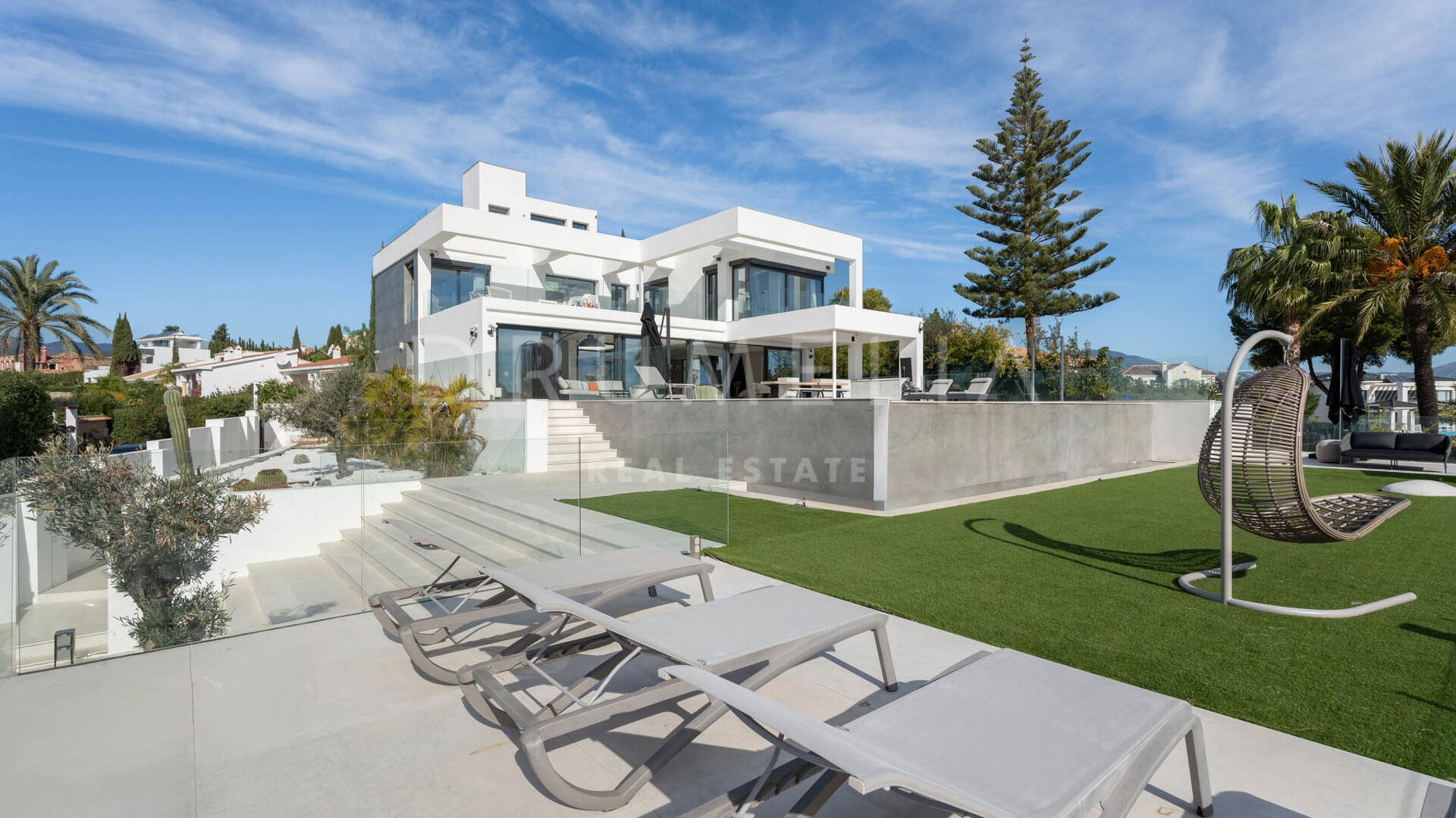 Plassert mindre enn ti minutter fra stranden og med rask tilgang til Puerto Banús og Marbella, tilbyr denne villaen en moderne bolig i et etablert område av Benahavís, som kombinerer plass, åpne utsikter og en arkitektonisk planløsning designet for hverdagslivet.