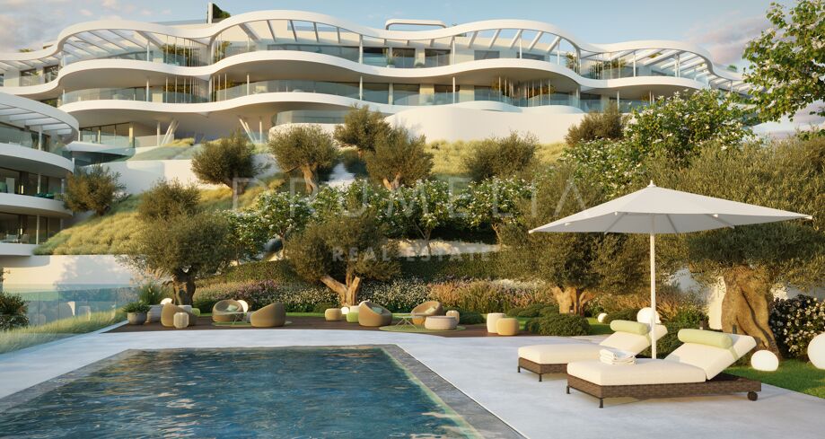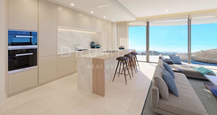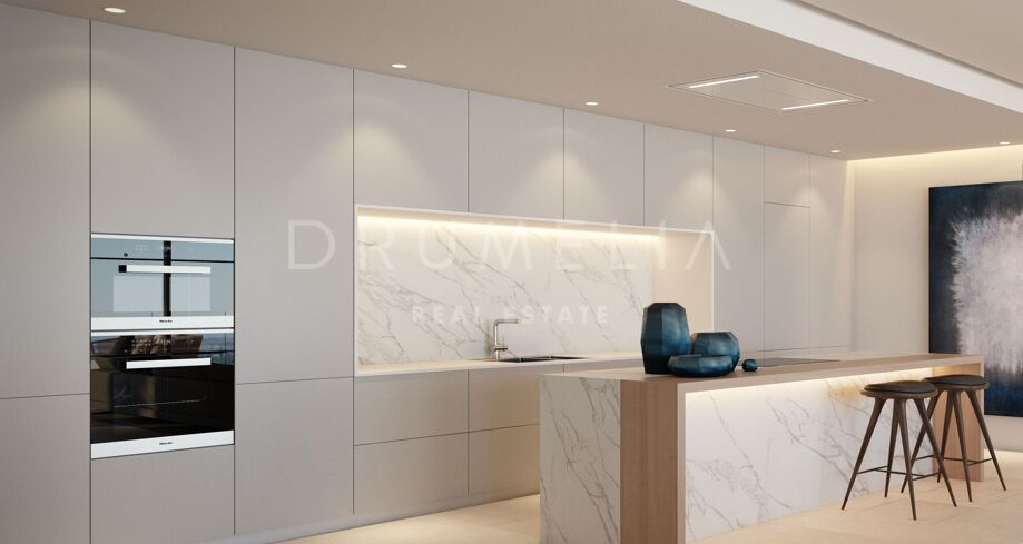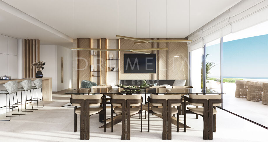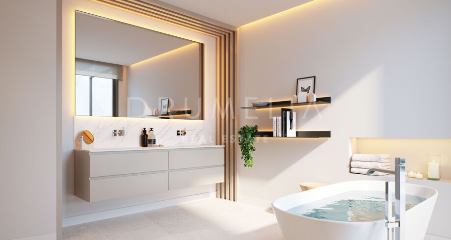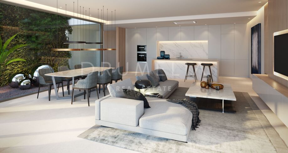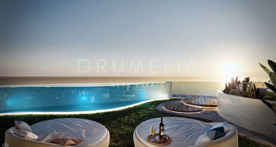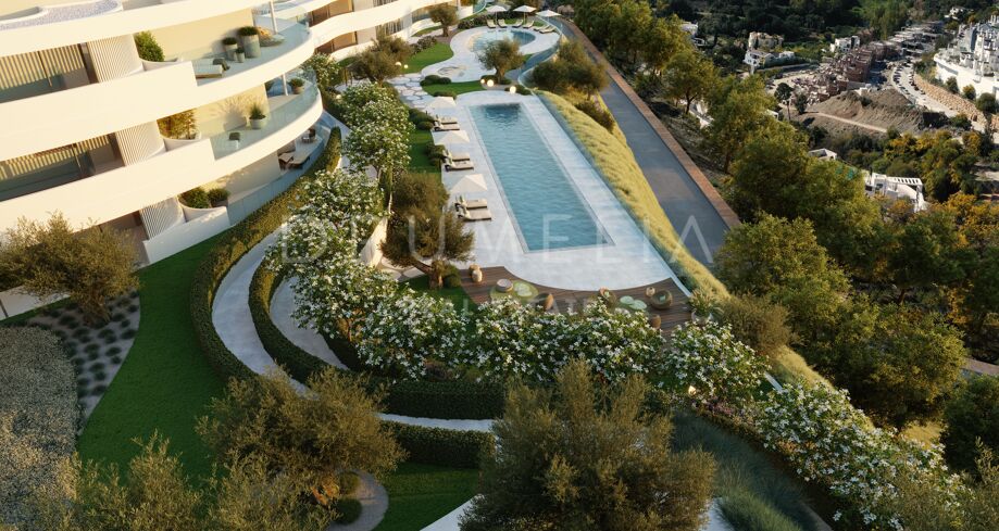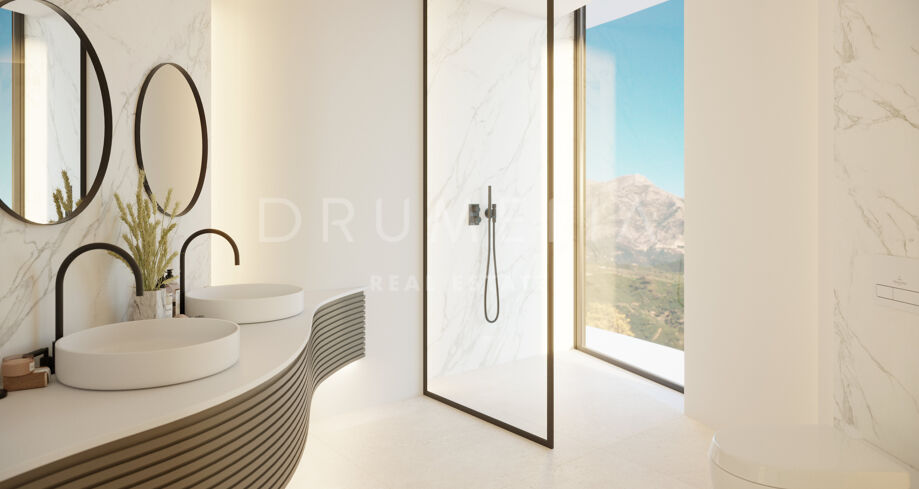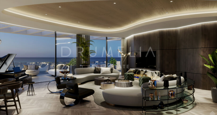 Dupleks toppleilighet til salgs i The View Marbella, Benahavis med 4 soverom, 4 baderom, 4 baderom med eget bad, 1 toalett, innebygd 2022 og har basseng (felles), garasje (felles) og hage (felles). Dimensjoner: 450m² bygget, 218m² interiør og 230m² terrasse.