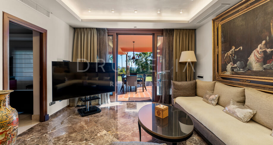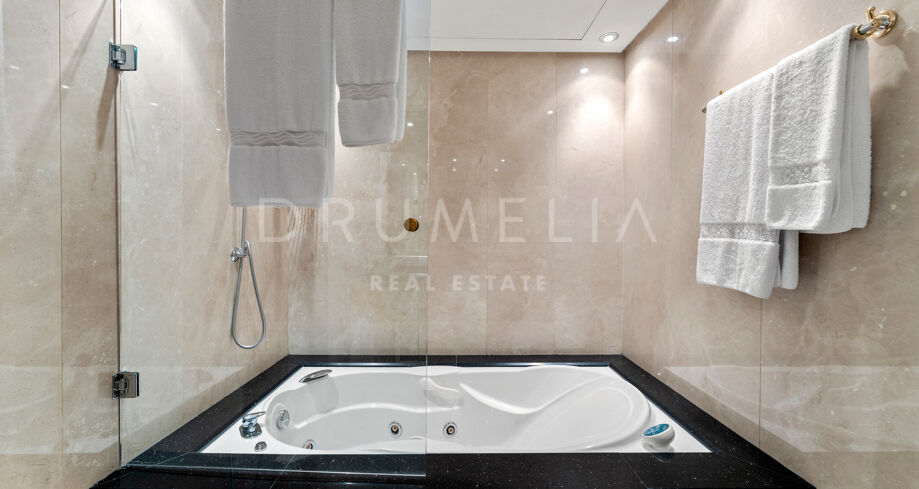 Leiligheten er omgitt av lignende eksklusive eiendommer, og har en ypperlig beliggenhet i en skjermet bukt langs den livlige New Golden Mile, bare 10 minutter fra Puerto Banús og 5 minutter fra Estepona. Området ligger i nærheten av internasjonale skoler, femstjerners hoteller, golfbaner, tennisklubber, fine restauranter, butikker og et anerkjent ridesenter. Med enkel tilgang til alle fasiliteter og en førsteklasses beliggenhet ved stranden, er dette triplexet et utmerket valg for de som søker komfort, privatliv og en privilegert livsstil ved kysten.
