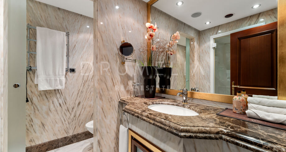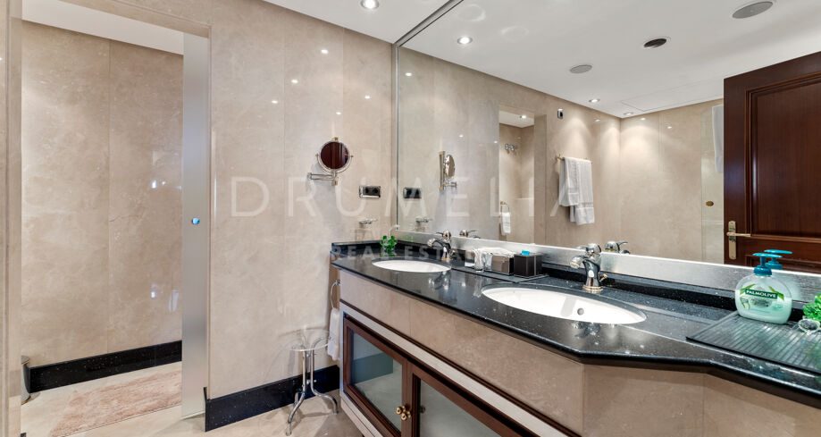 Boligen er designet for komfort året rundt, og har gulvvarme, klimakontroll, marmorgulv og innebygde garderober. Det følger også med tre underjordiske parkeringsplasser og tre boder. Det inngjerdede boligområdet har et vakkert vedlikeholdt hageanlegg, innendørs- og utendørsbasseng, treningsstudio, badstue og 24-timers vakthold.