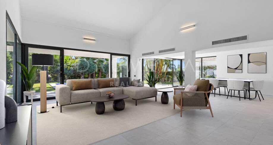 Diese atemberaubende, moderne Villa zum Verkauf im begehrten Stadtteil Alta Vista von San Pedro de Alcántara vereint zeitgemäßes Design, Komfort und eine unschlagbare Lage nahe dem Strand und allen Annehmlichkeiten.