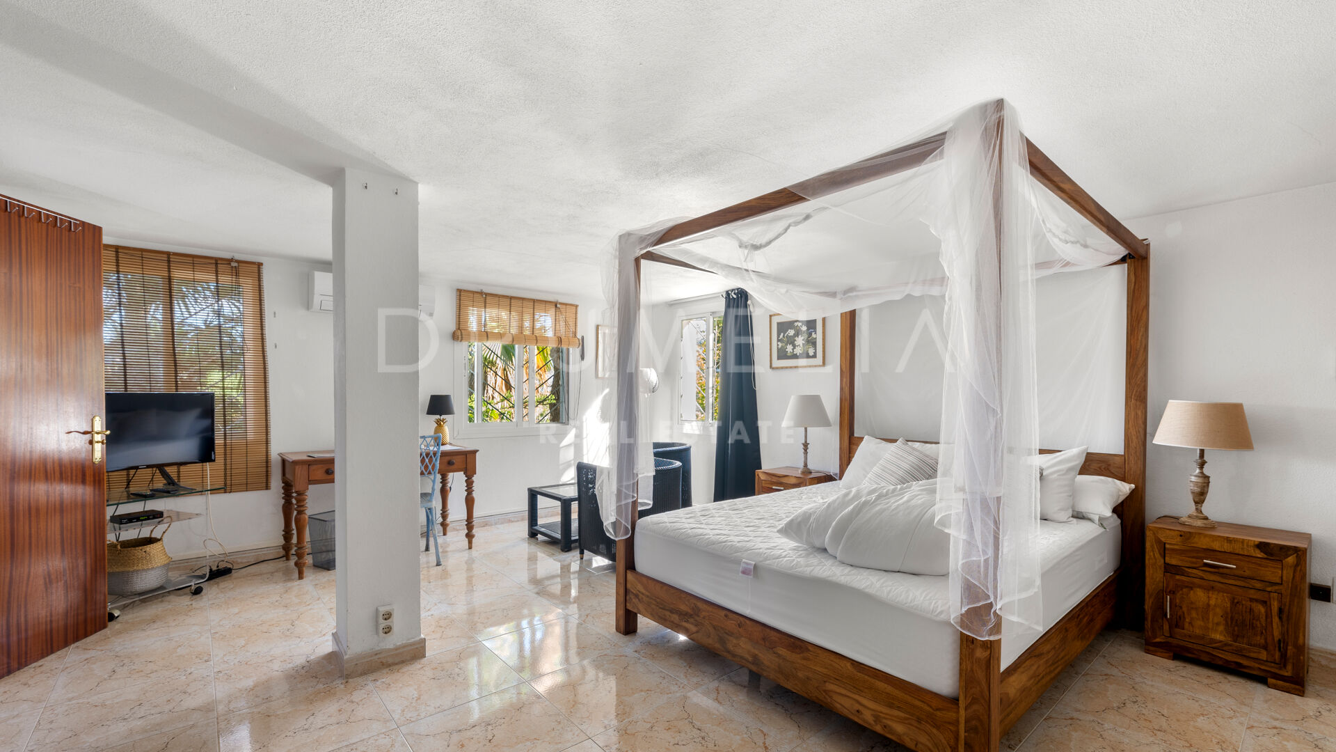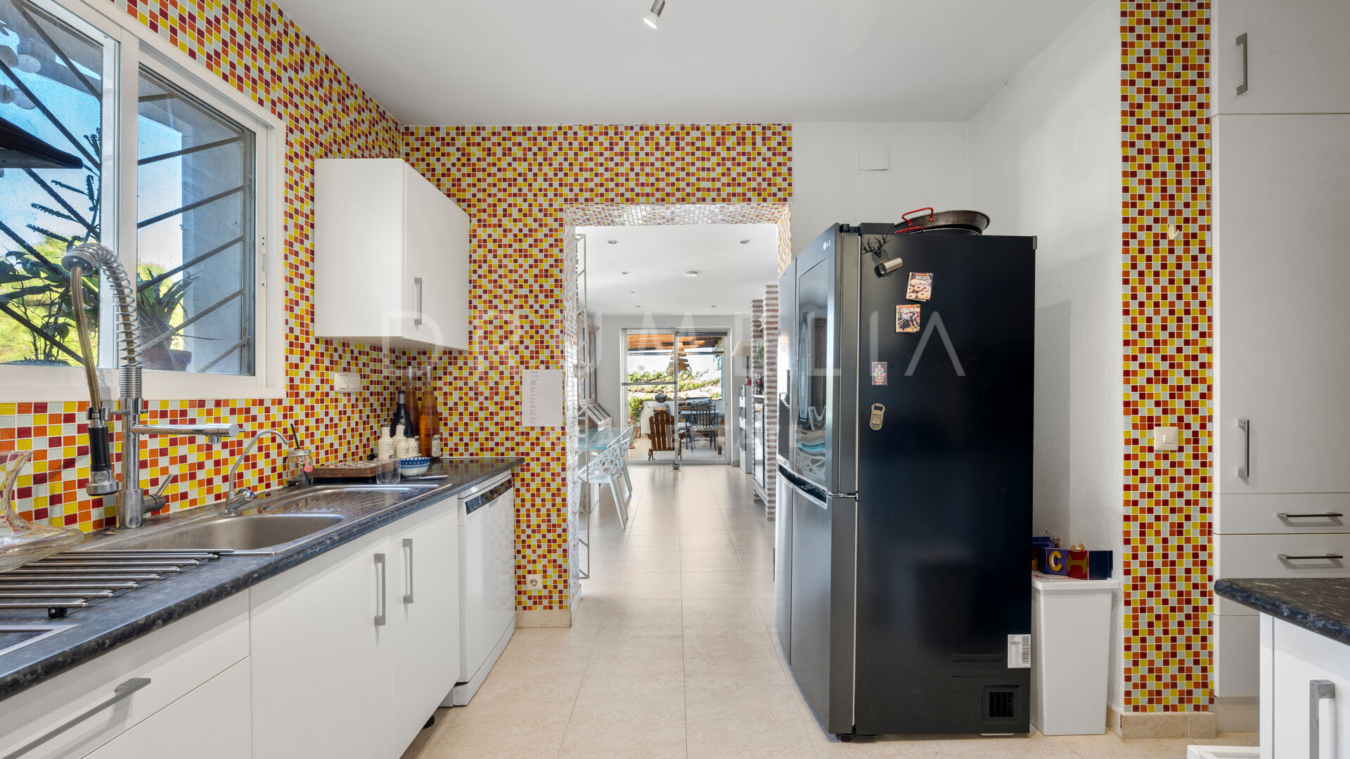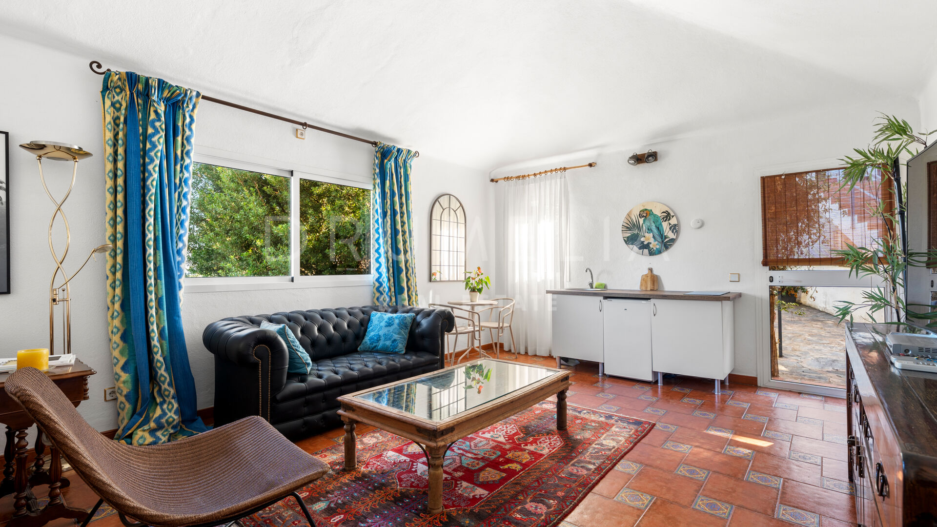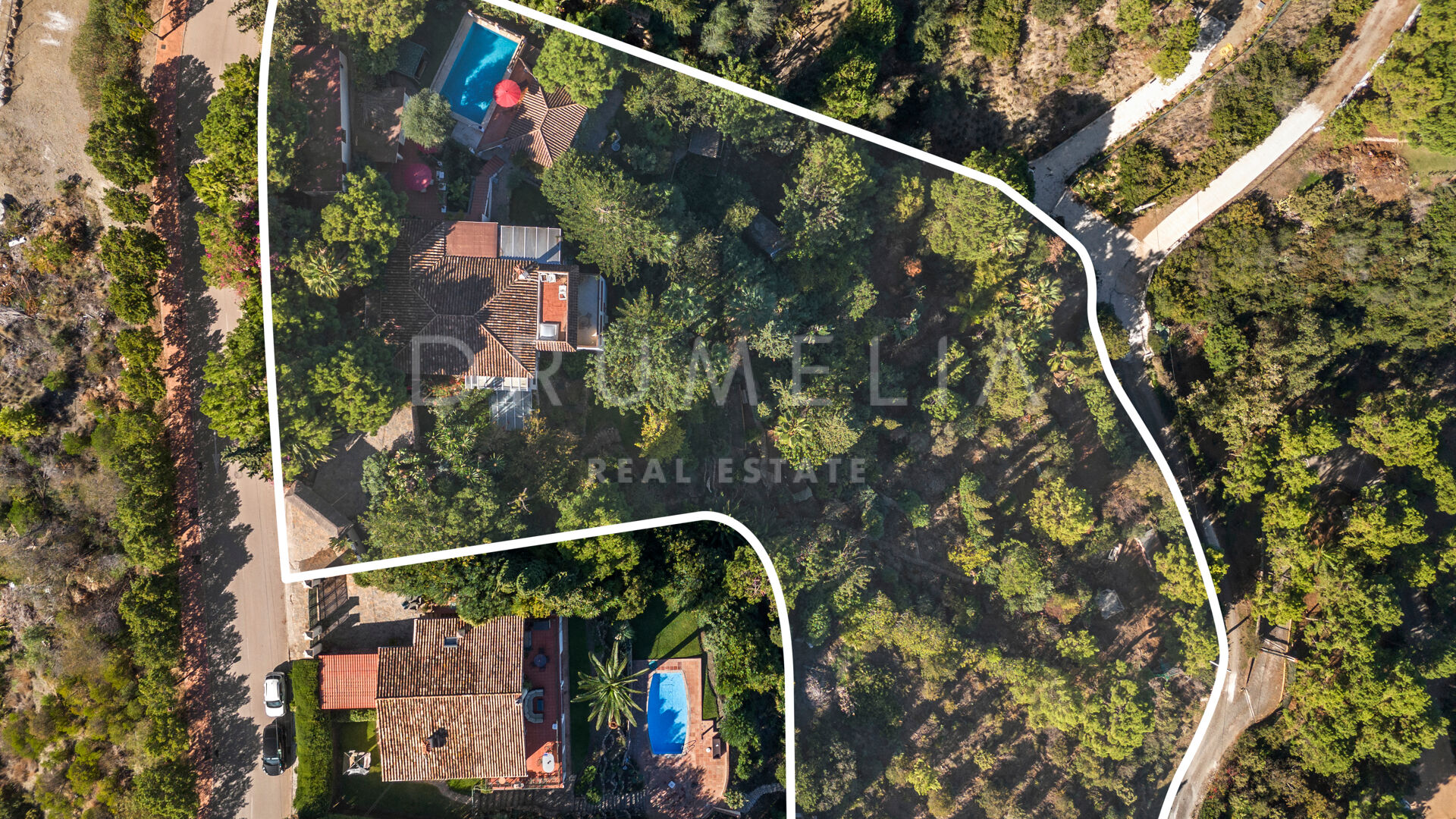 Umgeben von üppigem Grün und Luxusimmobilien im modernen/zeitgenössischen oder klassischen andalusischen/mediterranen Design liegt das 708 m² große Haus auf einem beeindruckenden Grundstück von 5.800 m². Wenn Sie die Weite dieses Grundstücks betreten, werden Sie von einem Gefühl der Ruhe umhüllt. Der Panoramablick ist endlos, Grüntöne bilden eine faszinierende Kulisse und saphirfarbene Töne gehen am Horizont nahtlos ineinander über. Die Immobilie wird in einem guten Zustand und mit großem Potenzial verkauft. Nach einigen Renovierungsarbeiten kann es Ihr Traumhaus an der Costa del Sol werden. Es verfügt über 6 Schlafzimmer (insgesamt) und 6 Bäder, eine funktionelle Küche, die mit kleinen Mosaikfliesen in leuchtenden Farben revitalisiert wurde, Ess- und Wohnzimmer, Büro, Abstell- und Waschräume, Garage, etc. Es gibt ein kleines, unabhängiges Gästehaus mit einem Schlafzimmer, einem Badezimmer, einem Wohnzimmer, einer kleinen Küche und einer Terrasse mit Blick auf die Landschaft und das Meer. Dies ist die perfekte Lösung für die Unterbringung von Mitarbeitern oder Gästen, wobei deren Privatsphäre und Komfort gewährleistet ist.