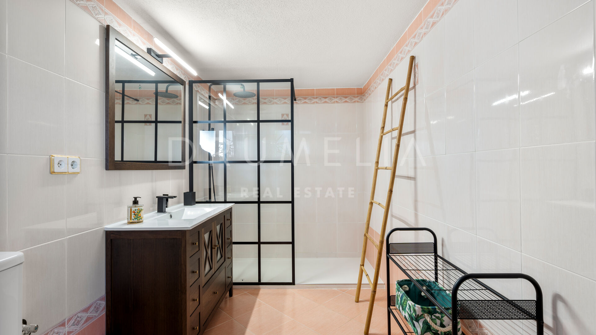 Diese Immobilie mit 6 Schlafzimmern wird in Benahavis zum Verkauf angeboten, in der Nähe des Monte Selwo, zwischen San Pedro de Alcantara und dem Zentrum von Estepona. Eingebettet in die sanften Hügel und üppigen Landschaften bietet es eine einmalige Gelegenheit, in die ruhige Schönheit dieser Gegend einzutauchen. Von hier aus hat man einen atemberaubenden Blick auf die Berge und das Mittelmeer bis hin zu Gibraltar und der afrikanischen Küste. Das Viertel zieht Einheimische und Auswanderer gleichermaßen an. Es verfügt über ein umfassendes Angebot an Dienstleistungen und Annehmlichkeiten, darunter Supermärkte, Restaurants und Einkaufszentren. Alle Annehmlichkeiten der prestigeträchtigen Neuen Goldenen Meile von Estepona befinden sich in unmittelbarer Nähe. In der Umgebung von Benahavis finden Sie den Tennisclub Bel Air, internationale Schulen, Privatkrankenhäuser, ein Reitzentrum, den Tierpark Selwo Aventura und Orte für Freizeit- und Sportaktivitäten. Golfliebhaber werden sich freuen, mehrere Golfplätze in unmittelbarer Nähe zu entdecken: La Resina Golf & Country Club (1,3 km), 3 Golfplätze von Los Flamingos (6 km entfernt), El Paraiso und Marbella Club Golf Resort (beide 8 km entfernt), El Campanario (10 km entfernt), und so weiter. Auch die Sonnenanbeter werden nicht enttäuscht sein. Der Strand Guadalmansa ist der ruhigste in Estepona. Ruhe und Stille sind die Markenzeichen dieses schönen Sandstrandes. Es ist der perfekte Ort für diejenigen, die Menschenmassen vermeiden, lange Wellen am Wasser entlang ziehen oder Kite-Surfen und andere Wassersportarten betreiben wollen. Durch die Nähe zur A-7 ist die Gegend sehr gut an die Stadt Estepona, das legendäre Puerto Banus, San Pedro, das Golf Valley und das Zentrum von Marbella angebunden. Die internationalen Flughäfen Malaga und Gibraltar sind in weniger als einer Stunde zu erreichen.