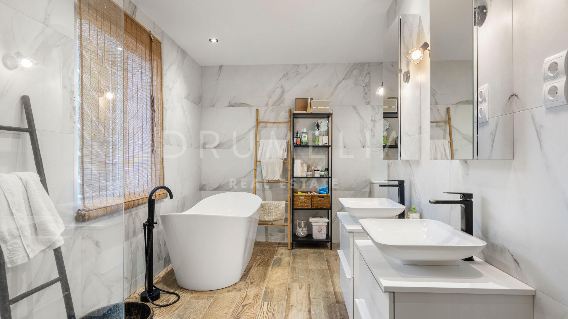 Die überdachten, verglasten und sonnigen Terrassen und der Balkon laden dazu ein, den herrlichen mediterranen Lebensstil zu genießen, der in die Liste des immateriellen Kulturerbes der UNESCO aufgenommen wurde. In der Nähe des Swimmingpools befindet sich eine Außenküche, die die Vielseitigkeit dieses bemerkenswerten Anwesens unterstreicht, in dem Sie sich auch entspannen und sonnen können. Das Haus wird unmöbliert (oder mit optionalen Möbeln) angeboten und verfügt über eine Klimaanlage, eine luxuriöse freistehende Badewanne, eine Alarmanlage, Doppelverglasung, Holz- und Glastüren, Marmor-, Fliesen- und Holzfußböden, usw. Ein offener Kamin im klassischen Stil verleiht dem Wohnzimmer Wärme und Charakter. Ob an einem lauen Sommerabend oder in einer kühlen Winternacht, er wird zum Treffpunkt für bleibende glückliche Erinnerungen. Stellen Sie sich vor, Sie könnten sich für eine Weile von der Technik lösen und Zeit mit Ihrer Familie am Kamin verbringen oder eine “Kaminromanze” genießen.