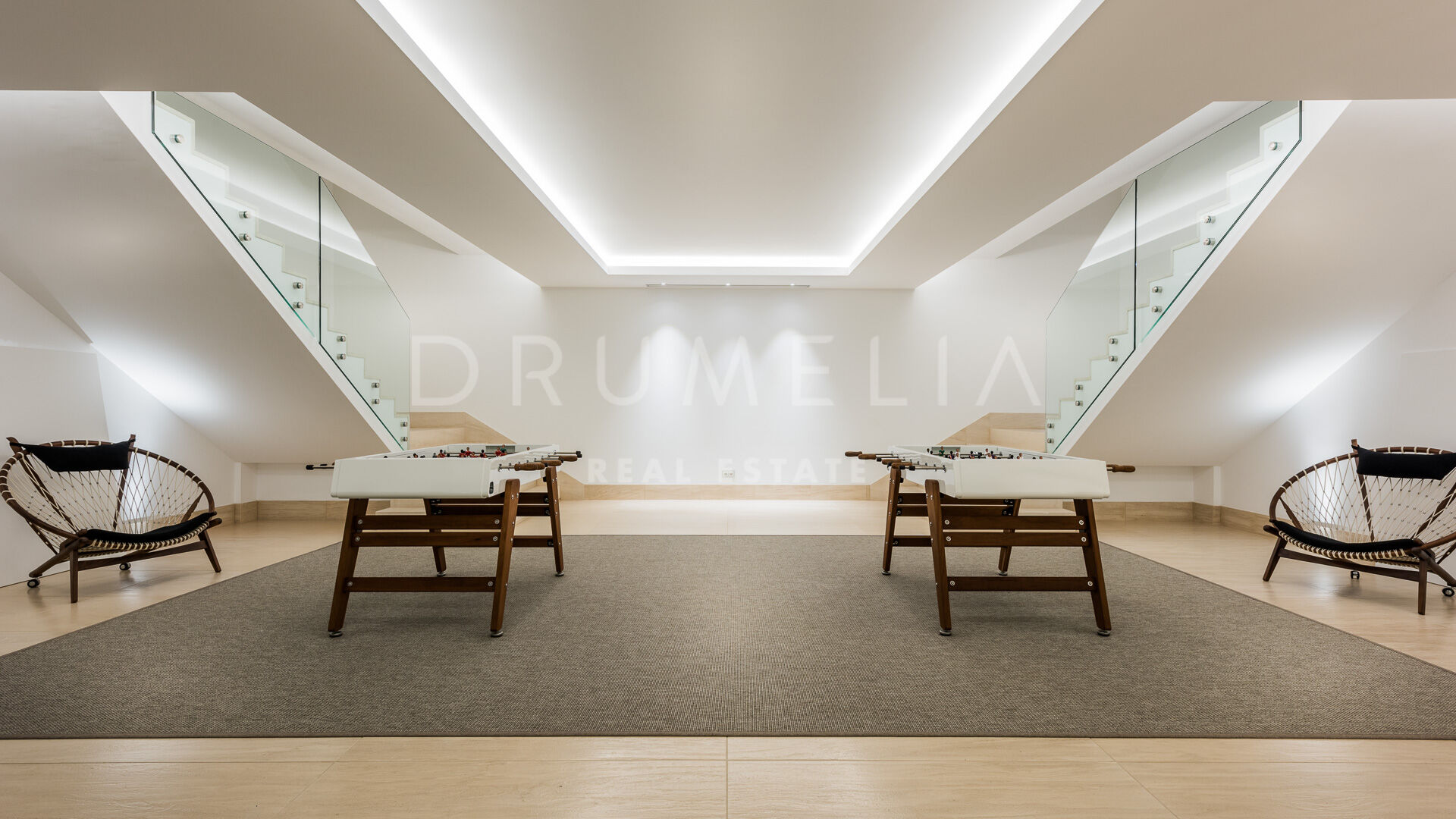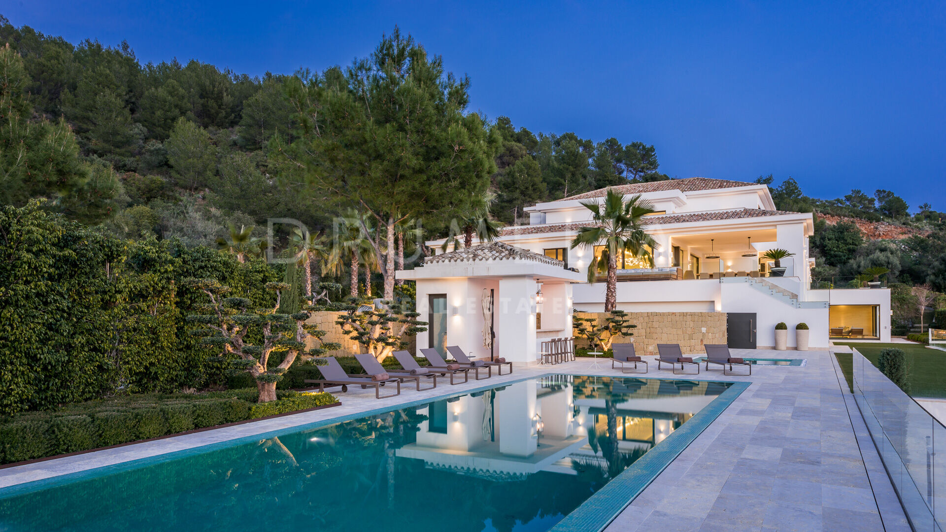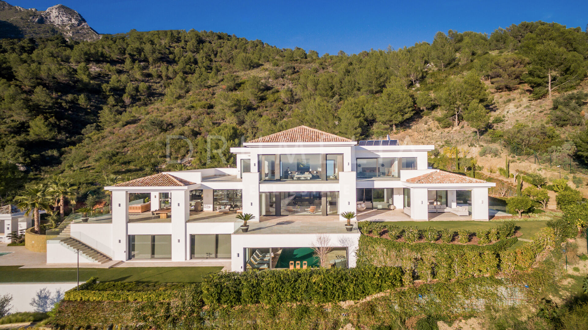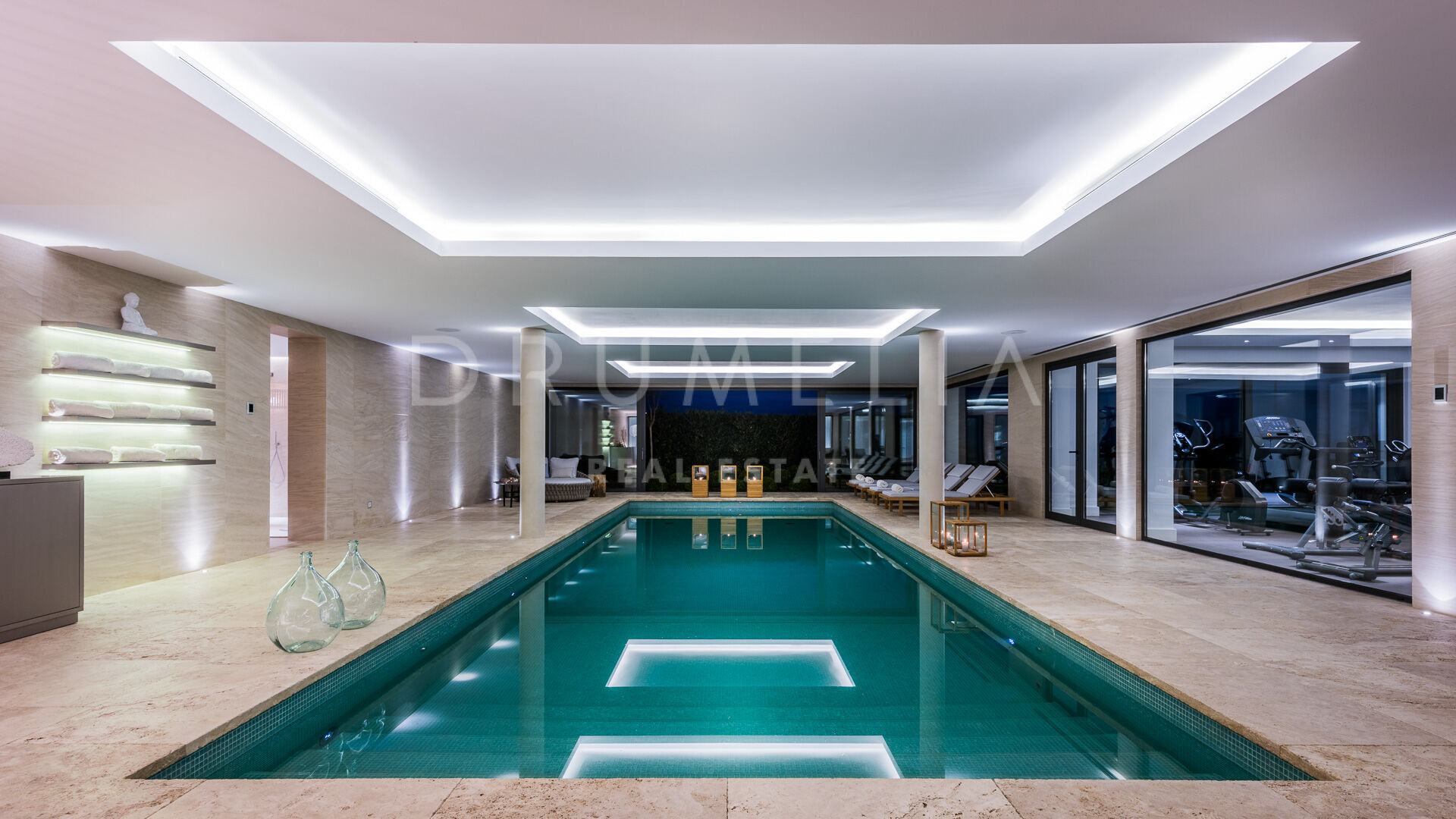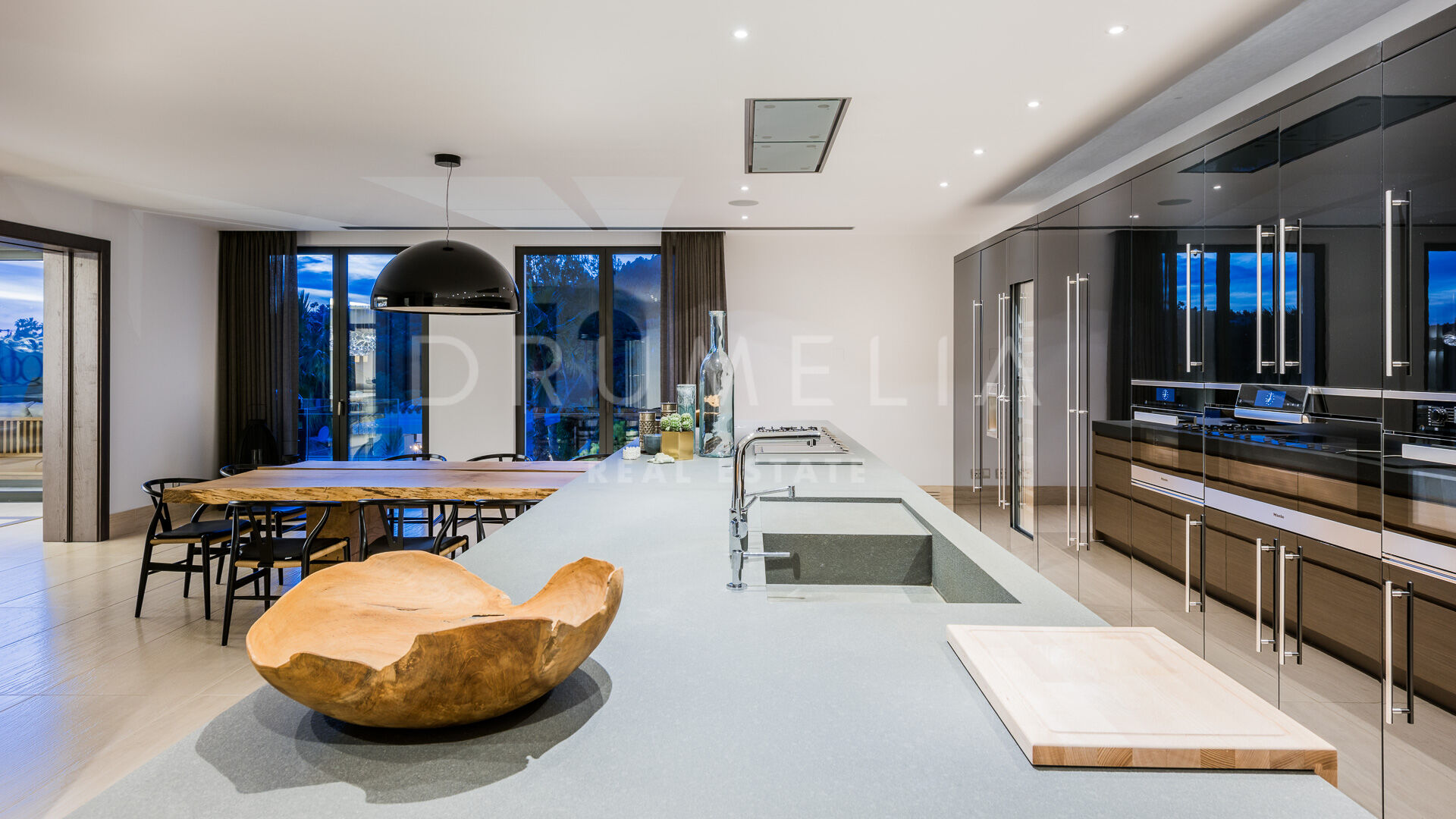 Die makellose große Villa mit fesselnder Eleganz, moderner Ästhetik und praktischer Anziehungskraft bringt einen neuen Standard an architektonischer Raffinesse und kreativer Exzellenz sogar nach Marbella, das mit der Natur von Luxus und extravagantem Wohnen sehr vertraut ist. Es zieht das Auge mit exquisiten geometrischen Linien und subtilen visuellen Details an, ohne jemals überflüssig zu werden. Sein innovatives Design verbindet harmonisch das Beste aus zeitgenössischen Elementen mit den attraktivsten mediterranen Merkmalen. Die kunstvolle Manipulation von Raum und Licht durch die Designer erzeugt einen nahtlosen Fluss der Wohnräume und eine freizügige Verteilung. Die angesehenen Bewohner und ihre Gäste müssen sich keine Sorgen machen, dieses Haus zu genießen. Mit 2.600m2 luxuriöser Wohnfläche, verteilt auf 3 Ebenen, bietet es Wohn-, Empfangs- und Esszimmer, 8 geräumige Schlafzimmersuiten, inspirierende hochmoderne Küche, Büro, separate Waschküche, Lager- und Technikräume, separates Apartment, Innen- und Außenpools, SPA, Sauna, Fitnessraum, Kino, Spielzimmer, ‘Meditations- und Aussichtsbereich’… Der atemberaubende Weinkeller ist der Traum eines jeden Weinliebhabers. Stellen Sie sich vor, Sie steigen eine Treppe hinunter in eine schicke ‘Felsengrotte’, klimatisiert, komplett mit passenden Fliesenböden, Weinkühler und Regalen voll mit den geschmackvollsten Trankopfern aus aller Welt. Ein weiterer Traum, der in Erfüllung geht, ist ein begehbarer Kleiderschrank aus Holz, ideal zur Aufbewahrung und Präsentation der Kollektionen modischer Designer.