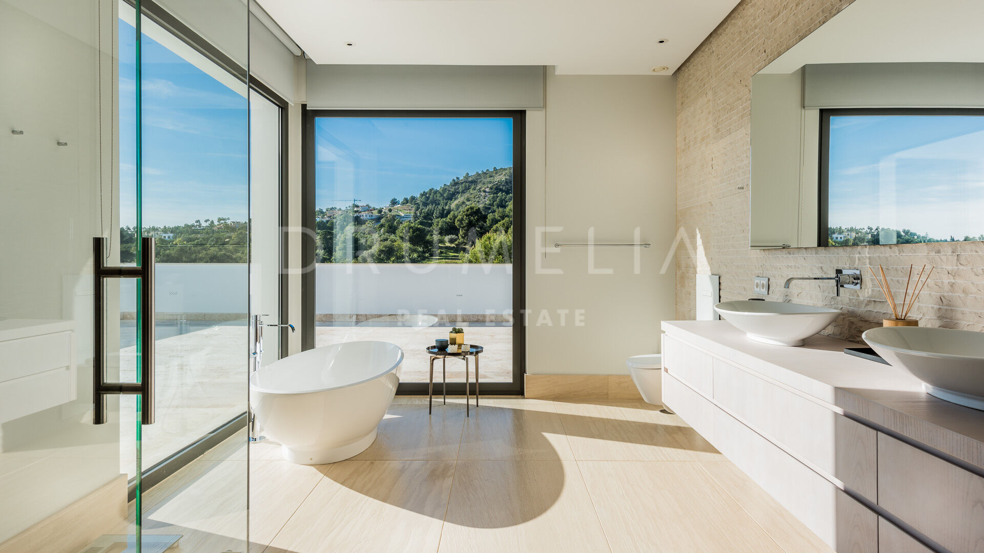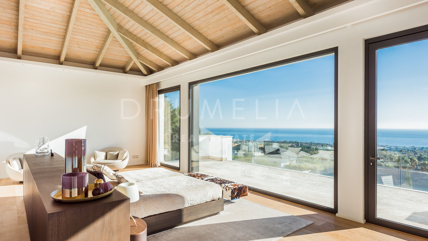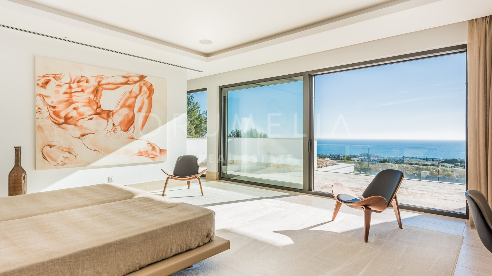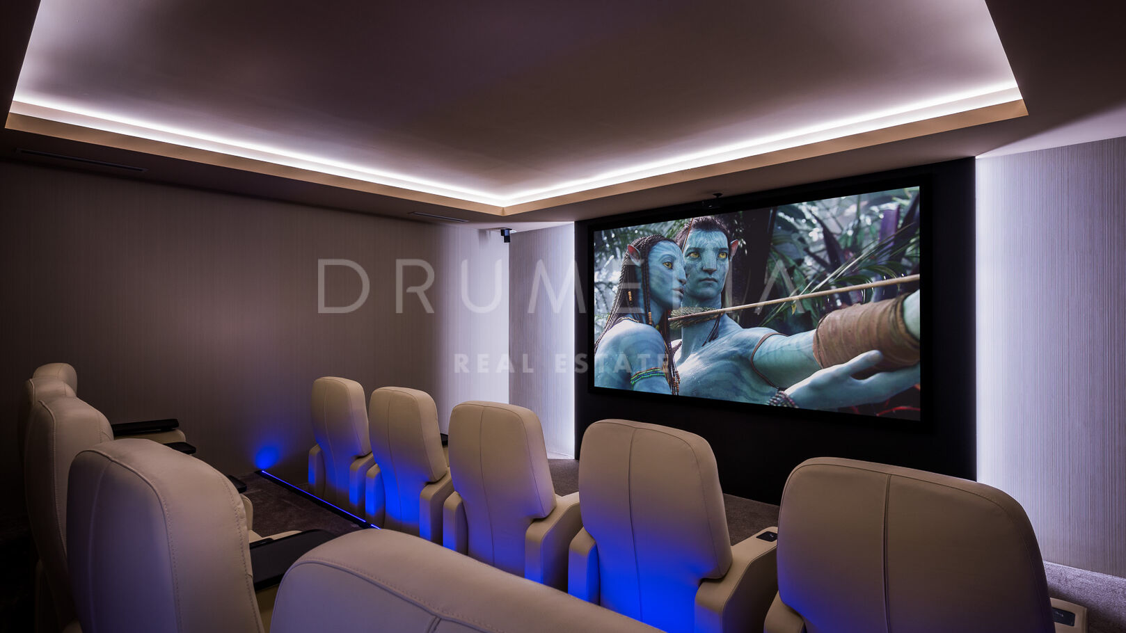 Die makellose große Villa mit fesselnder Eleganz, moderner Ästhetik und praktischer Anziehungskraft bringt einen neuen Standard an architektonischer Raffinesse und kreativer Exzellenz sogar nach Marbella, das mit der Natur von Luxus und extravagantem Wohnen sehr vertraut ist. Es zieht das Auge mit exquisiten geometrischen Linien und subtilen visuellen Details an, ohne jemals überflüssig zu werden. Sein innovatives Design verbindet harmonisch das Beste aus zeitgenössischen Elementen mit den attraktivsten mediterranen Merkmalen. Die kunstvolle Manipulation von Raum und Licht durch die Designer erzeugt einen nahtlosen Fluss der Wohnräume und eine freizügige Verteilung. Die angesehenen Bewohner und ihre Gäste müssen sich keine Sorgen machen, dieses Haus zu genießen. Mit 2.600m2 luxuriöser Wohnfläche, verteilt auf 3 Ebenen, bietet es Wohn-, Empfangs- und Esszimmer, 8 geräumige Schlafzimmersuiten, inspirierende hochmoderne Küche, Büro, separate Waschküche, Lager- und Technikräume, separates Apartment, Innen- und Außenpools, SPA, Sauna, Fitnessraum, Kino, Spielzimmer, ‘Meditations- und Aussichtsbereich’… Der atemberaubende Weinkeller ist der Traum eines jeden Weinliebhabers. Stellen Sie sich vor, Sie steigen eine Treppe hinunter in eine schicke ‘Felsengrotte’, klimatisiert, komplett mit passenden Fliesenböden, Weinkühler und Regalen voll mit den geschmackvollsten Trankopfern aus aller Welt. Ein weiterer Traum, der in Erfüllung geht, ist ein begehbarer Kleiderschrank aus Holz, ideal zur Aufbewahrung und Präsentation der Kollektionen modischer Designer.