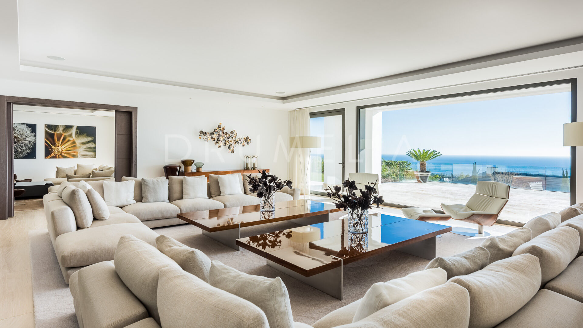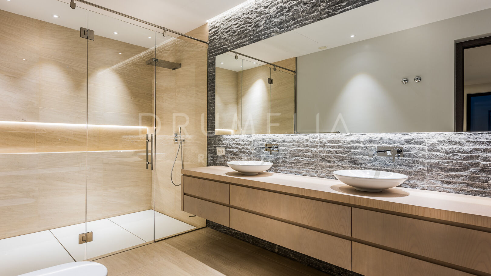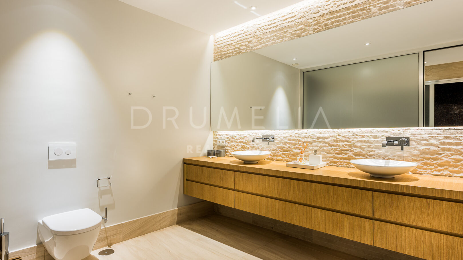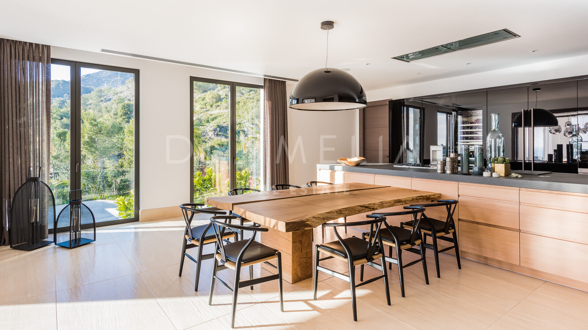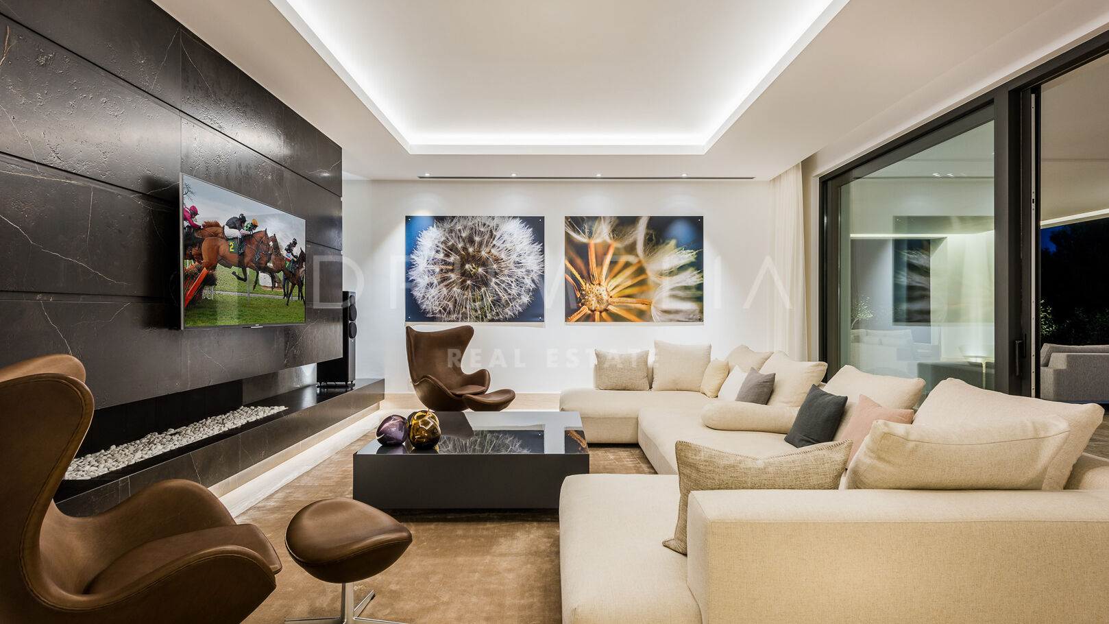 Die makellose große Villa mit fesselnder Eleganz, moderner Ästhetik und praktischer Anziehungskraft bringt einen neuen Standard an architektonischer Raffinesse und kreativer Exzellenz sogar nach Marbella, das mit der Natur von Luxus und extravagantem Wohnen sehr vertraut ist. Es zieht das Auge mit exquisiten geometrischen Linien und subtilen visuellen Details an, ohne jemals überflüssig zu werden. Sein innovatives Design verbindet harmonisch das Beste aus zeitgenössischen Elementen mit den attraktivsten mediterranen Merkmalen. Die kunstvolle Manipulation von Raum und Licht durch die Designer erzeugt einen nahtlosen Fluss der Wohnräume und eine freizügige Verteilung. Die angesehenen Bewohner und ihre Gäste müssen sich keine Sorgen machen, dieses Haus zu genießen. Mit 2.600m2 luxuriöser Wohnfläche, verteilt auf 3 Ebenen, bietet es Wohn-, Empfangs- und Esszimmer, 8 geräumige Schlafzimmersuiten, inspirierende hochmoderne Küche, Büro, separate Waschküche, Lager- und Technikräume, separates Apartment, Innen- und Außenpools, SPA, Sauna, Fitnessraum, Kino, Spielzimmer, ‘Meditations- und Aussichtsbereich’… Der atemberaubende Weinkeller ist der Traum eines jeden Weinliebhabers. Stellen Sie sich vor, Sie steigen eine Treppe hinunter in eine schicke ‘Felsengrotte’, klimatisiert, komplett mit passenden Fliesenböden, Weinkühler und Regalen voll mit den geschmackvollsten Trankopfern aus aller Welt. Ein weiterer Traum, der in Erfüllung geht, ist ein begehbarer Kleiderschrank aus Holz, ideal zur Aufbewahrung und Präsentation der Kollektionen modischer Designer.