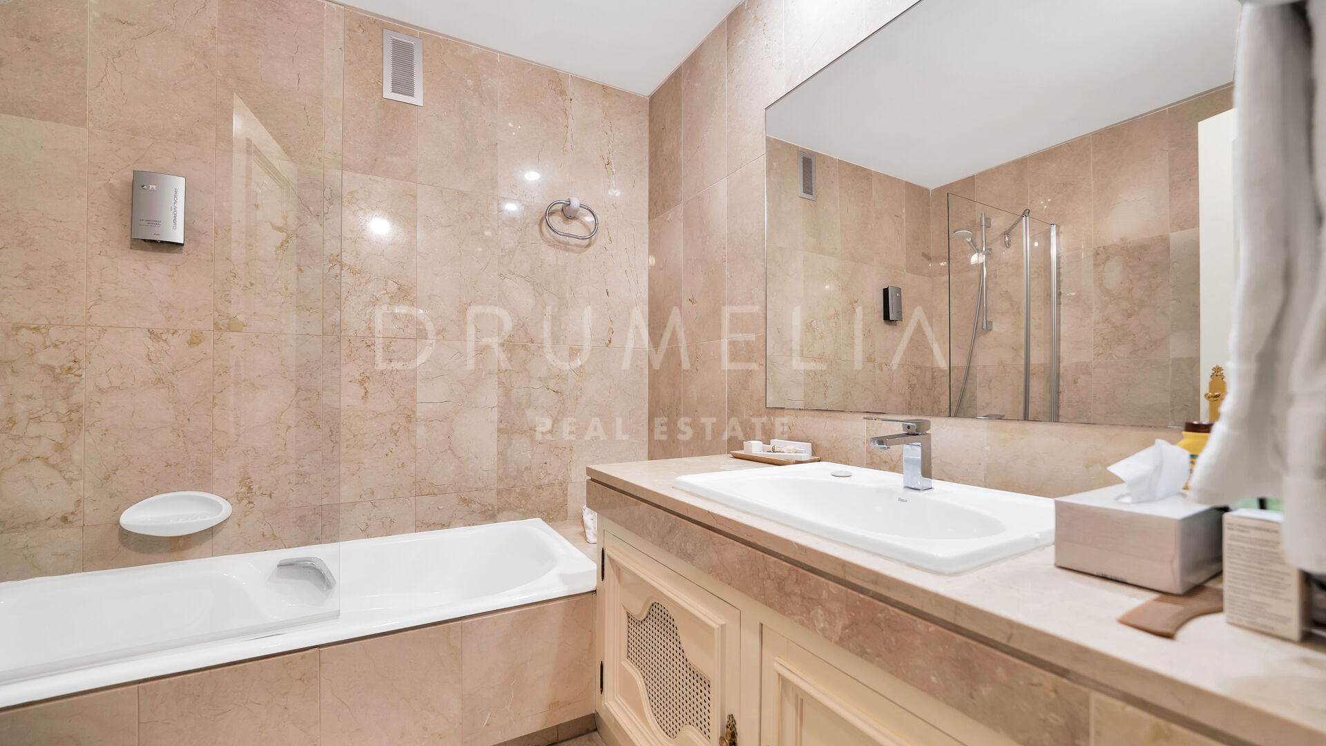 Zwischen Marbella-Zentrum und Puerto Banús gelegen, ist die Golden Mile eine der renommiertesten Adressen Spaniens. Umgeben von Luxushotels, Gourmetrestaurants, Designerboutiquen und Golfplätzen steht diese Immobilie für exklusives Wohnen direkt am Meer in Marbella – eine seltene Gelegenheit an der Costa del Sol.