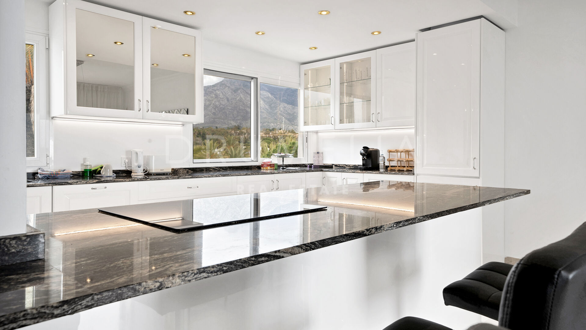 Das Penthouse wurde für einen eleganten Lebensstil an der Küste entworfen und verbindet helle, offene Räume mit hochwertigen Materialien. Der Wohn- und Essbereich öffnet sich nahtlos zur Terrasse mit großen Fensterfronten, die den Innenraum mit Tageslicht durchfluten und spektakuläre Ausblicke auf das Meer und den Berg La Concha bieten. Coral Beach bietet gepflegte tropische Gärten, einen großen Pool, direkten Zugang zur Promenade und 24-Stunden-Sicherheit für höchsten Komfort und Ruhe.