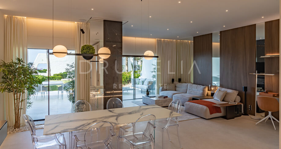Dieses fabelhafte moderne Stadthaus zum Verkauf in bester Lage, der am Strand gelegenen Gated Resort Coral Beach an der berühmten Goldenen Meile von Marbella. Es liegt direkt am Meer, nur 1 km von Puerto Banús und 5 km vom Zentrum von Marbella entfernt und hat direkten Zugang zur Promenade und zum Strand.