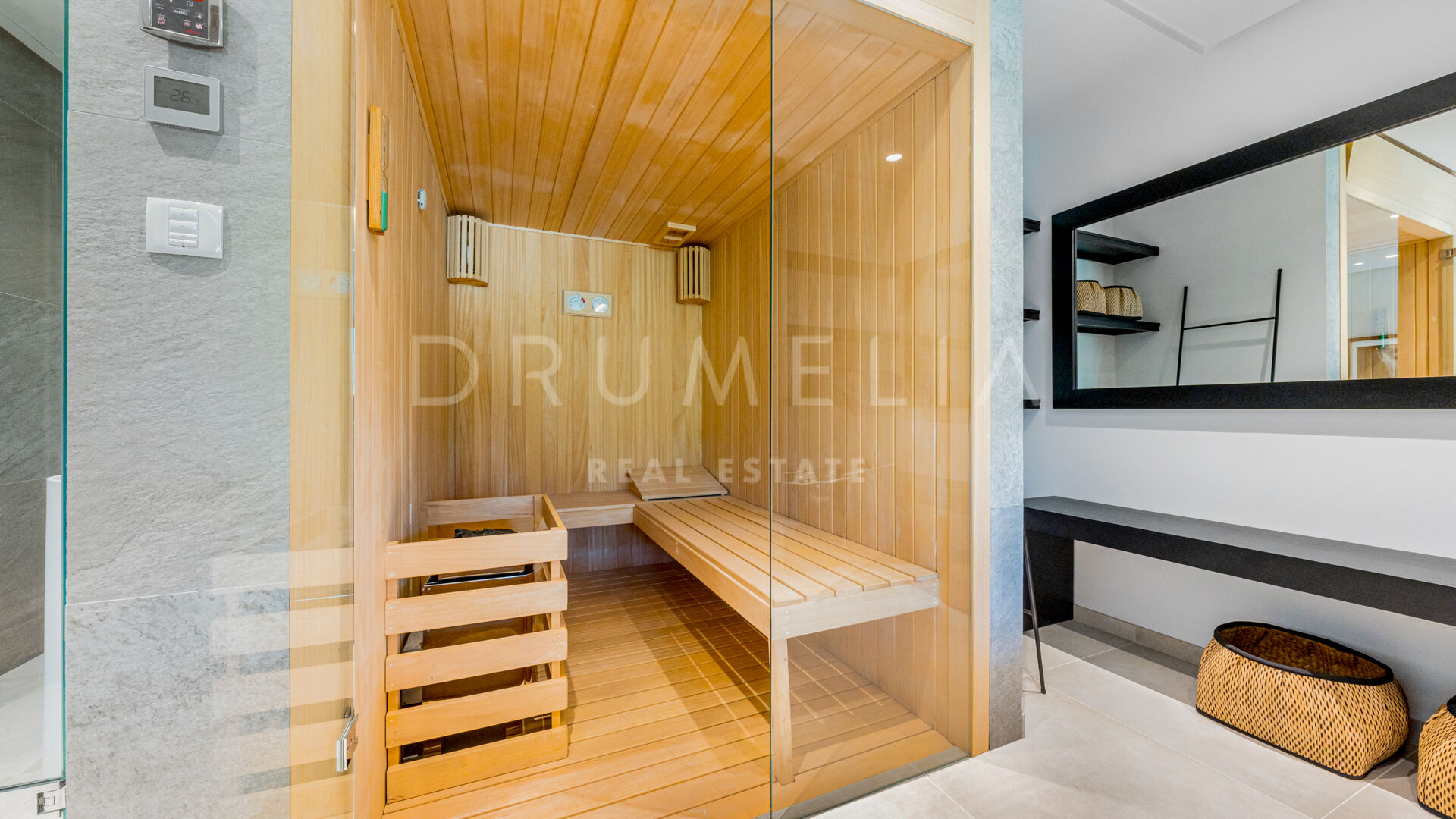 Dieses großartige, moderne Haus zum Verkauf hat einen unwiederholbaren Vorteil: die einzigartige Natur: Mediterrane Wälder mit Korkeichen und Kiefern. Das Haus befindet sich in der luxuriösen Urbanisation El Madroñal, die über einen 24-Stunden-Sicherheitsdienst verfügt und nur wenige Minuten vom Meer, wenige Kilometer vom Zentrum von San Pedro de Alcantara mit seinem breiten Angebot an Dienstleistungen und 15 Minuten vom fabelhaften Puerto Banus und dem Golftal von Nueva Andalucía entfernt liegt. Diese Wohngegend ist voll von ländlichem Schick. Sie liegt 400 Meter über dem Meeresspiegel, was einen atemberaubenden Panoramablick auf die darunter liegende Küste garantiert. Die Zufahrt erfolgt über die schöne Straße in Richtung des historischen Ronda und nur wenige Autominuten entfernt befinden sich Geschäfte und alle Arten von Dienstleistungen. Es ist gut an die hübsche andalusische Urbanisation La Heredia angebunden, wo du Restaurants, Cafés, Bäckereien usw. findest.