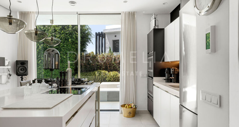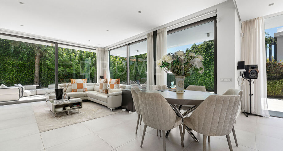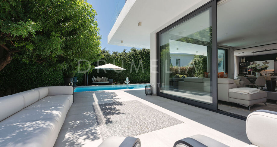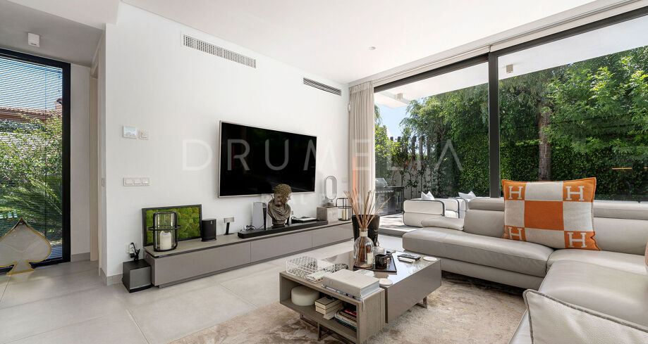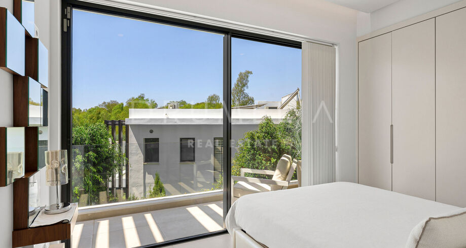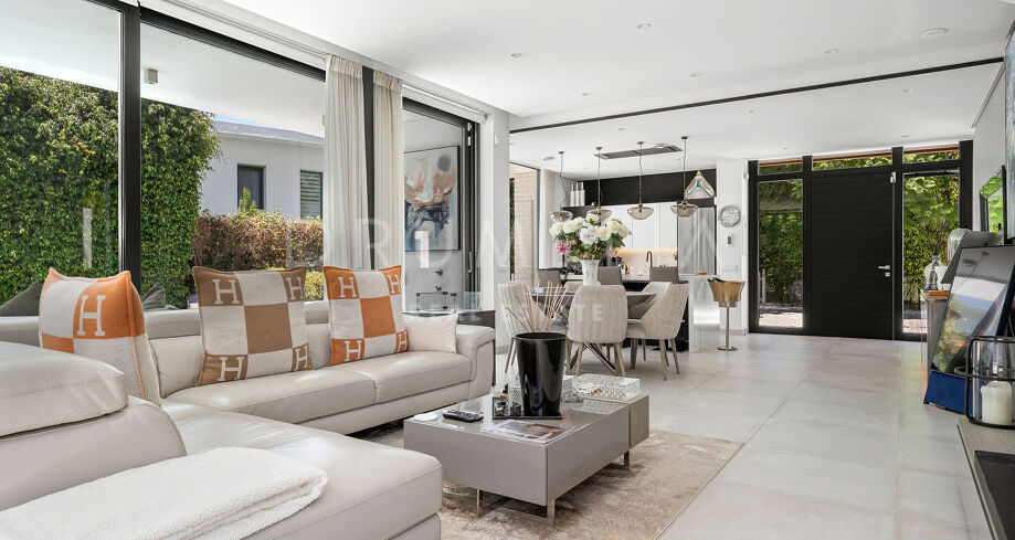 Diese moderne Villa befindet sich in der exklusiven Wohngegend La Arboleda in Estepona Ost und verbindet anspruchsvolle Architektur mit einer funktionalen Raumaufteilung, ideal für das Familienleben. Die Immobilie überzeugt durch ihre zeitgemäße Ästhetik, hochwertige Materialien und eine durchdachte Gestaltung, die Komfort und natürliches Licht in den Mittelpunkt stellt. Sie bietet eine hervorragende Gelegenheit in einer der etabliertesten und begehrtesten Wohnlagen der Costa del Sol.
