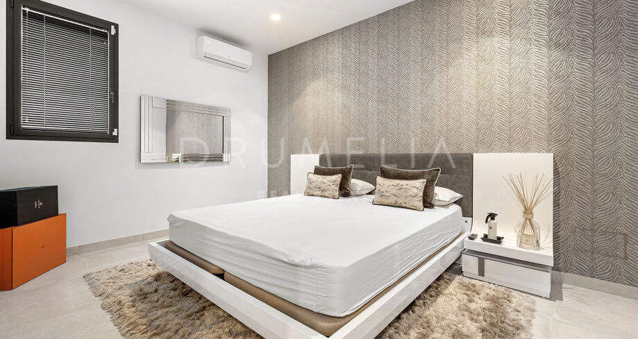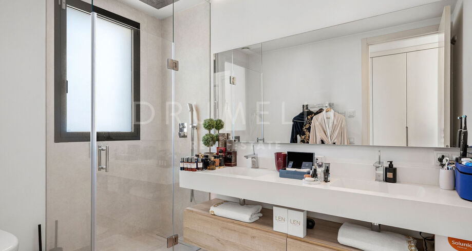 Das Untergeschoss bietet zusätzliche Flexibilität mit einem vierten Schlafzimmer, einem kompletten Badezimmer, einem Hauswirtschaftsraum und einem multifunktionalen Raum, der als Fitnessraum, Kino oder Freizeitbereich genutzt werden kann. Ergänzt wird die Immobilie durch Außenstellplätze für zwei Fahrzeuge, großzügige Stauraumlösungen sowie Ausstattungsmerkmale wie Fußbodenheizung, LED-Beleuchtung und Alarmanlage. Ruhig gelegen und dennoch nahe Golfplätzen, internationalen Schulen, Geschäften und den Stränden von Estepona.