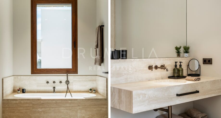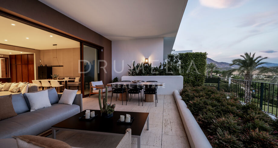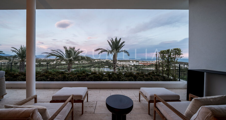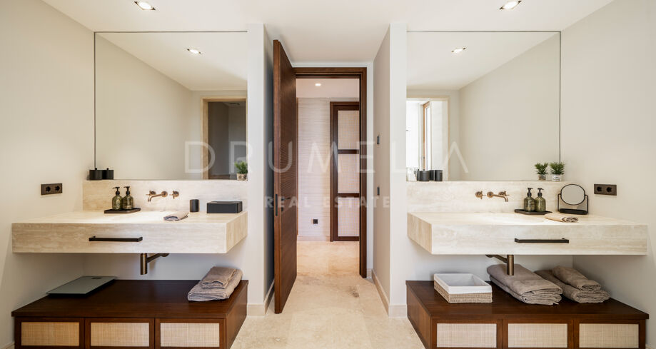 Drei Schlafzimmer mit eigenem Bad bieten reichlich Platz und sind jeweils in sanften, neutralen Farbtönen gehalten, die die umliegende Landschaft widerspiegeln. Die Master-Suite verfügt über einen begehbaren Kleiderschrank, ein luxuriöses Badezimmer mit Badewanne und direkten Zugang zur Terrasse. Neben der Wohnung haben die Bewohner Zugang zu Fünf-Sterne-Annehmlichkeiten wie Pools, einem Spa, einem Beach Club und außergewöhnlichen Speisemöglichkeiten – und das alles inmitten der atemberaubenden Naturschönheit der Finca Cortesin.