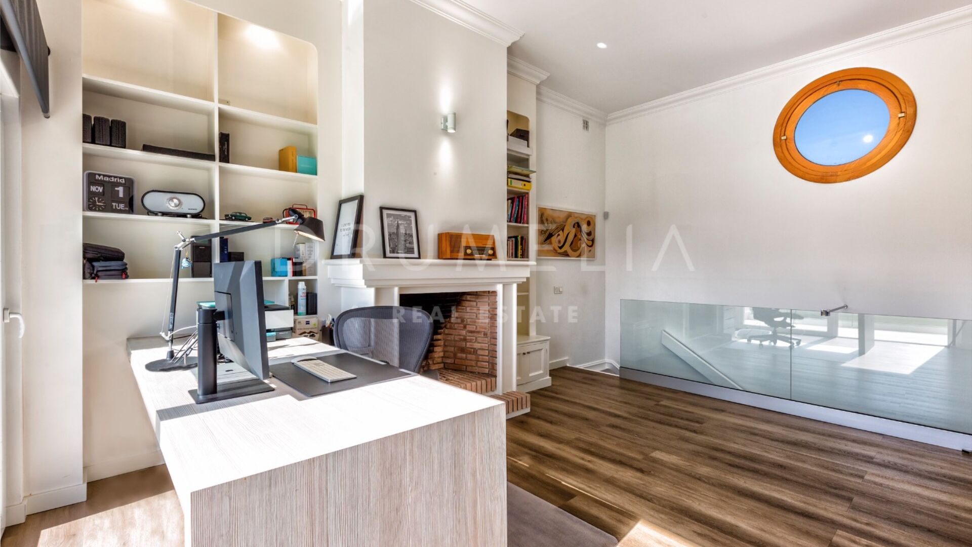 Das luxuriöse Haus wird in einem ausgezeichneten Zustand zum Verkauf angeboten, mit Sonnenkollektoren und allen elektronischen Geräten, Hausautomation, modernster Klimaanlage der neuesten Technologie und niedrigem Verbrauch. Der klassische, freiliegende Ziegelsteinkamin ist eine zeitlose und vielseitige Möglichkeit, das Haus gemütlich zu gestalten. Parkett- und Holzböden im Innen- und Außenbereich machen die Räume warm, stilvoll und anspruchsvoll. Akzentwände sind eine großartige Ergänzung für die Räume und fügen ein interessantes Designelement hinzu. Sicherheitsgitter schützen Ihre Fenster. Eine sehr gute Investition in einer der attraktivsten Gegenden von Marbella!