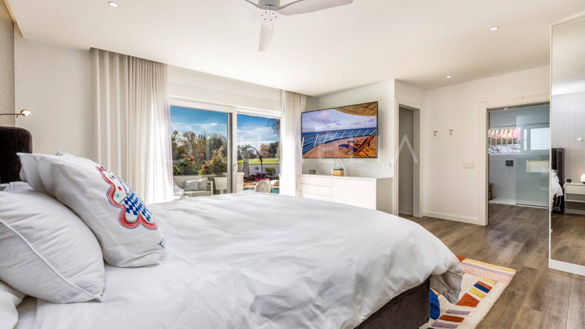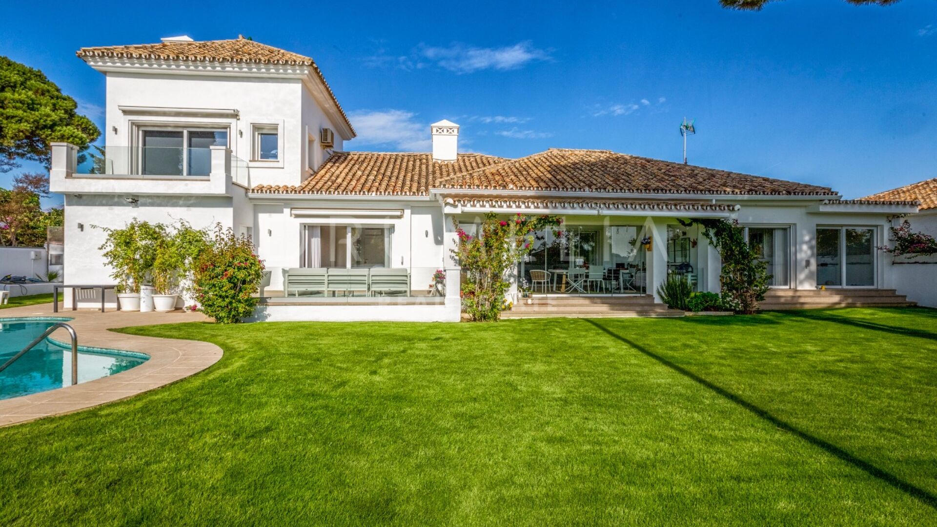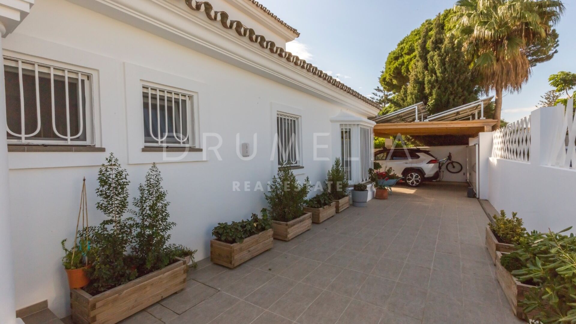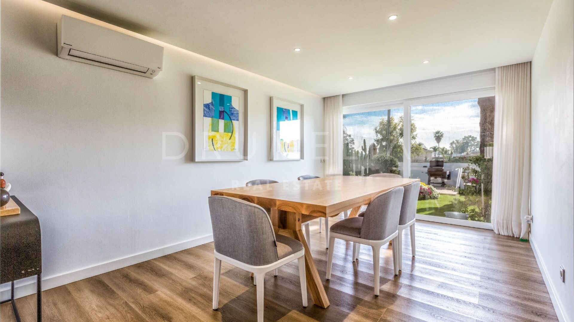 In Guadalmina Alta, San Pedro, wird eine renovierte Luxusvilla mit 4 Schlafzimmern und herrlichem Blick auf den Golfplatz zum Verkauf angeboten. Dies ist eine der begehrtesten Gegenden von Marbella. Ideal an der Westseite von Marbella gelegen, ist die ruhige Gemeinde eine Welt entfernt vom Lärm und Stress der touristischen Gebiete. Gleichzeitig befindet sie sich in unmittelbarer Nähe zu allen Dienstleistungen und Annehmlichkeiten, nur eine kurze Strecke vom Zentrum von San Pedro entfernt, einen kurzen Spaziergang vom mit der Blauen Flagge ausgezeichneten Strand entfernt und nur wenige Autominuten vom legendären Puerto Banús entfernt. In der Nähe befinden sich auch die luxuriösen Einrichtungen des Guadalmina Spa & Golf Resort, Chiringuitos und gute Restaurants, Geschäfte, internationale Schulen, medizinische Einrichtungen, historische Schutzgebiete usw. Guadalmina bietet wunderschöne Ausblicke auf die Golfplätze, das Mittelmeer und das Wahrzeichen von Marbella, La Concha, das stolz 1.270 m über der Stadt thront.