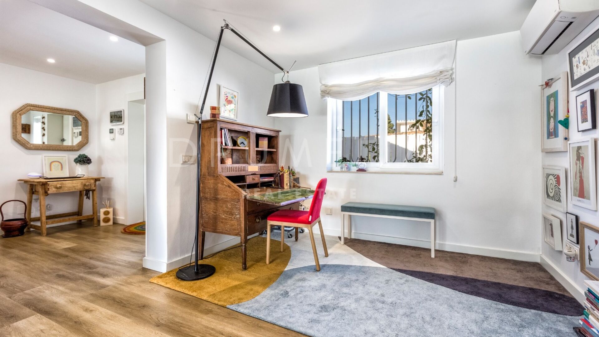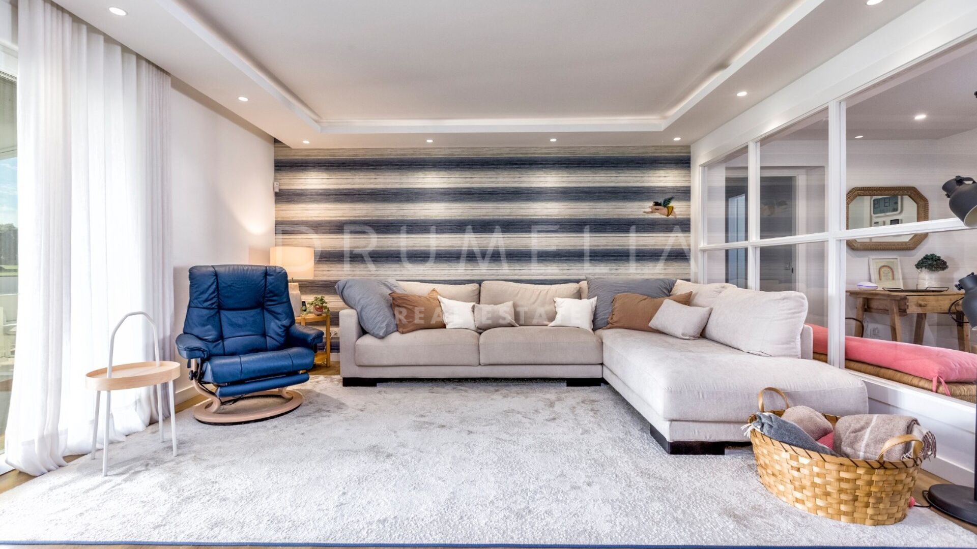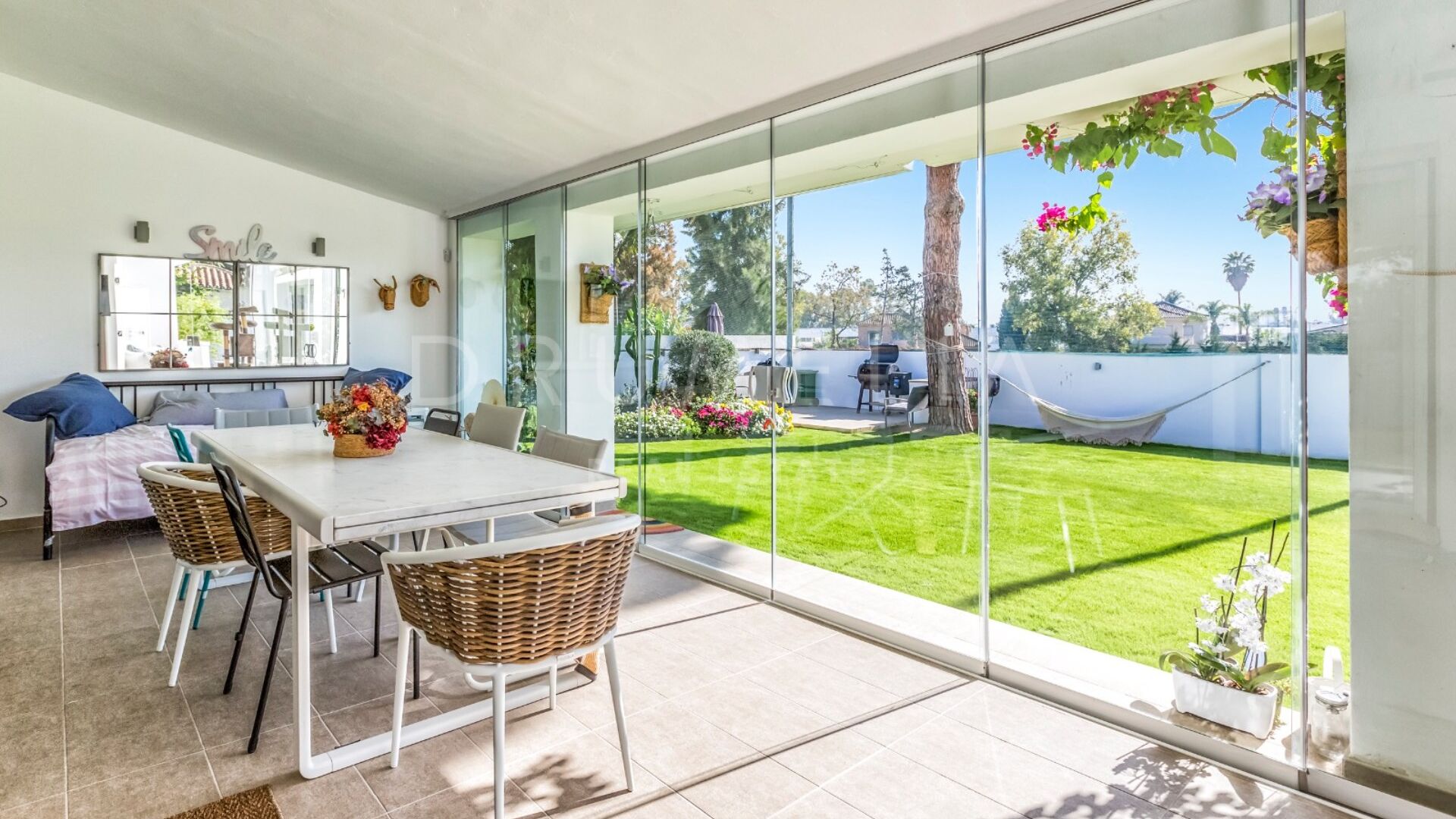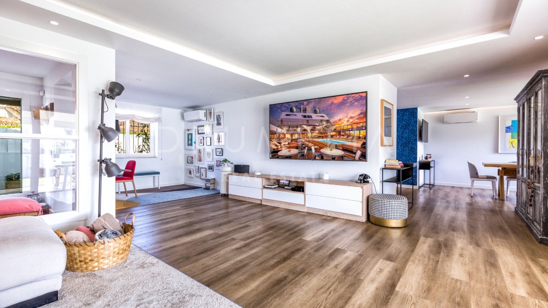 In Guadalmina Alta, San Pedro, wird eine renovierte Luxusvilla mit 4 Schlafzimmern und herrlichem Blick auf den Golfplatz zum Verkauf angeboten. Dies ist eine der begehrtesten Gegenden von Marbella. Ideal an der Westseite von Marbella gelegen, ist die ruhige Gemeinde eine Welt entfernt vom Lärm und Stress der touristischen Gebiete. Gleichzeitig befindet sie sich in unmittelbarer Nähe zu allen Dienstleistungen und Annehmlichkeiten, nur eine kurze Strecke vom Zentrum von San Pedro entfernt, einen kurzen Spaziergang vom mit der Blauen Flagge ausgezeichneten Strand entfernt und nur wenige Autominuten vom legendären Puerto Banús entfernt. In der Nähe befinden sich auch die luxuriösen Einrichtungen des Guadalmina Spa & Golf Resort, Chiringuitos und gute Restaurants, Geschäfte, internationale Schulen, medizinische Einrichtungen, historische Schutzgebiete usw. Guadalmina bietet wunderschöne Ausblicke auf die Golfplätze, das Mittelmeer und das Wahrzeichen von Marbella, La Concha, das stolz 1.270 m über der Stadt thront.