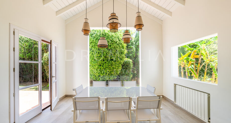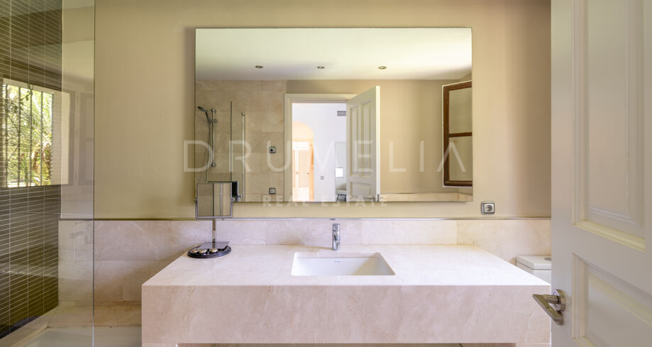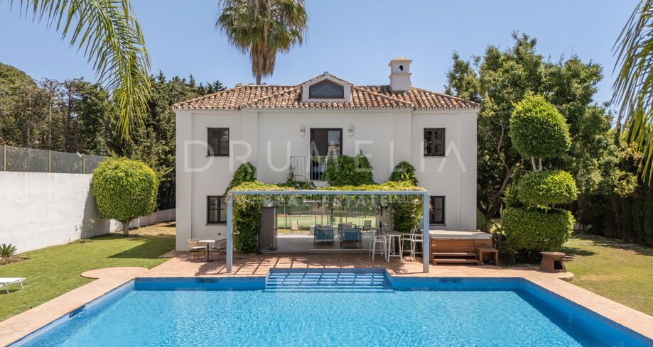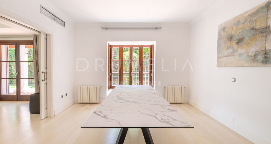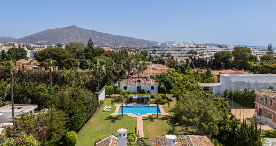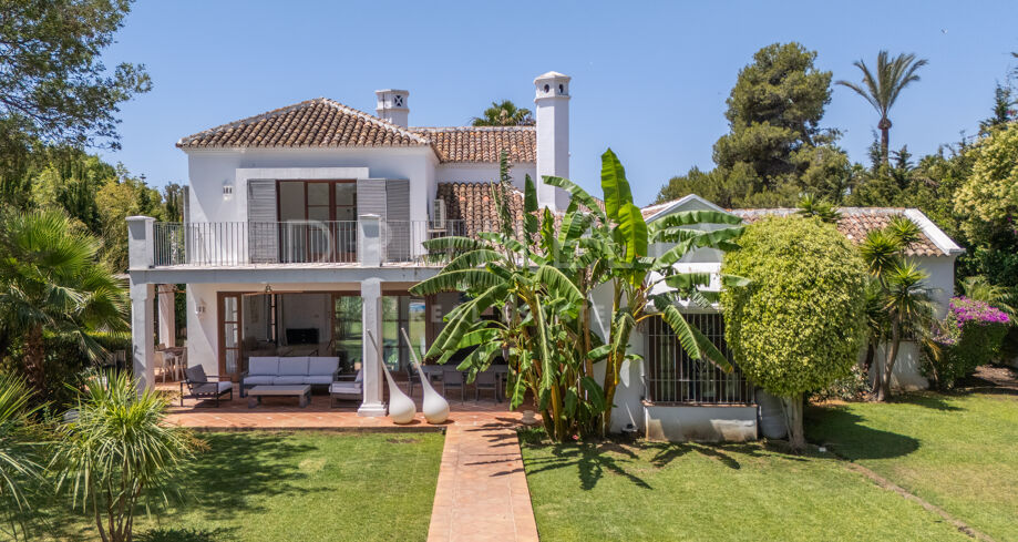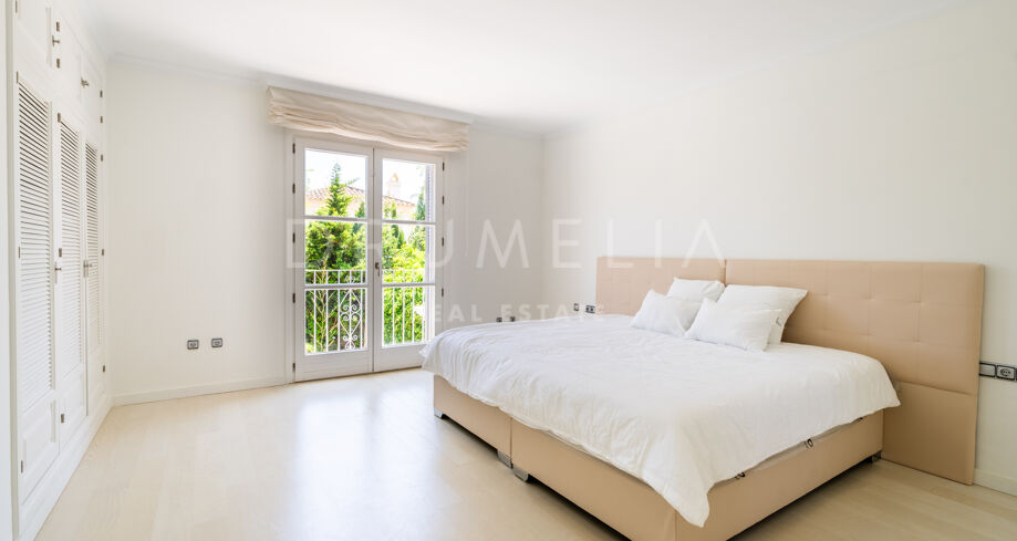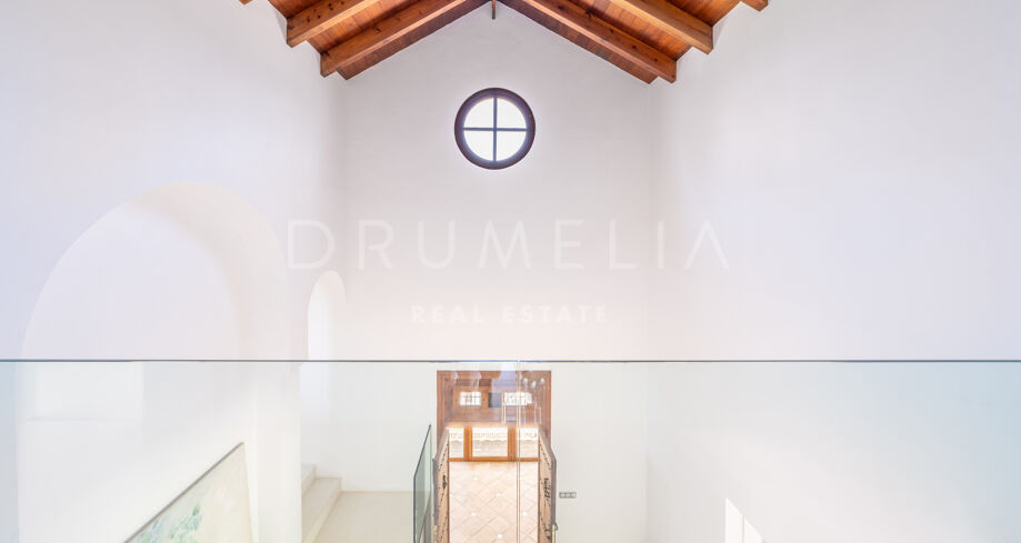 Traditioneller Luxus findet sich in jeder Ecke dieses 2-stöckigen, nach Süden ausgerichteten Anwesens mit ruhigem Blick auf die malerische Umgebung und wunderschönem Innen- und Außendesign. Auf einem großzügigen Grundstück von 3.374 m² mit Ein- und Ausfahrt verfügt das 750 m² große Haus über einen eleganten Wohnbereich mit Kaminsalon und direktem Zugang zum malerischen Garten, 5 Schlafzimmer (einige mit eigenem Balkon), 8 herrliche moderne Badezimmer und 1 Gäste-WC. Die exzellente, moderne Küche ist top ausgestattet und verfügt über eine raffinierte, moderne Beleuchtungslösung. Die fabelhafte Immobilie hat definitiv eine starke Persönlichkeit und der Außenbereich trägt zu ihrem einzigartigen Charakter bei. Wunderschöne Balkone und Terrassen laden zum Essen im Freien und zum Entspannen ein. Der andalusische Innenhof ist mit Terrakottafliesen, einer traditionellen Bank, einem Springbrunnen und Zitrusbäumen ausgestattet. Es gibt Wasserobjekte, Pergolen, einen parkähnlichen subtropischen Landschaftsgarten mit grünen Rasenflächen, alten Palmen und blühenden Blumenbeeten, einen imposanten Swimmingpool und einen Tennisplatz. Es gibt ein separates Gästeapartment und eine private Garage mit 2 Stellplätzen.