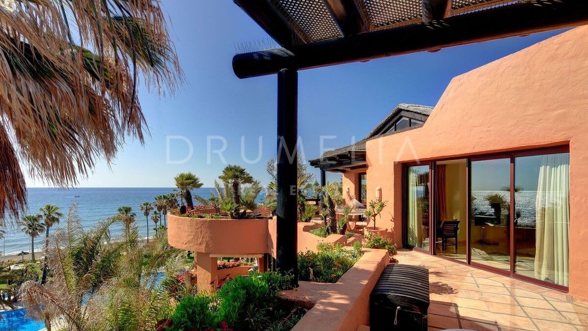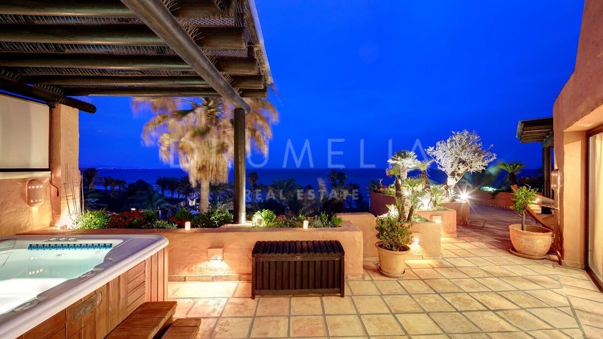 Im Außenbereich genießen Sie den mediterranen Lebensstil in vollen Zügen. Mehrere Loungebereiche, ein privater Whirlpool und ein Essbereich mit Grill sorgen für ein einzigartiges Ambiente zum Entspannen und Genießen. Eigentümer profitieren von den exklusiven 5-Sterne-Serviceleistungen des Kempinski Hotels, darunter tropische Gärten, Pools, ein erstklassiges Spa und Fitnesscenter, Michelin-Restaurants und persönlicher Concierge-Service. Nur wenige Minuten vom lebendigen Zentrum Esteponas und eine kurze Fahrt von Puerto Banús entfernt, bietet dieses Penthouse eine seltene Gelegenheit für luxuriöses Wohnen an der Costa del Sol.