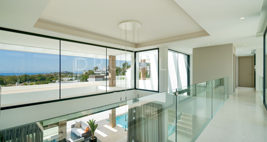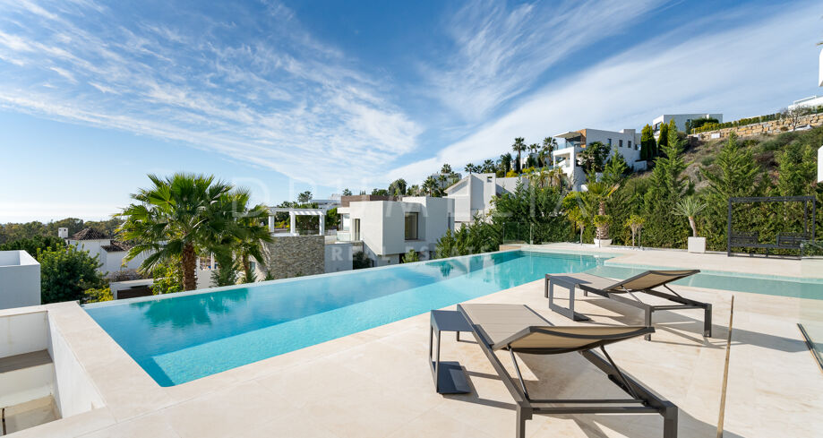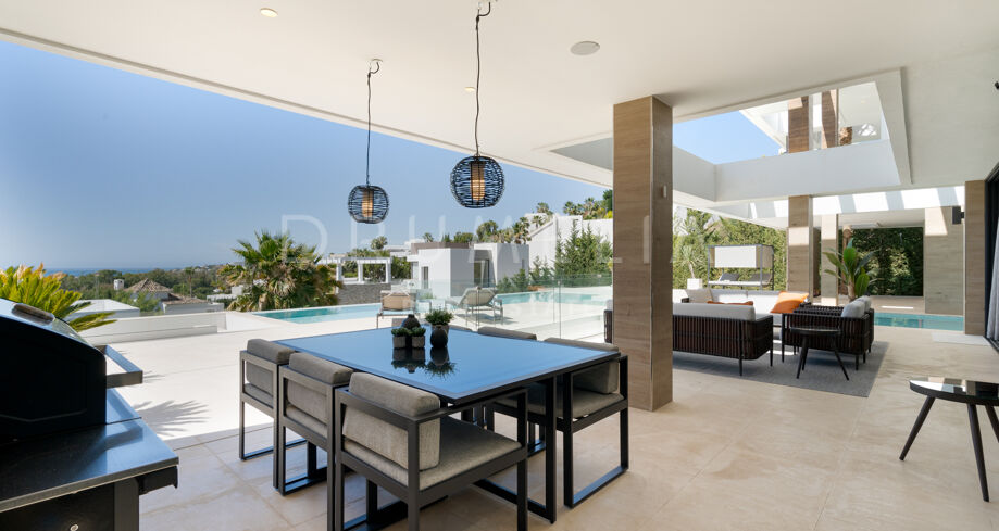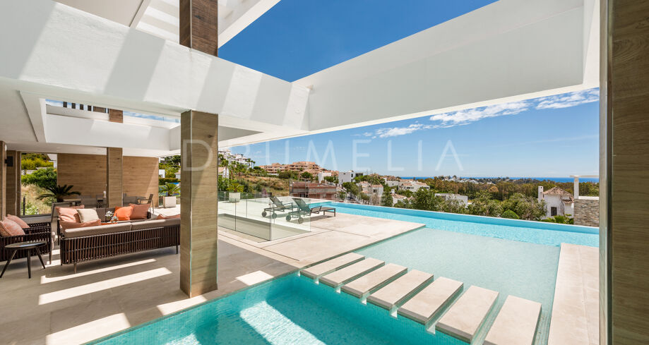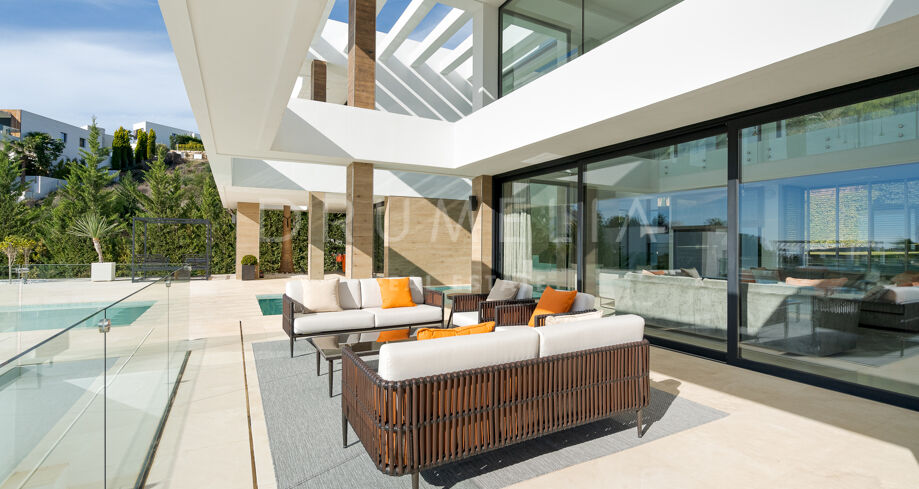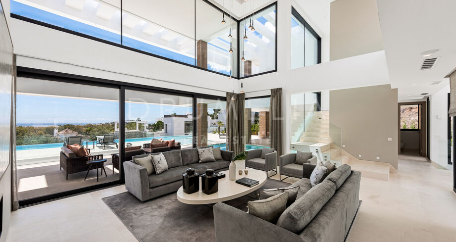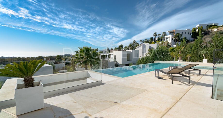 Moderne Villa mit Panoramablick auf das Meer in La Alquería, Benahavís
