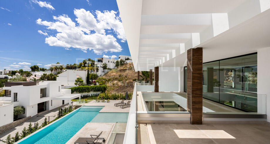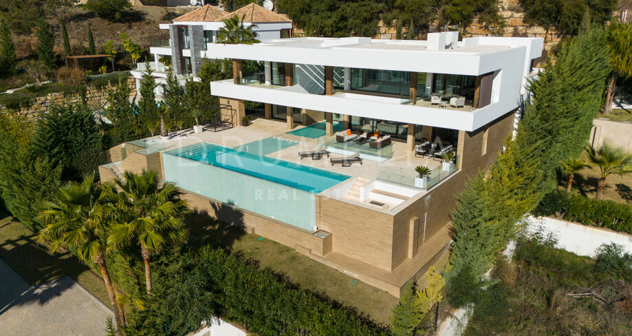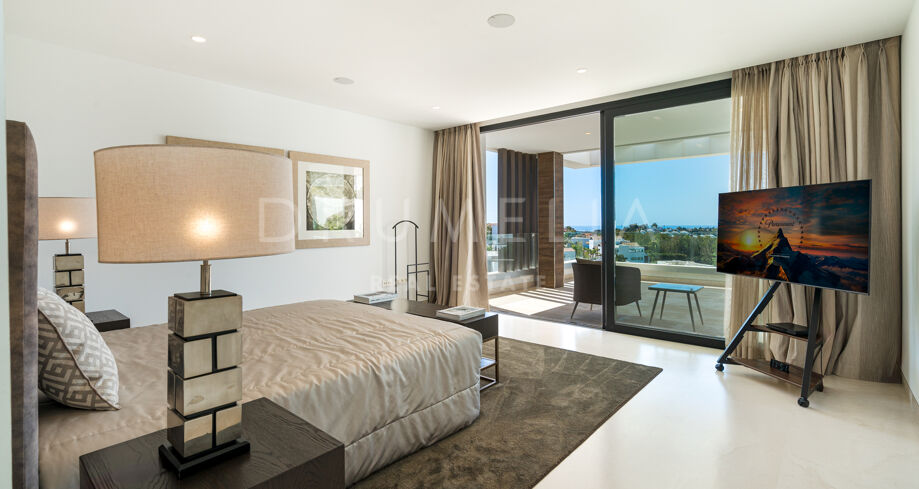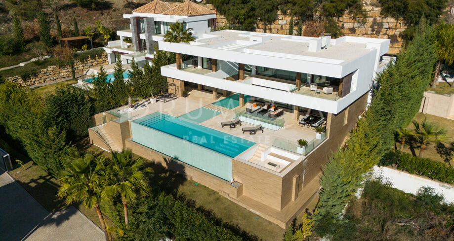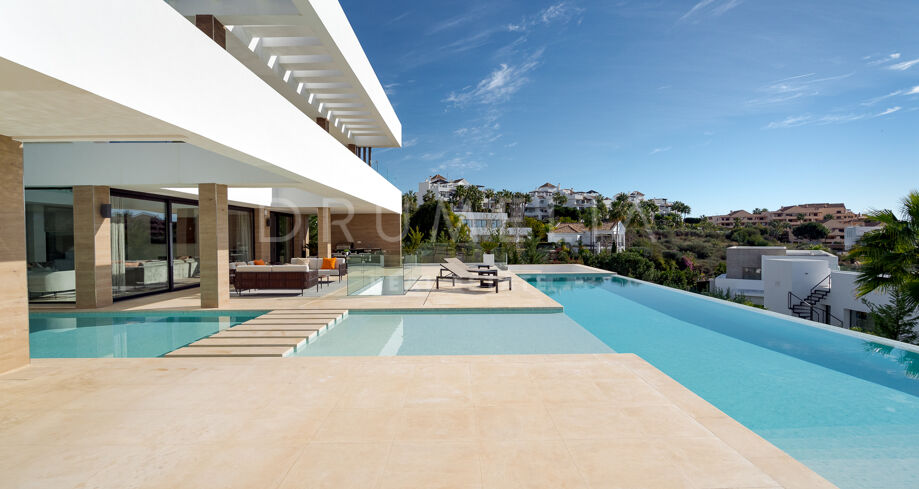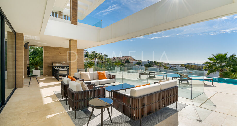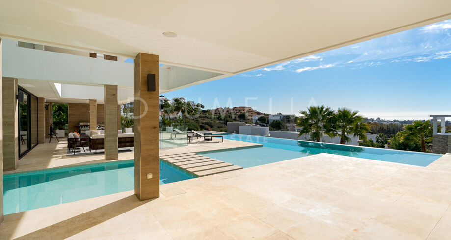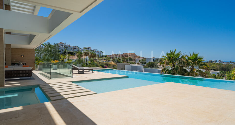 Moderne Villa mit Panoramablick auf das Meer in La Alquería, Benahavís