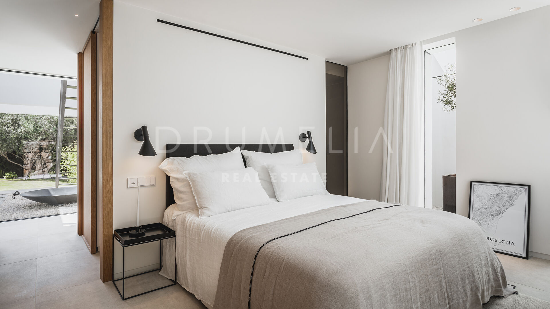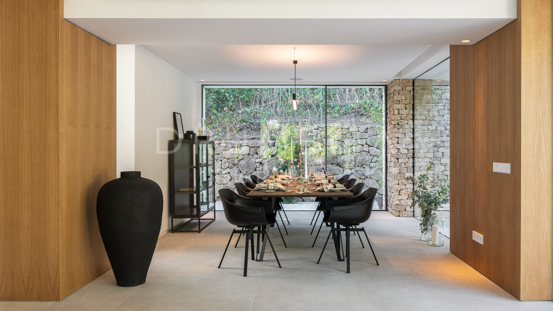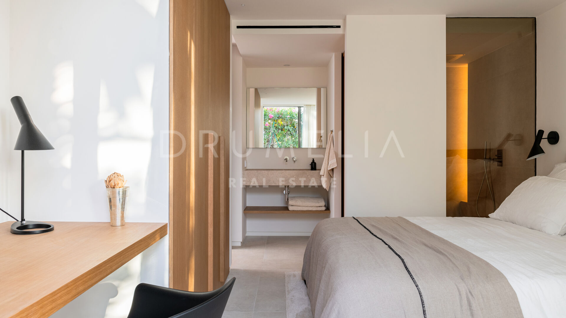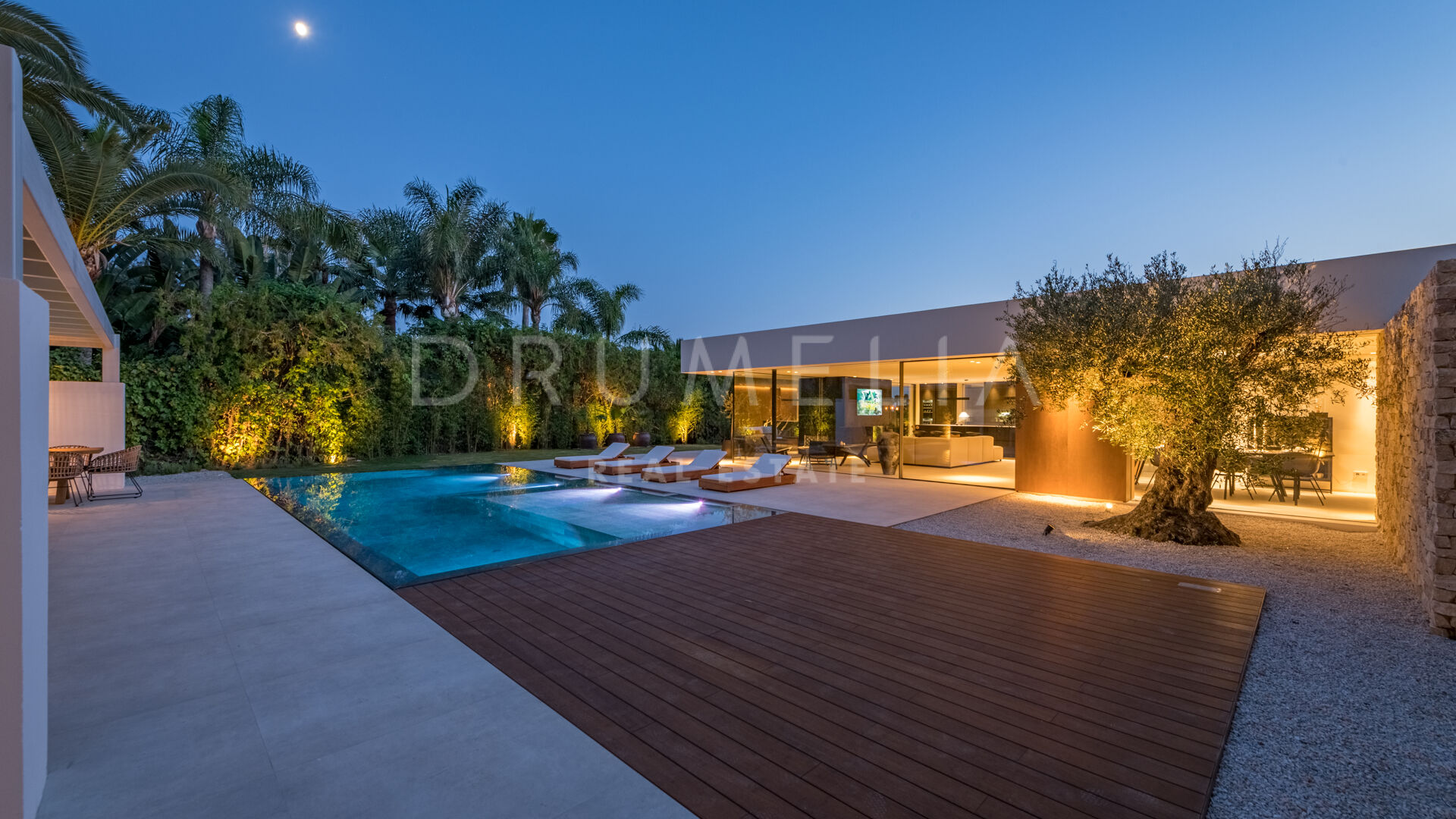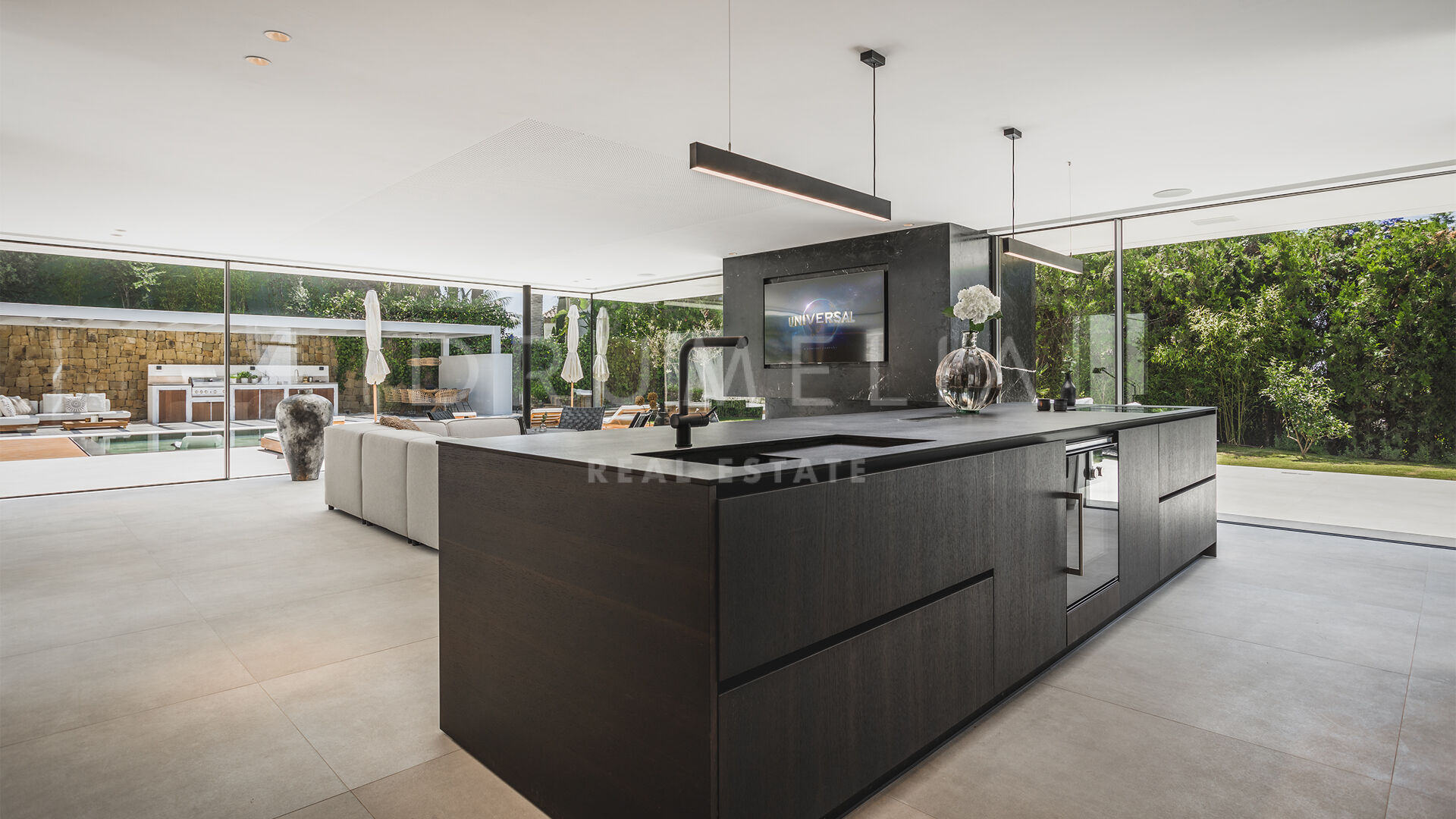 Das ultramoderne Projekt wurde von N-MOBE Architecture & Interior Design, Marbella, entworfen, die für ihre Fähigkeit bekannt sind, qualitativ hochwertige Villen zu entwickeln oder zu renovieren, die den aktuellen Standards entsprechen. Diese exquisite, sehr private Villa wurde von der modernen ibizenkischen Architektur inspiriert. Auf einem Grundstück von 1.202 m² verteilt sich das Haus mit 660 m² auf einer Ebene und bietet offene Wohnbereiche mit bodentiefen Fenstern und Glaswänden, die das Haus mit natürlichem Tageslicht durchfluten und die Innenräume mit den Außenbereichen verbinden, die von Natursteinmauern und üppiger Vegetation umgeben sind.