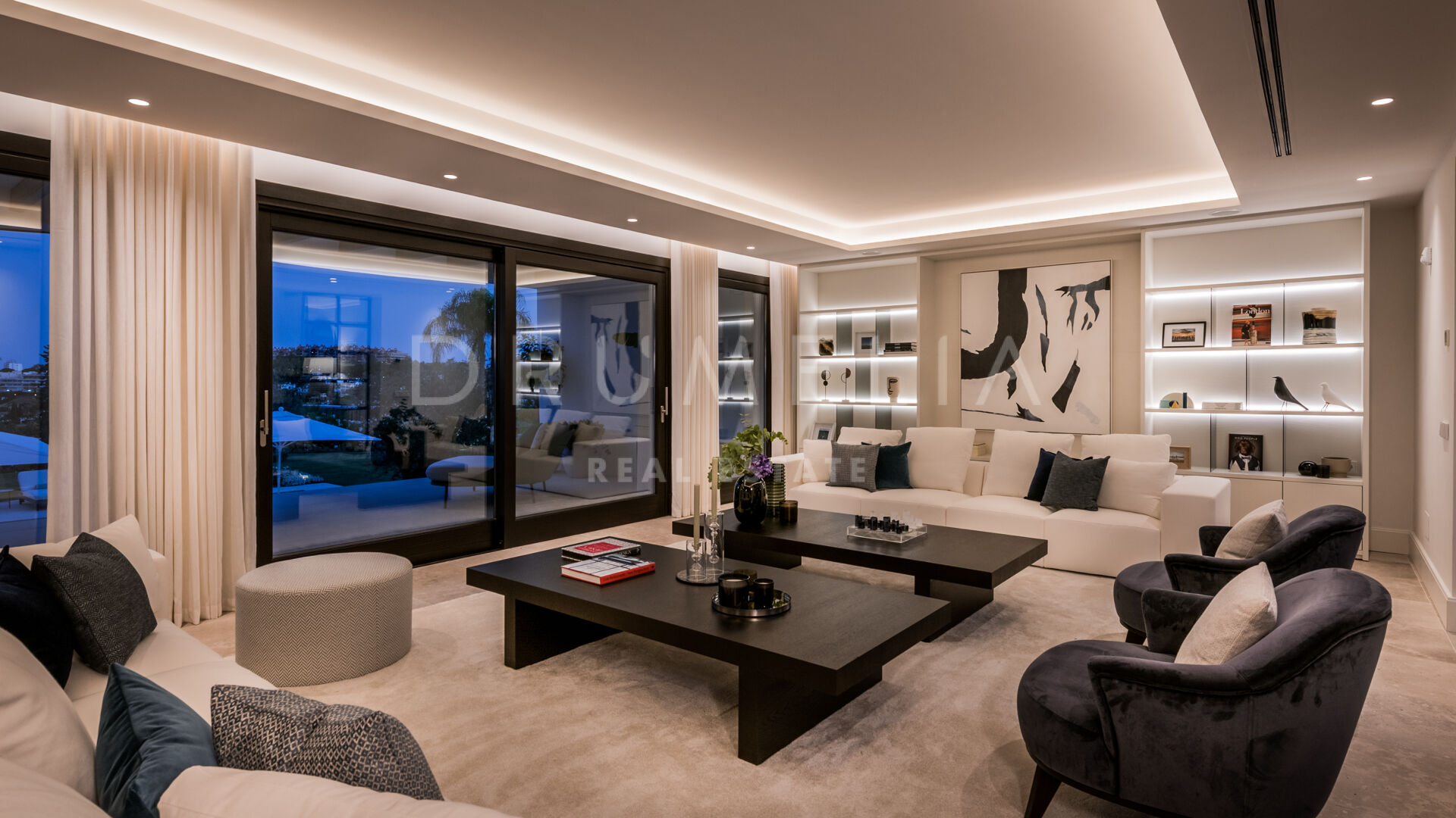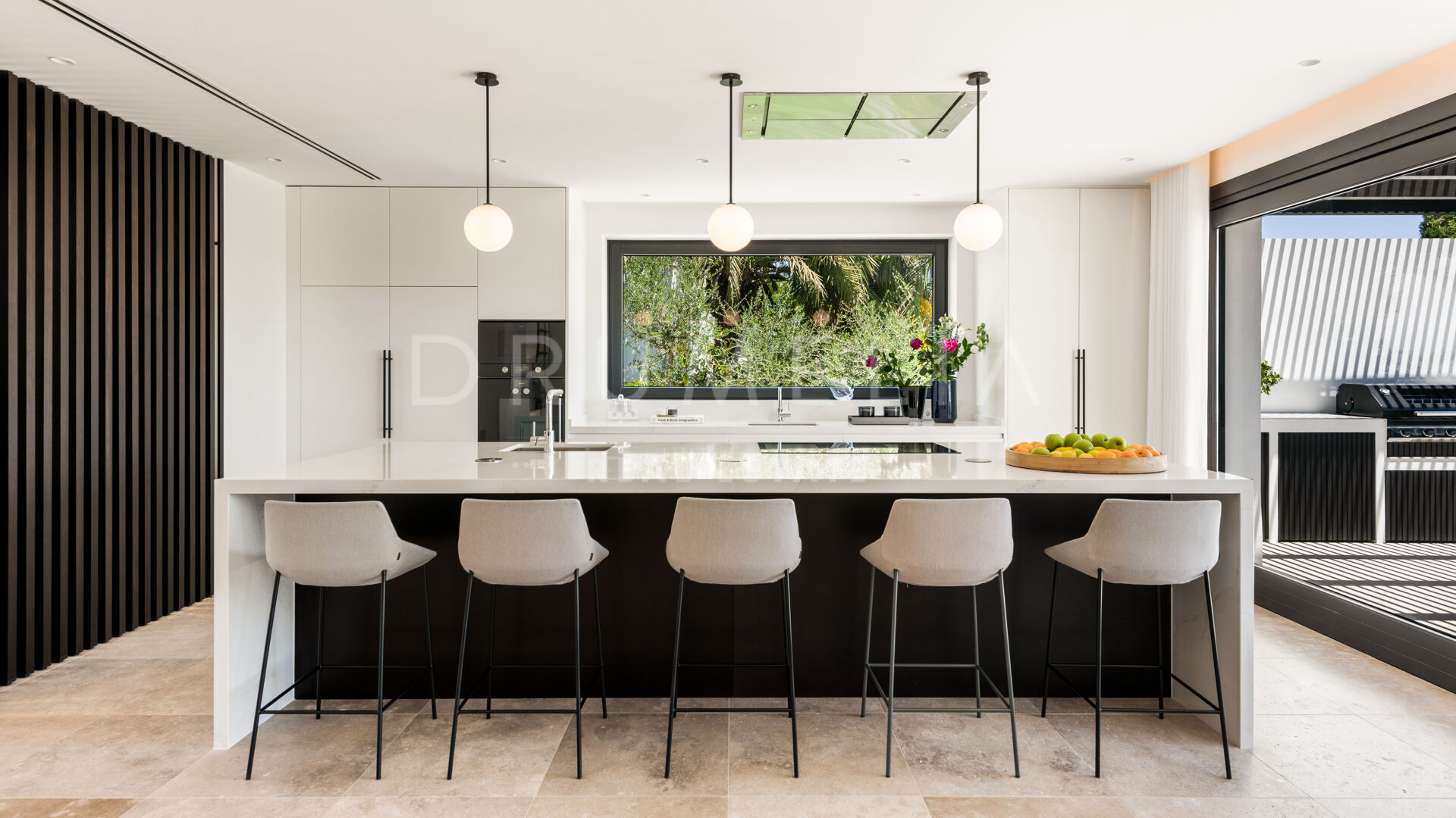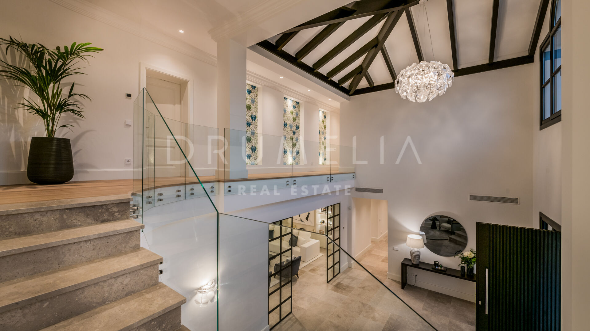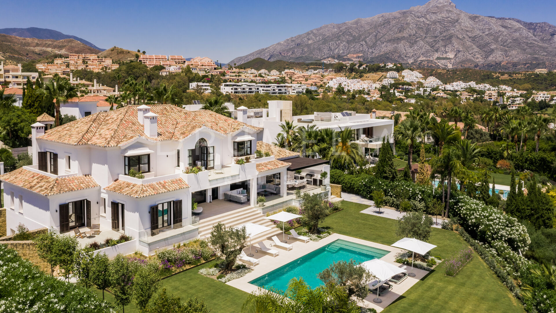 Diese prächtige Luxusvilla mit herausragenden Qualitäten bietet Ihnen einen Lebensstil von außergewöhnlichem Komfort aufgrund ihrer hervorragenden Lage in der renommierten Gemeinde La Cerquilla, Nueva Andalucia, den höchsten Standards, Größe, spektakuläre Architektur, elegante moderne Innenräume und Komfort. Kürzlich komplett reformiert mit besonderem Augenmerk auf Qualität zu einem sehr hohen Standard, ist das atemberaubende Anwesen von 946 m² auf einem großen malerischen Grundstück von 2.778 m² in der obersten Straße von La Cerquilla mit herrlichem Panoramablick über das Golf-Tal in Richtung Mittelmeer gelegen. Die Größe des Hauses und des Grundstücks macht es zu einer der größten verfügbaren Villen in La Cerquilla.