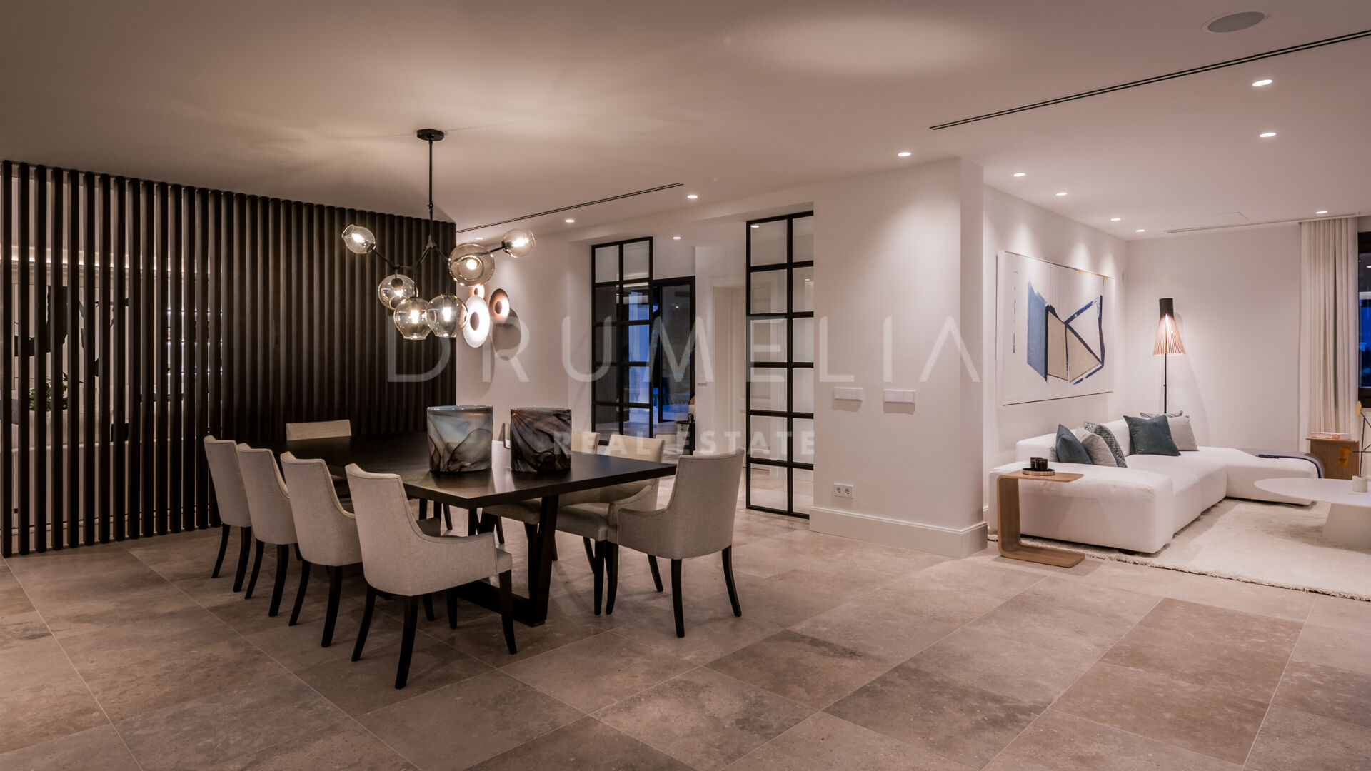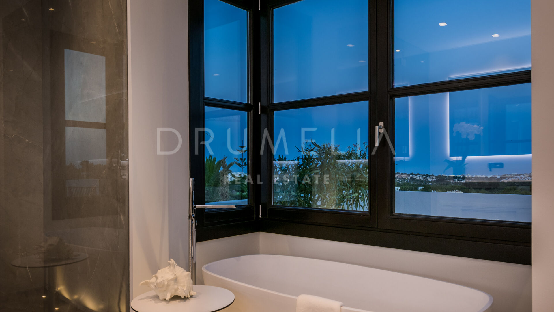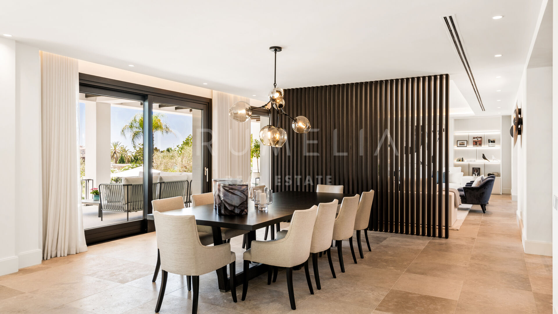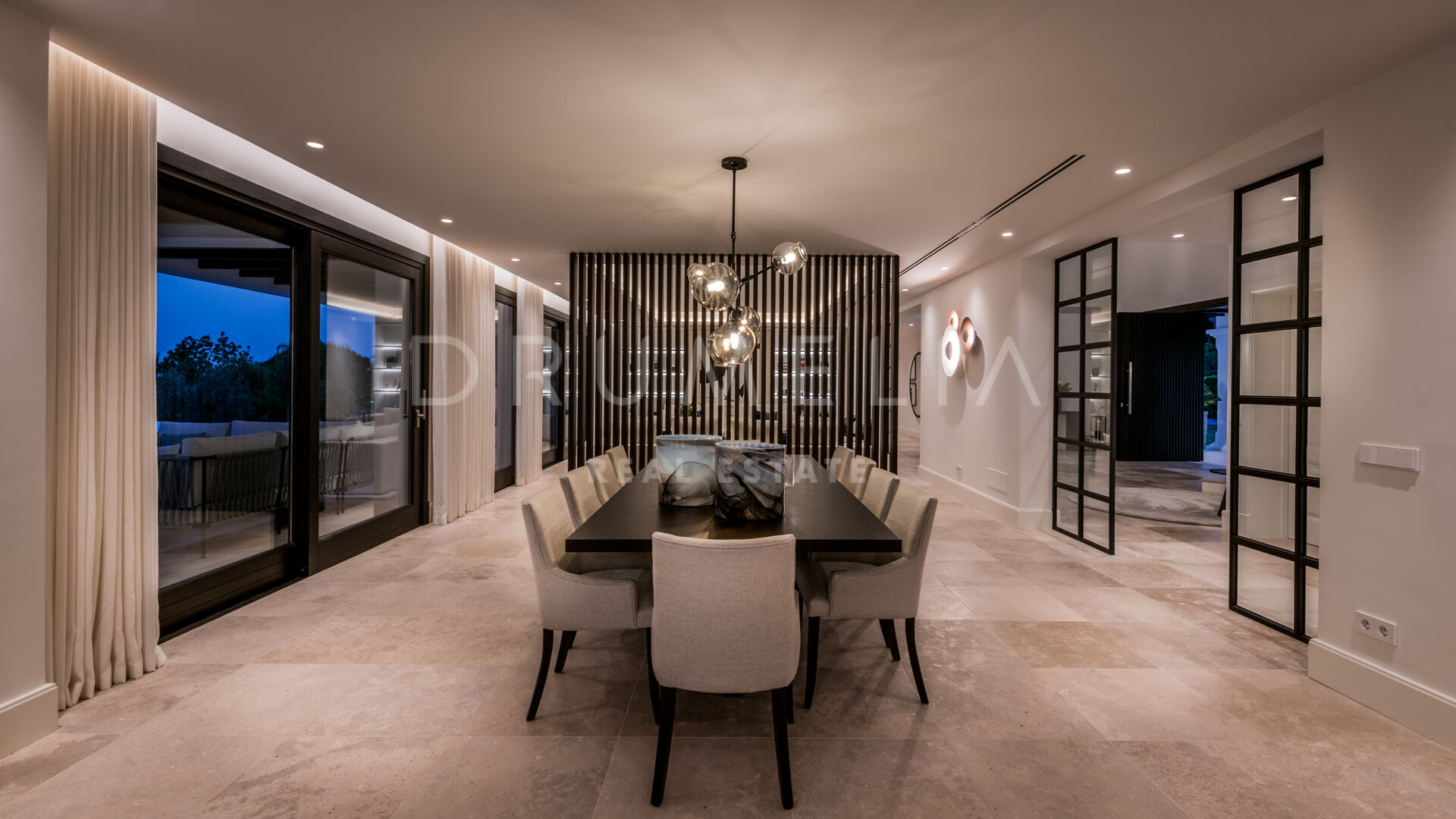 Diese prächtige Luxusvilla mit herausragenden Qualitäten bietet Ihnen einen Lebensstil von außergewöhnlichem Komfort aufgrund ihrer hervorragenden Lage in der renommierten Gemeinde La Cerquilla, Nueva Andalucia, den höchsten Standards, Größe, spektakuläre Architektur, elegante moderne Innenräume und Komfort. Kürzlich komplett reformiert mit besonderem Augenmerk auf Qualität zu einem sehr hohen Standard, ist das atemberaubende Anwesen von 946 m² auf einem großen malerischen Grundstück von 2.778 m² in der obersten Straße von La Cerquilla mit herrlichem Panoramablick über das Golf-Tal in Richtung Mittelmeer gelegen. Die Größe des Hauses und des Grundstücks macht es zu einer der größten verfügbaren Villen in La Cerquilla.