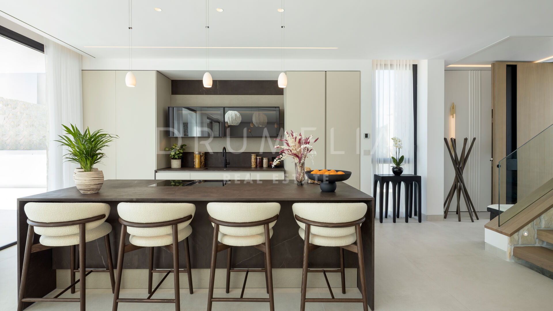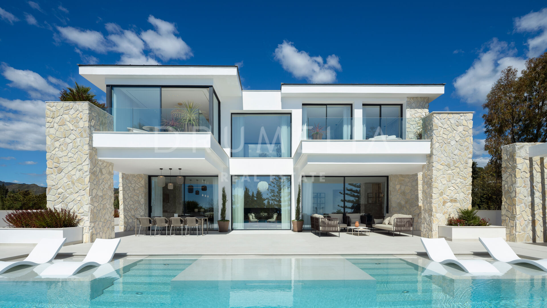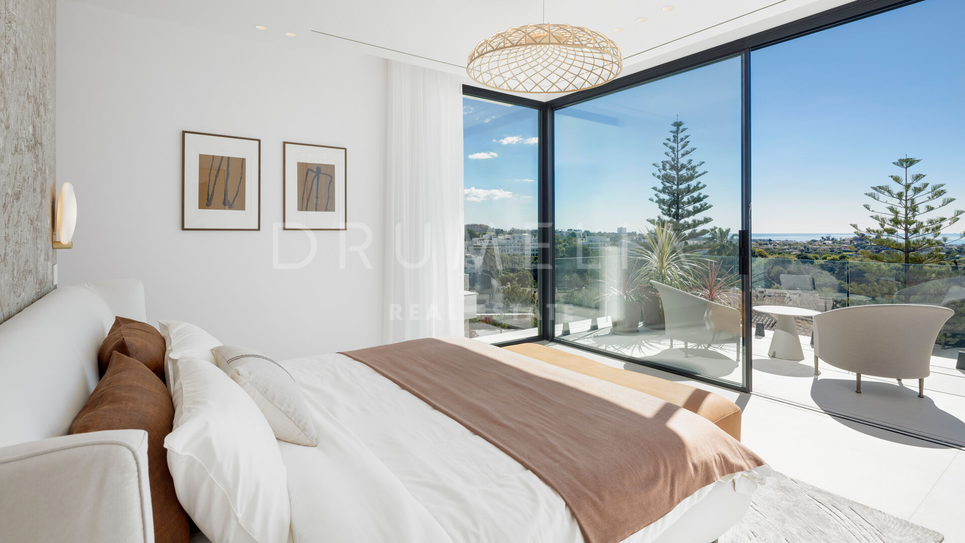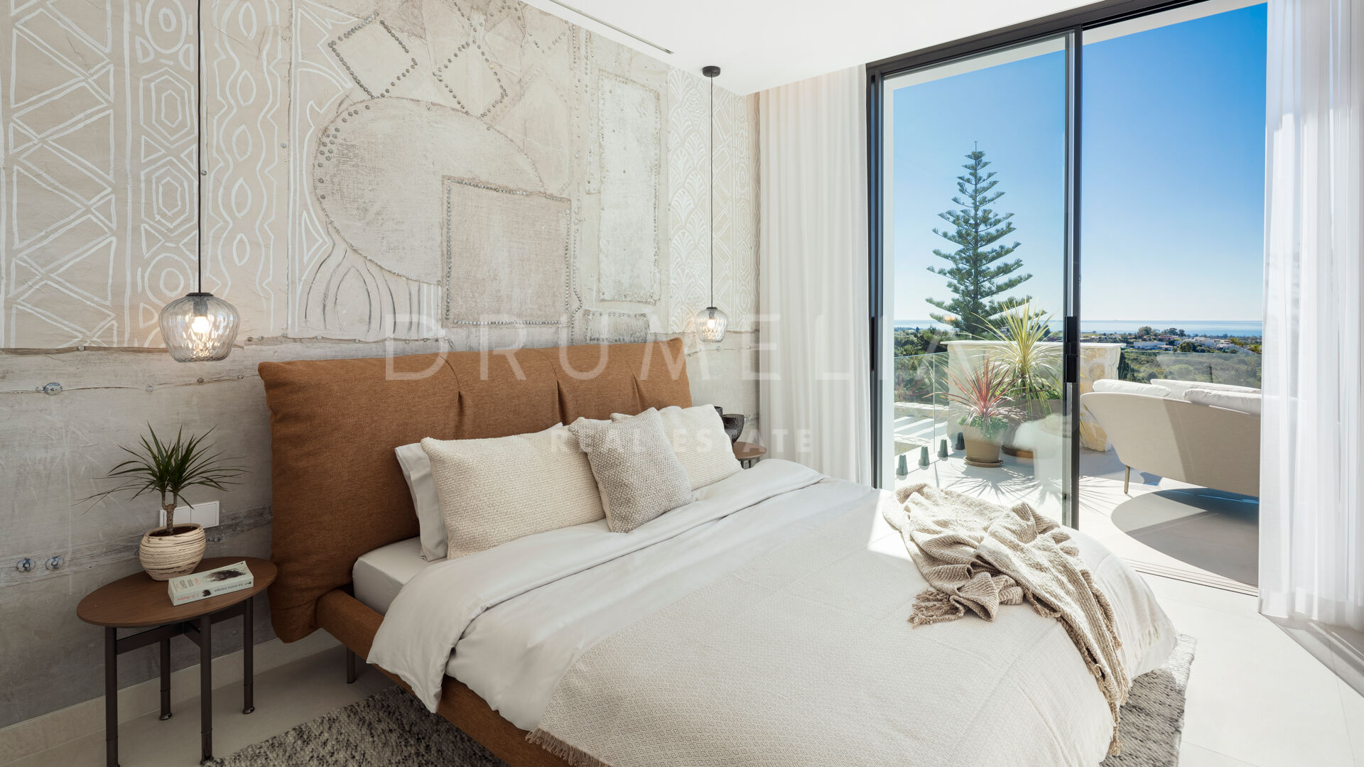 In einer exklusiven Wohnanlage mit nur drei Residenzen gelegen, vereint diese brandneue Villa mit fünf Schlafzimmern moderne Architektur, entspannte Eleganz und einen atemberaubenden Blick auf das Mittelmeer und den Berg La Concha. Mit über 900 m² auf drei Ebenen wurde das Haus für ein nahtloses Indoor-Outdoor-Wohnerlebnis konzipiert – inklusive eines offenen Wohn- und Küchenbereichs von 120 m², der auf südlich ausgerichtete Terrassen, ein Salzwasserpool und eine Außenküche mit Sonnenuntergangsblick führt.
