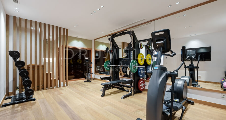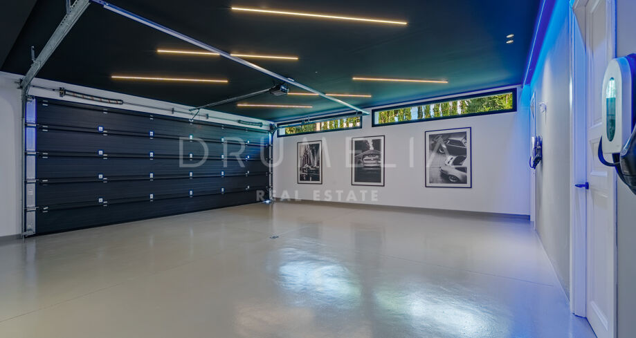 Die untere Ebene ist auf Komfort und Freizeit ausgerichtet und umfasst einen Kinoraum, einen Fitnessbereich, einen Waschraum und eine Garage für mehrere Fahrzeuge sowie Abstell- und Nutzräume. Jeder Teil des Anwesens wurde mit Fokus auf zeitgenössische Architektur, Funktionalität und dezente Eleganz gestaltet.