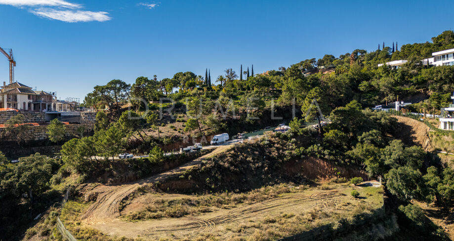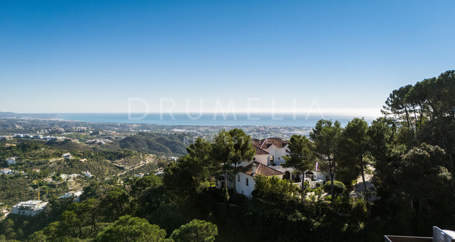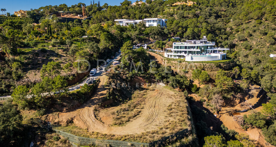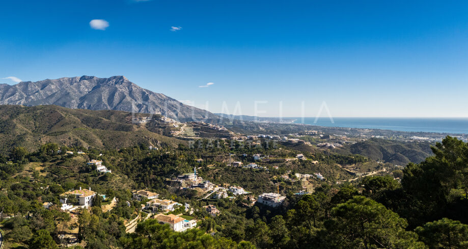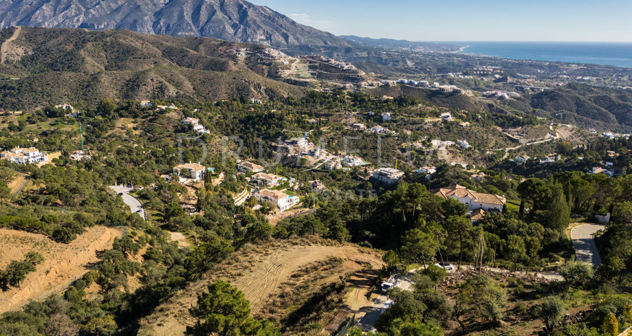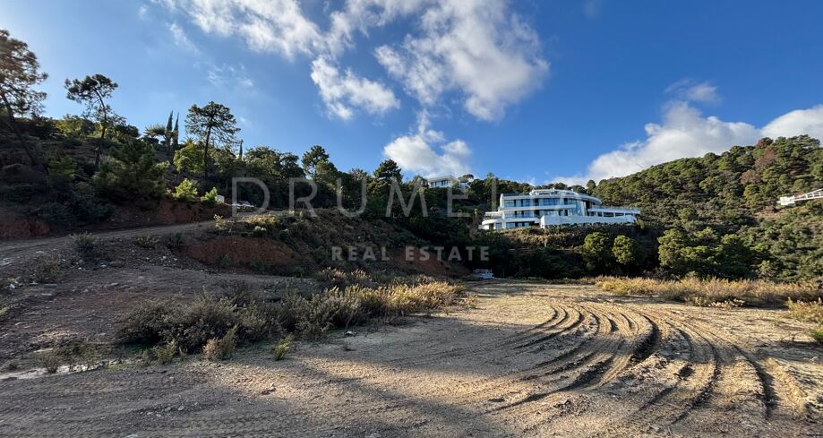 The Net – Ein nach Südosten ausgerichtetes Grundstück mit Projekt in La Zagaleta mit Panoramablick auf Meer und Berge.