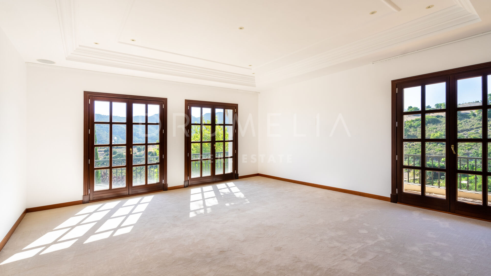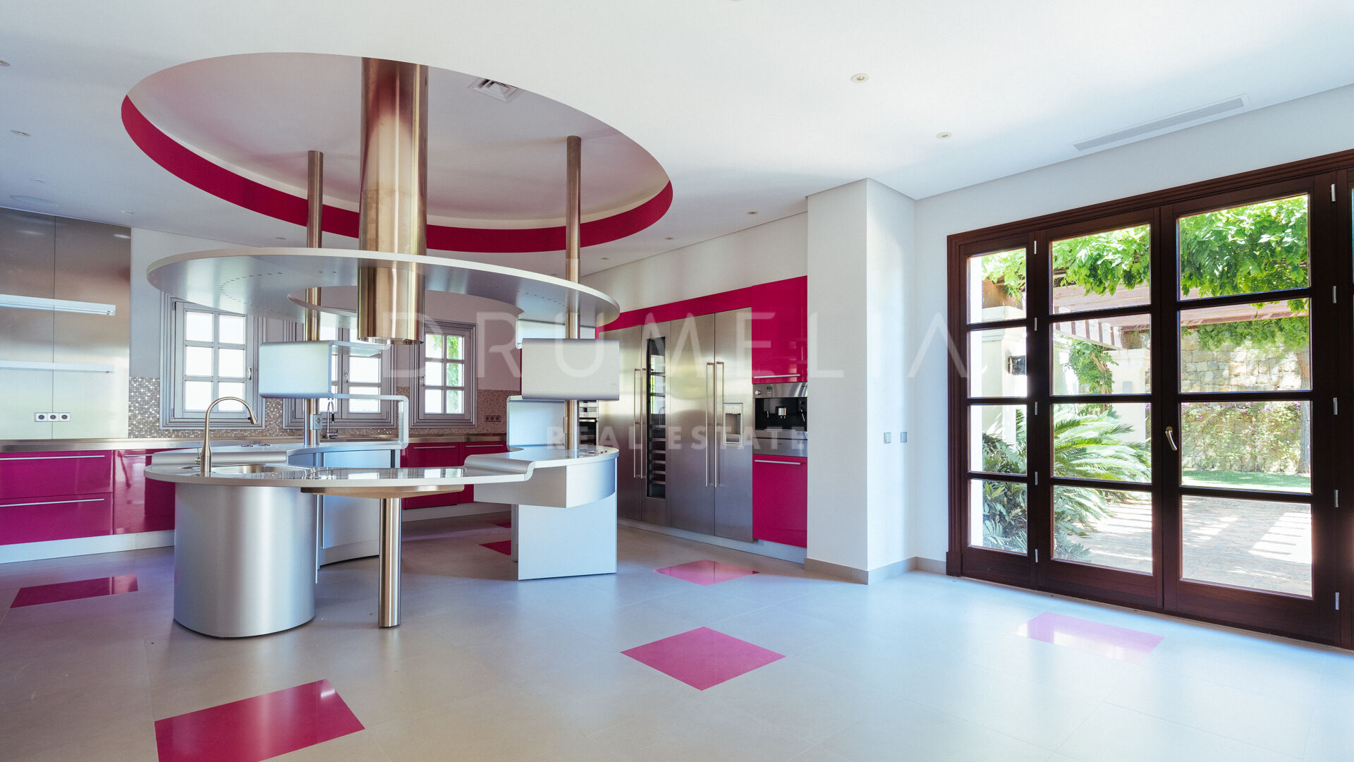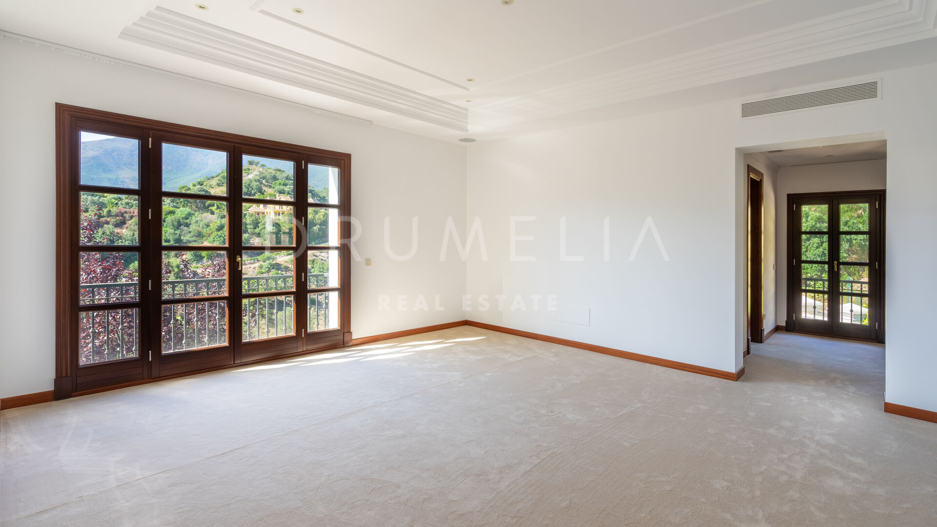 Im unteren Erdgeschoss findest du eine große Edelstahl-Großküche mit professionellen Geräten von Rofar und “stummen Kellnern” im Erd- und Obergeschoss. Die Küche hat sowohl einen separaten Zugang als auch einen Zugang von der Küche im Erdgeschoss – sehr praktisch! Auf dieser Ebene befinden sich eine klimatisierte Weinbodega, ein Spielzimmer, ein Heimkino, ein großer Fitnessraum, eine Sauna, ein türkisches Bad, ein Massageraum, ein großer Waschraum, ein Umkleideraum für das Personal, ein Maschinenraum, ein Lagerraum usw. Im Obergeschoss befinden sich 2 Master-Suiten mit großen Ankleidezimmern, einer Küche, einer privaten Terrasse und großen Badezimmern mit feinstem Marmor, jeweils mit Whirlpool und separater Dusche. Diese Suiten können miteinander verbunden werden, um eine große und private Suite zu schaffen. Es gibt 4 große Gästeschlafzimmer, jedes mit eigenem Bad, Küche und Zugang zur Terrasse.