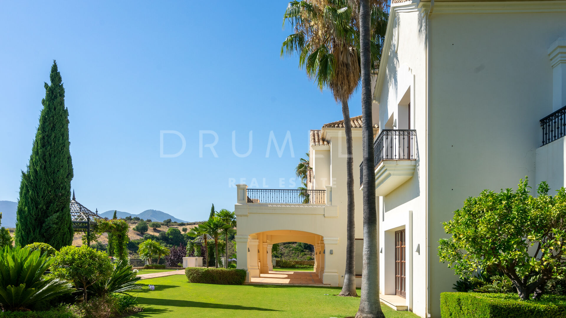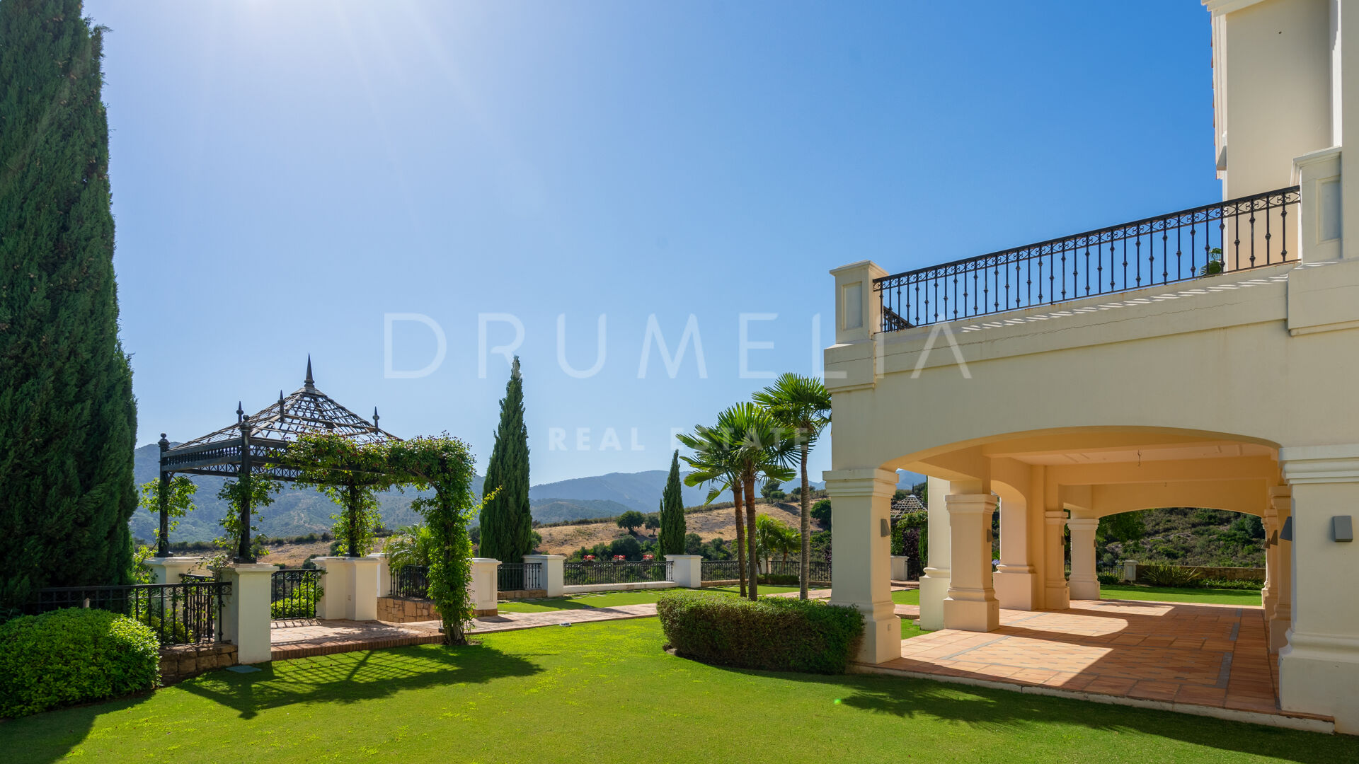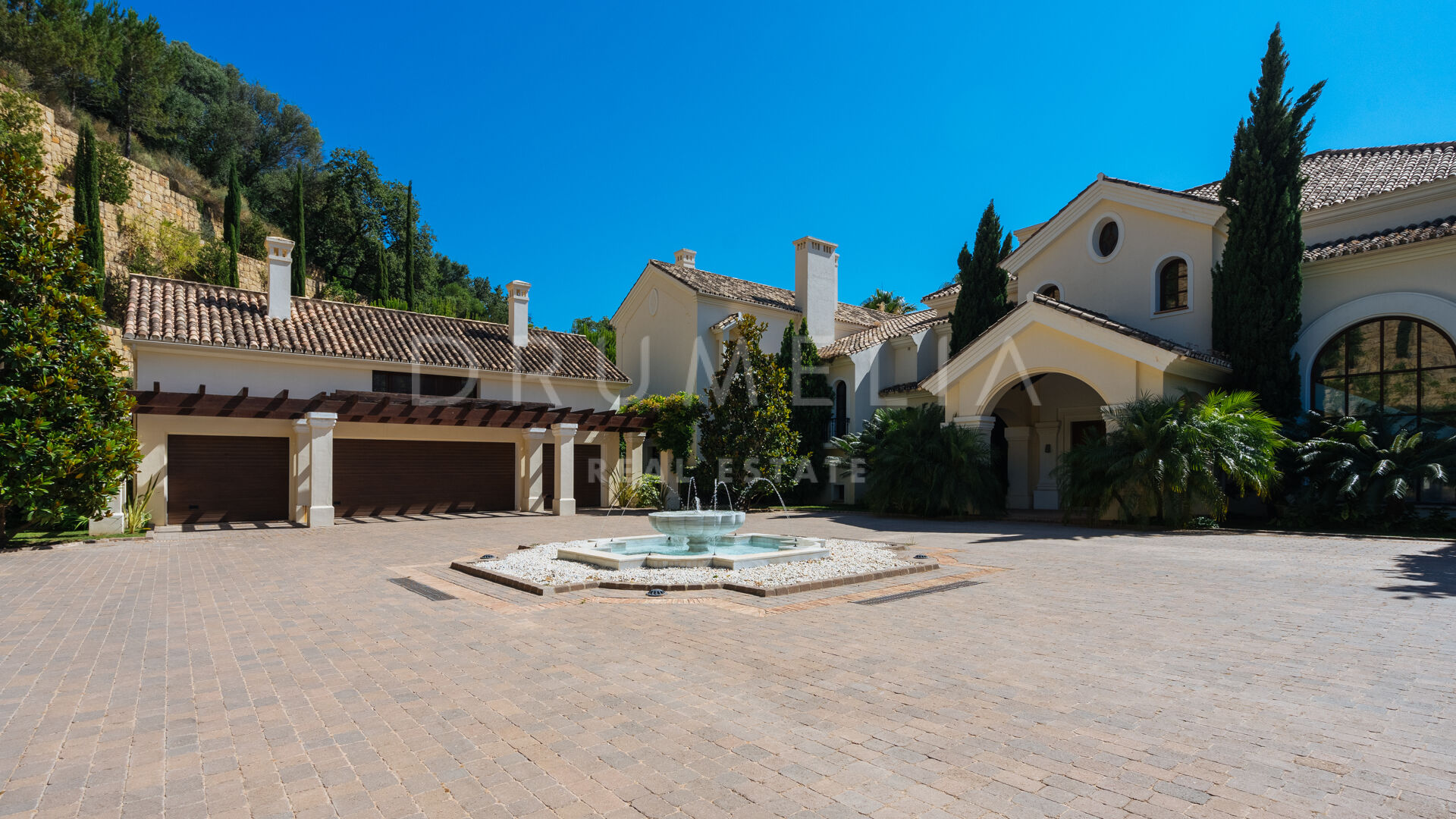 Im Außenbereich laden die 252 m² großen Terrassen, die herrlich angelegten Gärten, der große Swimmingpool, die Lounges, die Sonnenliegen, die Essbereiche im Freien und die Grillplätze dazu ein, die friedliche Aussicht, das beste Klima in Kontinentaleuropa und den herrlichen, exklusiven mediterranen Lebensstil zu genießen. Das mit viel Liebe zum Detail errichtete Luxushaus befindet sich in einem ausgezeichneten Zustand und verfügt über viele luxuriöse und moderne Ausstattungsmerkmale. Es verfügt über einen Kamin, Marmorböden und eine individuelle Fußbodenheizung, ein Hausautomatisierungssystem, eine Klimaanlage (warm und kalt), ein zentrales Musik- und Mediensystem im ganzen Haus, französische Türen, Einbauschränke, Doppelverglasung, einen behindertengerechten Zugang, usw. Ein Aufzug verbindet alle Etagen miteinander. Eine große Garage bietet Platz für 4 Autos. Überwachungskameras, ein Pförtner, ein 24-Stunden-Sicherheitsdienst und ein streng kontrollierter Zugang zur Gated Community geben dir ein Gefühl der Sicherheit.