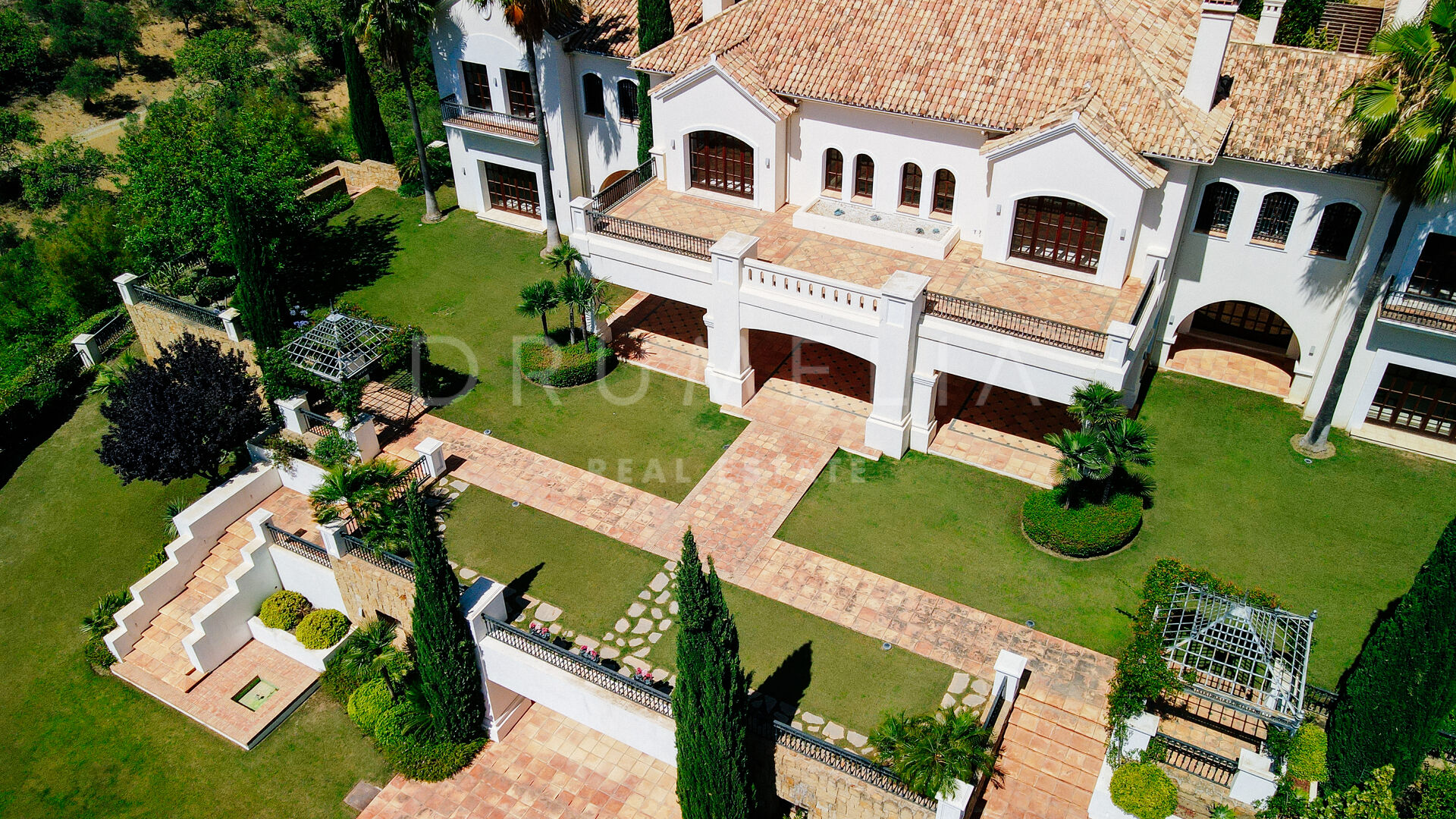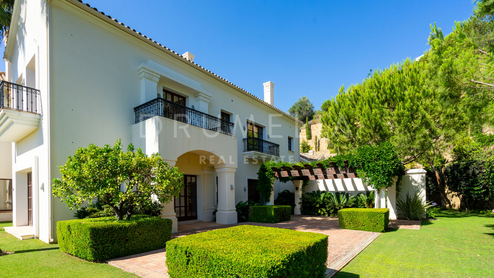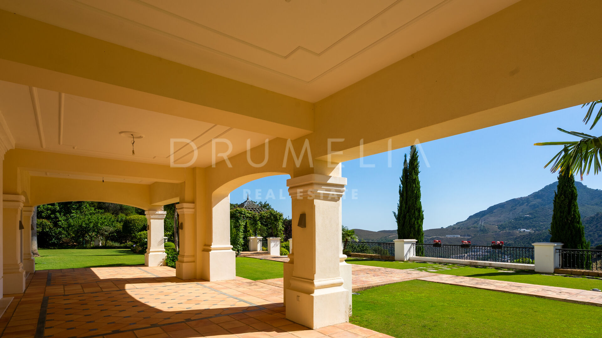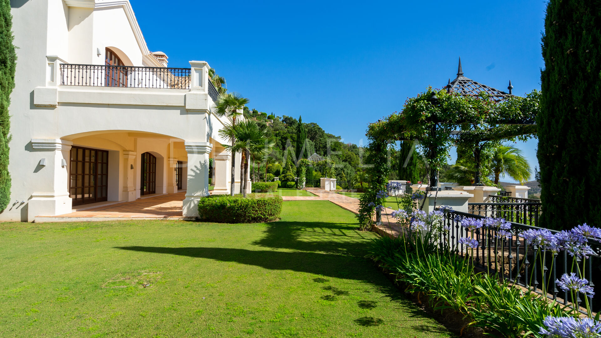 Im Außenbereich laden die 252 m² großen Terrassen, die herrlich angelegten Gärten, der große Swimmingpool, die Lounges, die Sonnenliegen, die Essbereiche im Freien und die Grillplätze dazu ein, die friedliche Aussicht, das beste Klima in Kontinentaleuropa und den herrlichen, exklusiven mediterranen Lebensstil zu genießen. Das mit viel Liebe zum Detail errichtete Luxushaus befindet sich in einem ausgezeichneten Zustand und verfügt über viele luxuriöse und moderne Ausstattungsmerkmale. Es verfügt über einen Kamin, Marmorböden und eine individuelle Fußbodenheizung, ein Hausautomatisierungssystem, eine Klimaanlage (warm und kalt), ein zentrales Musik- und Mediensystem im ganzen Haus, französische Türen, Einbauschränke, Doppelverglasung, einen behindertengerechten Zugang, usw. Ein Aufzug verbindet alle Etagen miteinander. Eine große Garage bietet Platz für 4 Autos. Überwachungskameras, ein Pförtner, ein 24-Stunden-Sicherheitsdienst und ein streng kontrollierter Zugang zur Gated Community geben dir ein Gefühl der Sicherheit.