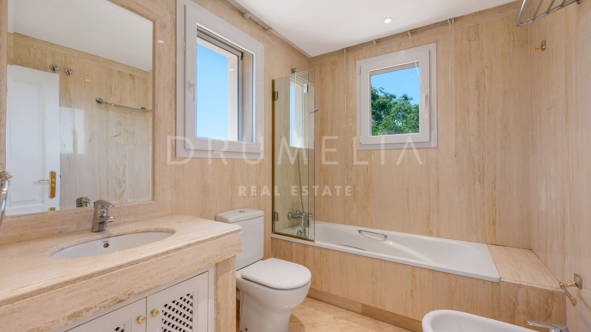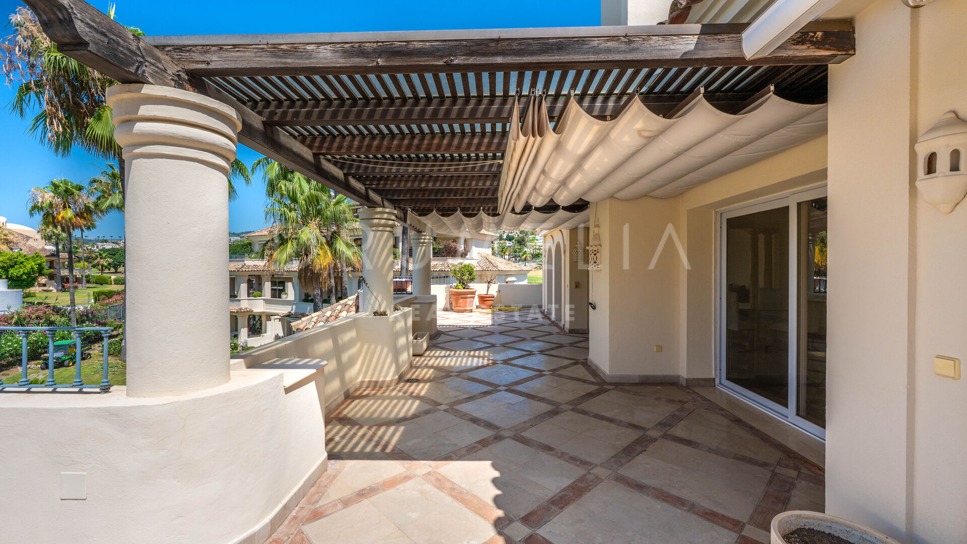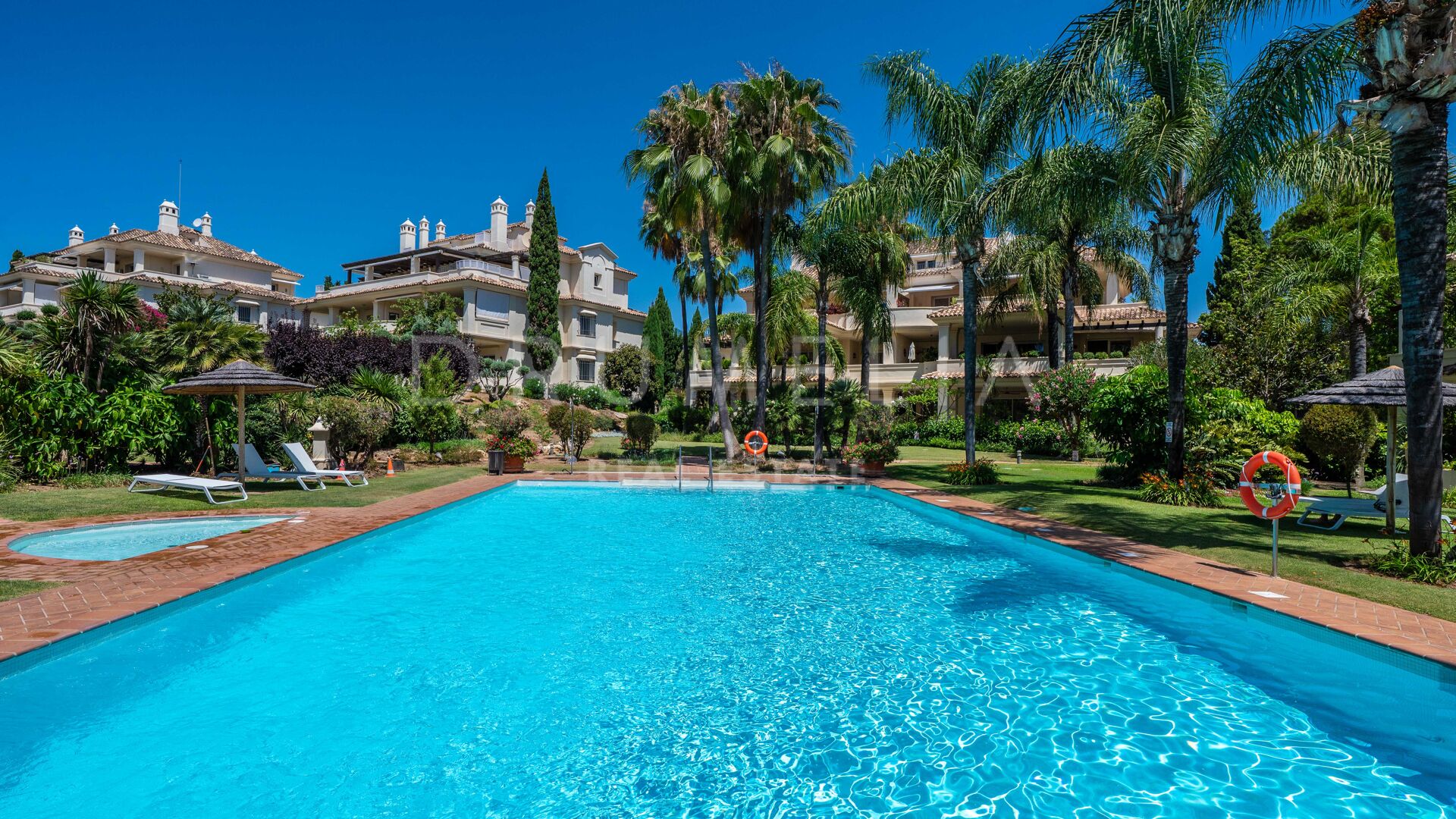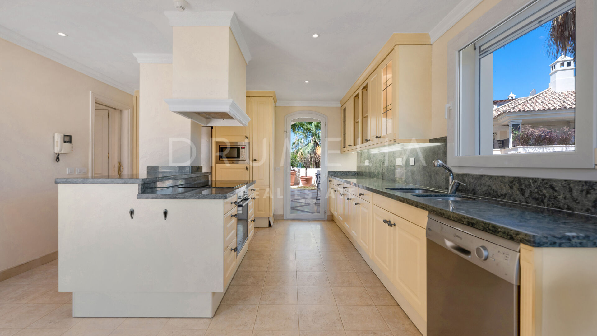 Entdecken Sie dieses außergewöhnliche 3-Schlafzimmer-Duplex-Penthouse zum Verkauf in der renommierten, abgeschlossenen Wohnanlage Las Alamandas in Nueva Andalucía. Perfekt gelegen zwischen den ikonischen Golfplätzen Los Naranjos und Las Brisas und nur wenige Minuten vom weltberühmten Puerto Banús entfernt, vereint diese Residenz Eleganz, Privatsphäre und Sicherheit an einer der begehrtesten Adressen Marbellas.