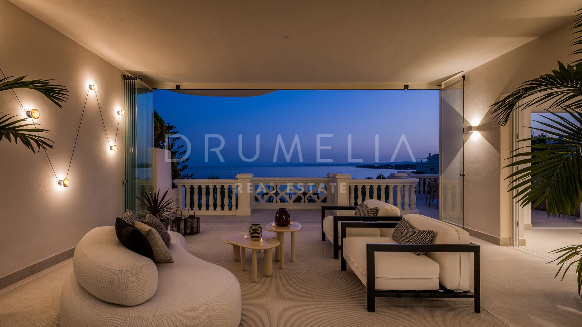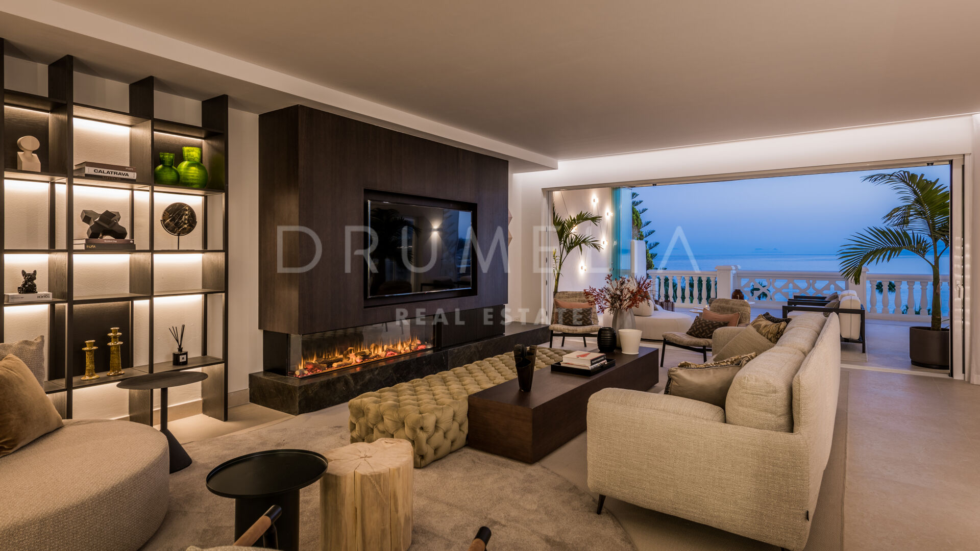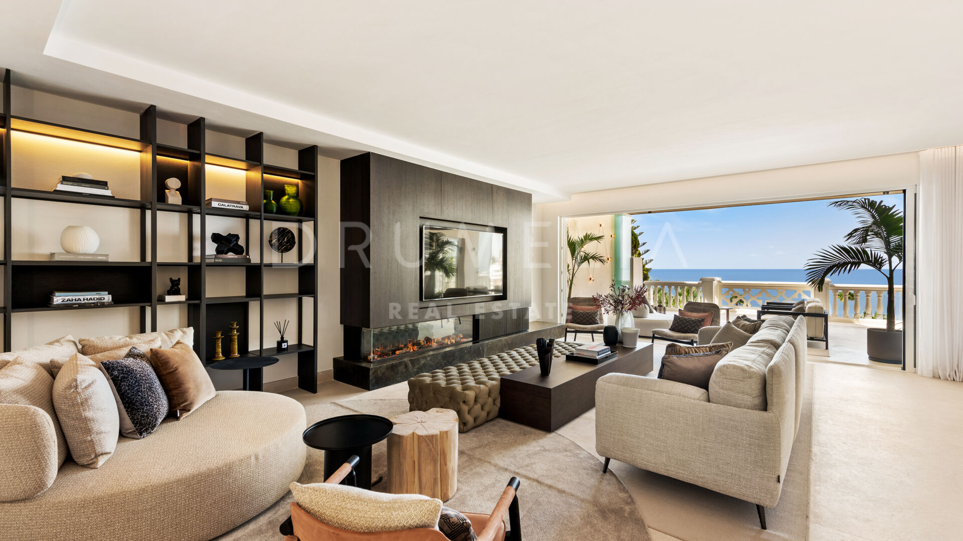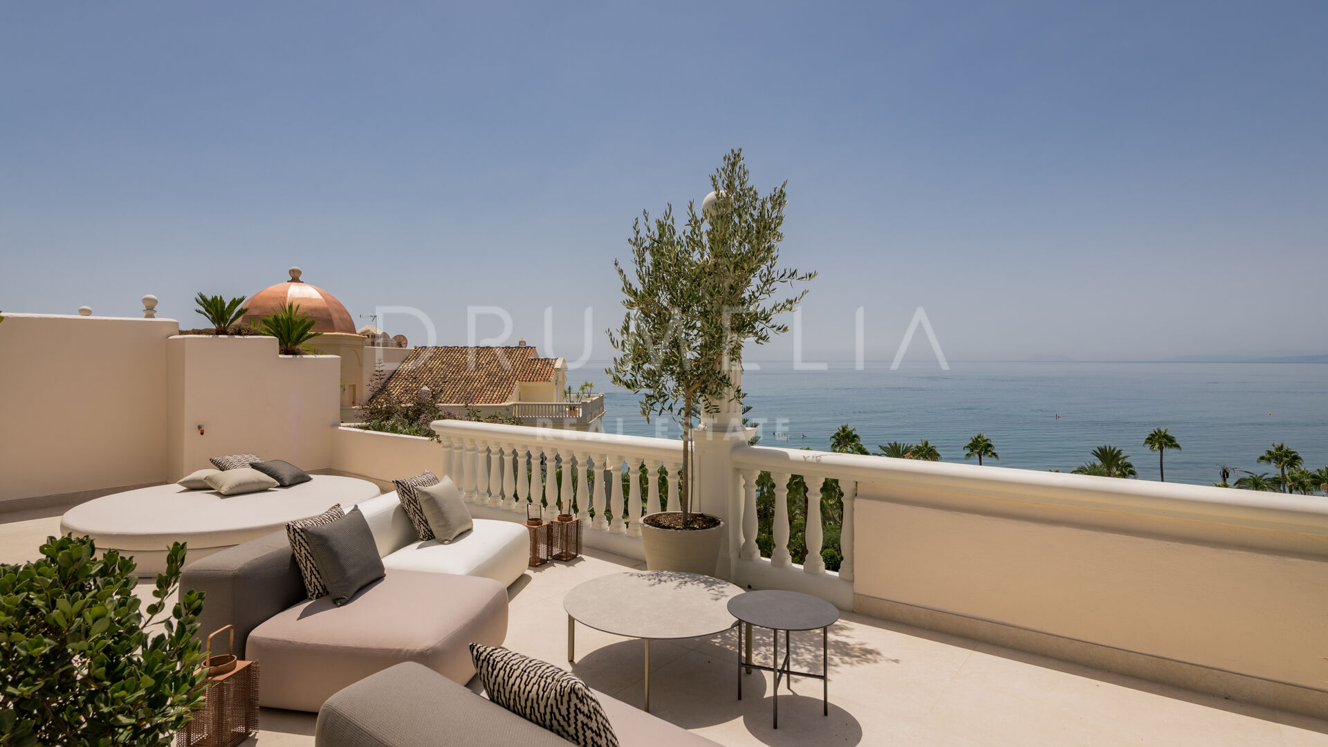 Das komplett neu gestaltete, zum Verkauf stehende Penthouse in erster Strandlinie in Las Dunas Park, einer der luxuriösesten Ferienanlagen an der Costa del Sol, besticht durch seine privilegierte Lage an der Neuen Goldenen Meile von Estepona, seinen unverbaubaren Meerblick, seinen raffinierten Stil und seinen ultimativen modernen Komfort.