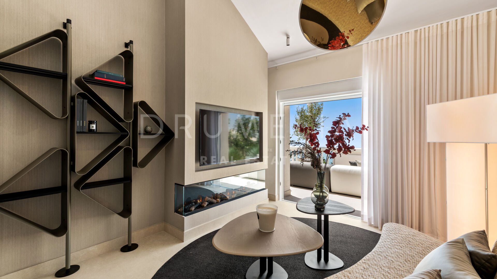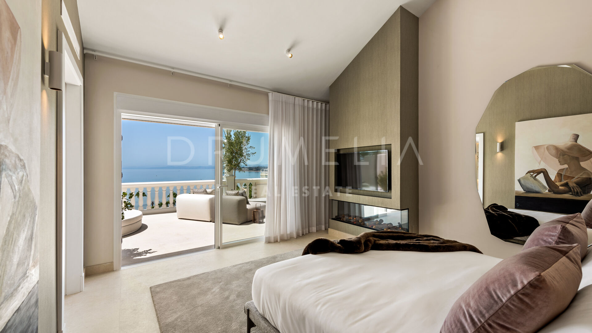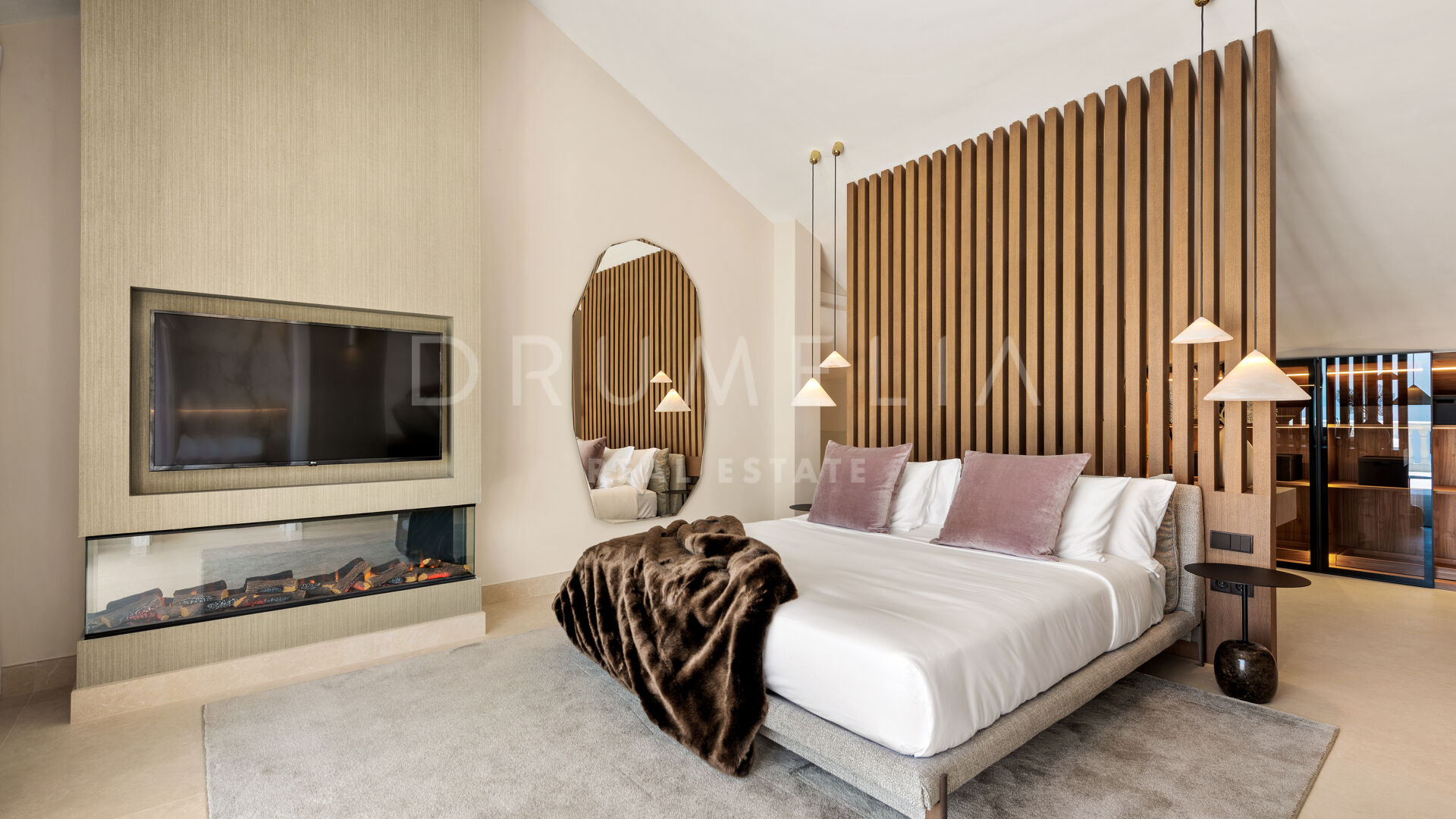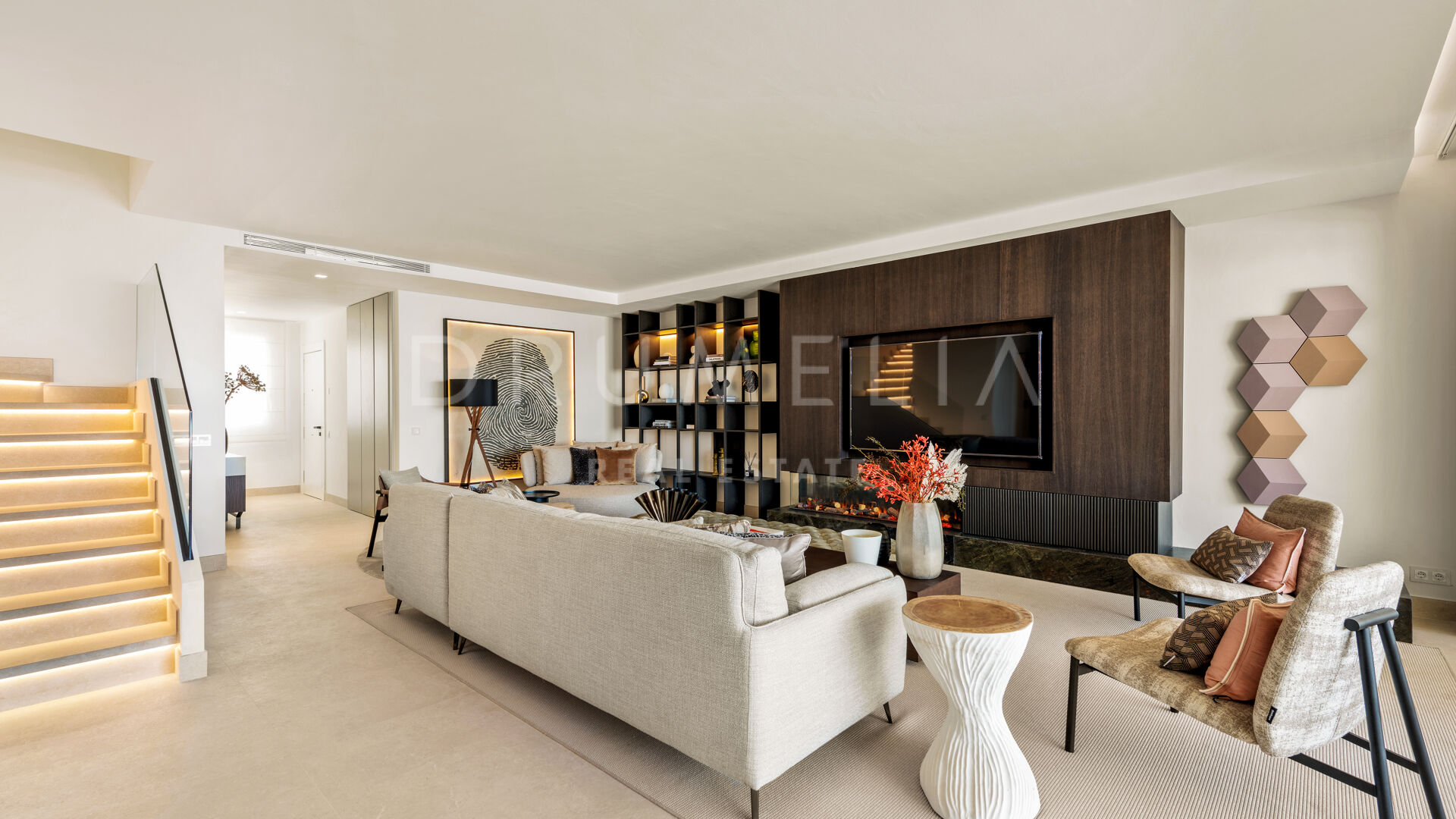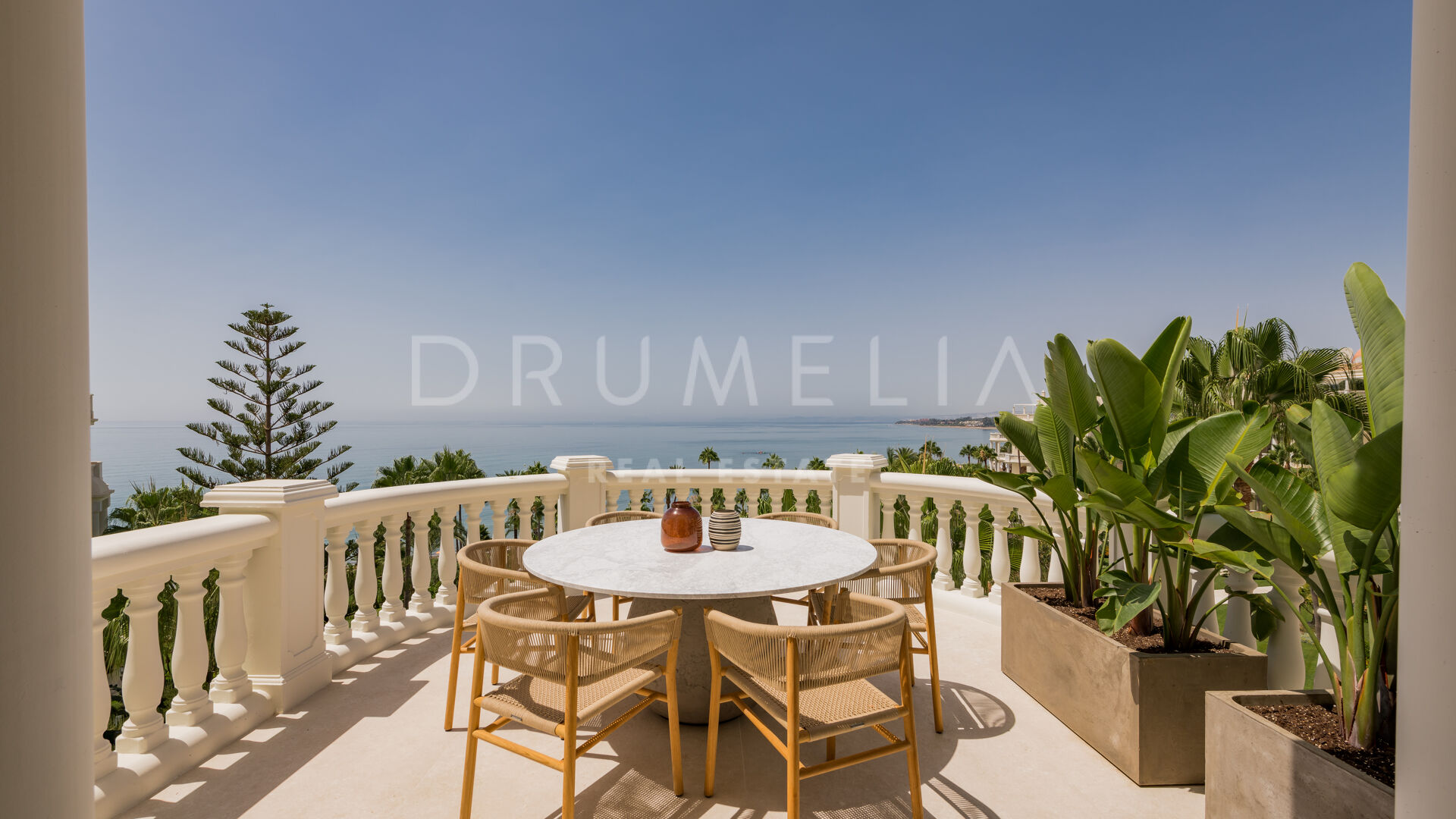 Das komplett neu gestaltete, zum Verkauf stehende Penthouse in erster Strandlinie in Las Dunas Park, einer der luxuriösesten Ferienanlagen an der Costa del Sol, besticht durch seine privilegierte Lage an der Neuen Goldenen Meile von Estepona, seinen unverbaubaren Meerblick, seinen raffinierten Stil und seinen ultimativen modernen Komfort.