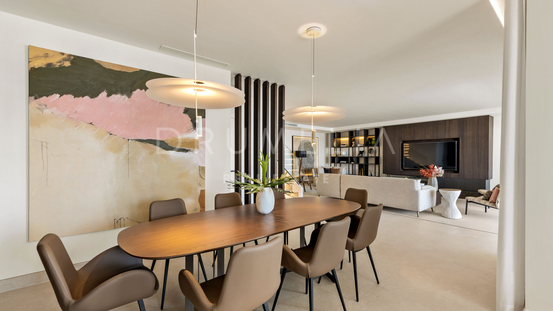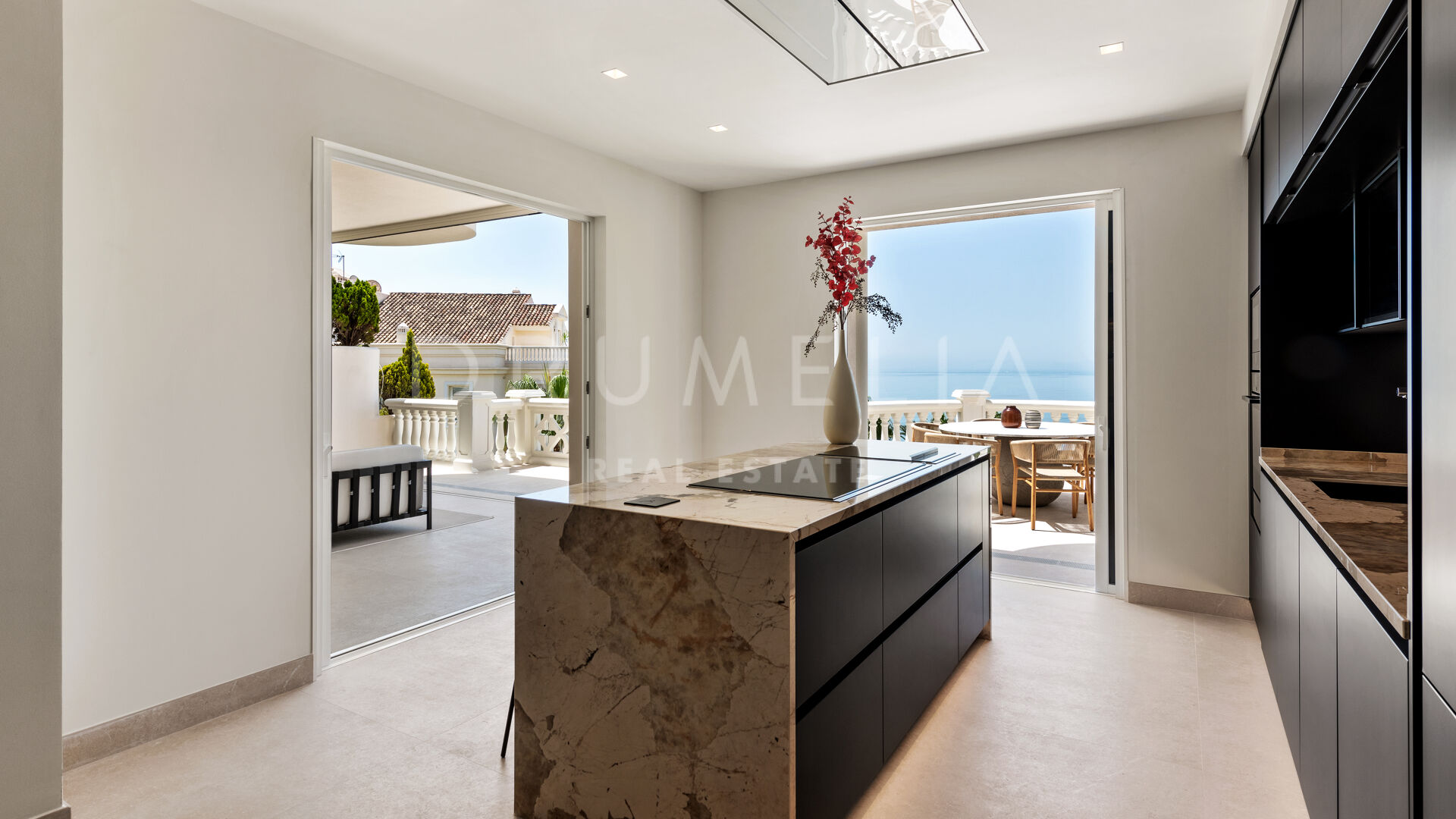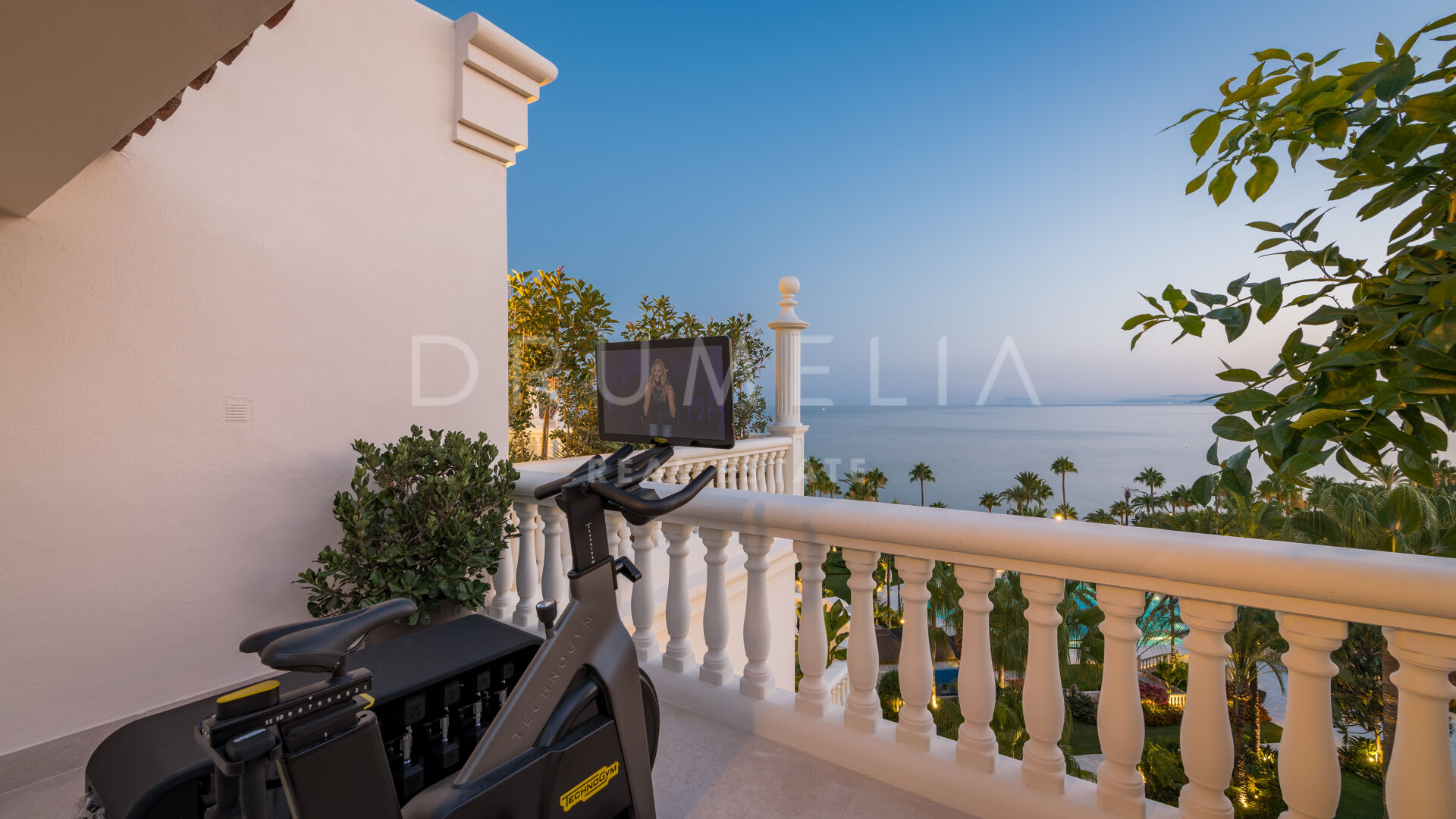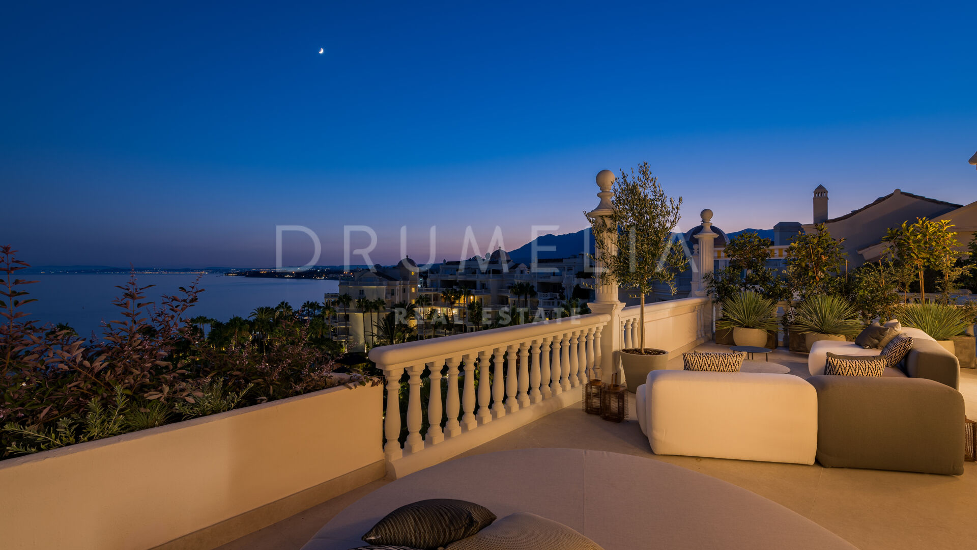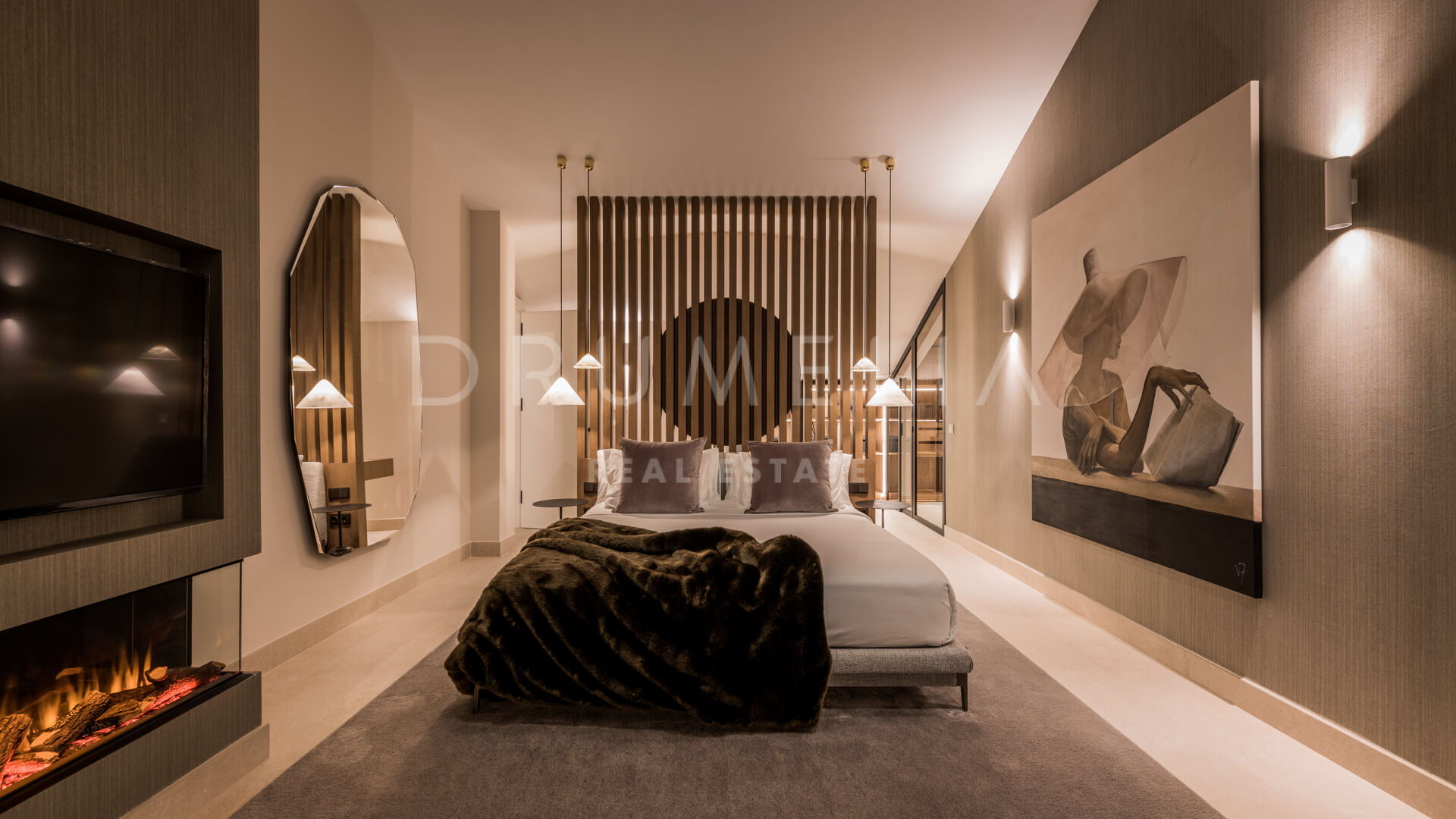 Das spektakuläre, hochwertige Penthouse mit einer Fläche von 262 m2, das nach Süden/Westen ausgerichtet ist, verfügt über 5 stilvolle Schlafzimmer und 5 Bäder mit Fußbodenheizung, ein elegantes Wohnzimmer mit TV-Lounge, eine Designerküche mit hervorragenden deutschen NEFF-Geräten, einen Essbereich, einen Weinkeller, eine private Sauna und eine Waschküche. Die Zimmer sind mit den bemerkenswerten 165 m2 großen Terrassen verbunden, auf denen man chillen, sonnenbaden und im Freien speisen kann. Von hier aus hat man einen atemberaubenden Blick auf das Meer, die Berge und die Straße von Gibraltar mit den beeindruckenden “Säulen des Herkules”, an denen die Menschen in der Antike das Ende der Welt vermuteten.